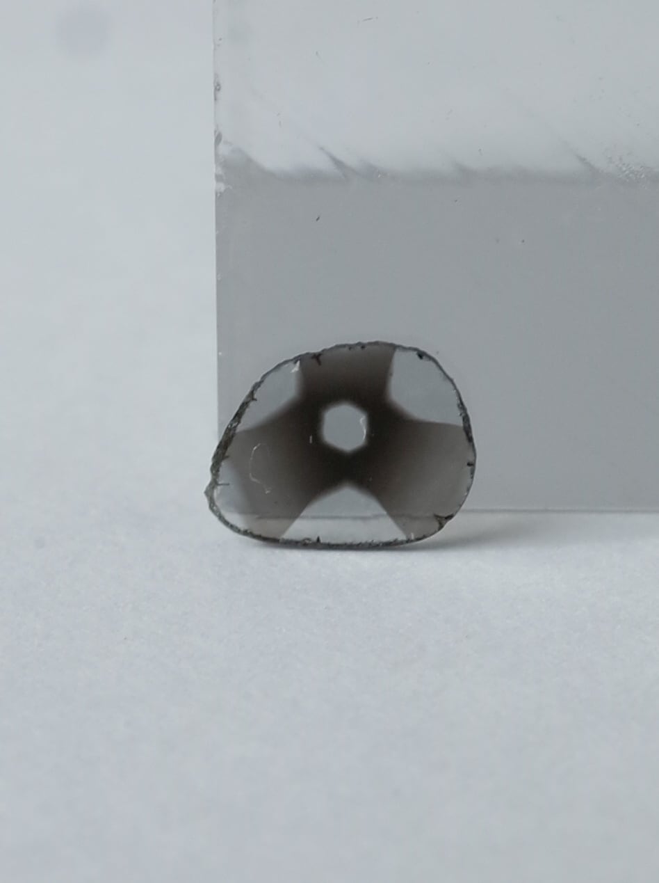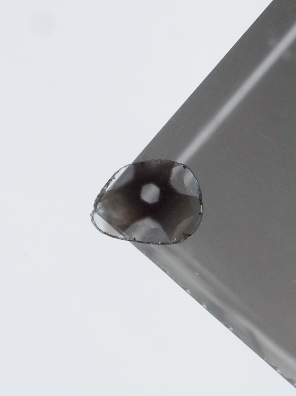 A “slice diamond” is a flat gemstone made by slicing a natural diamond into extremely thin pieces. Although it is not faceted, it retains the diamond’s distinctive brilliance and transparency, while showcasing the unique natural patterns formed within.