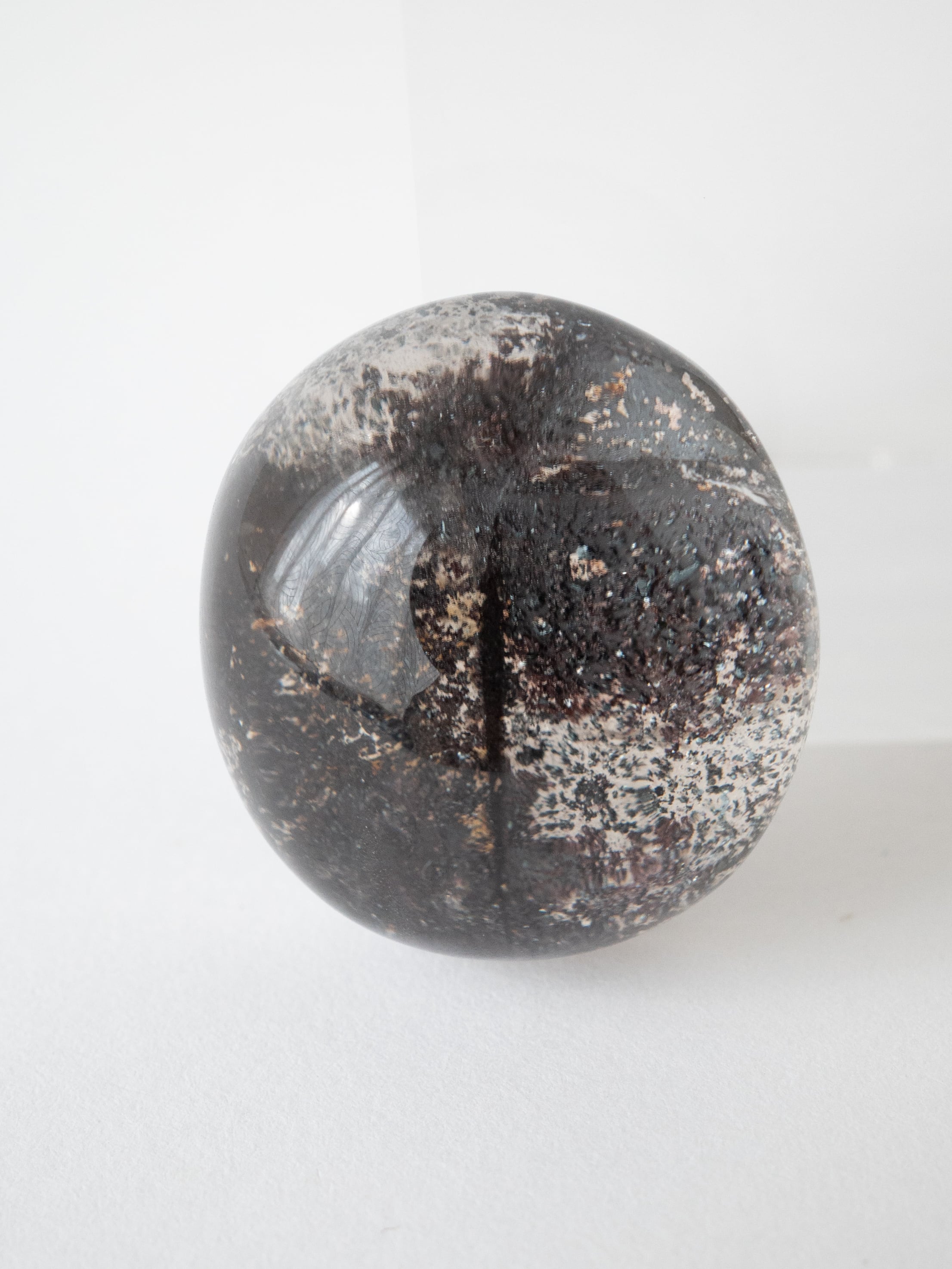 A type of Hematite-in-Quartz densely packed with fine hematite, sparkling like a jet-black universe. Its brilliance is truly captivating. At SELSHA, we distinguish it from the larger crystal type and call it “Galaxy Hematite-in-Quartz.”