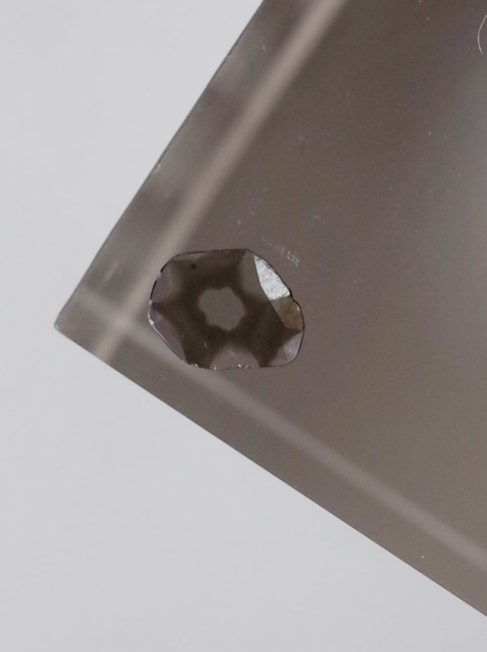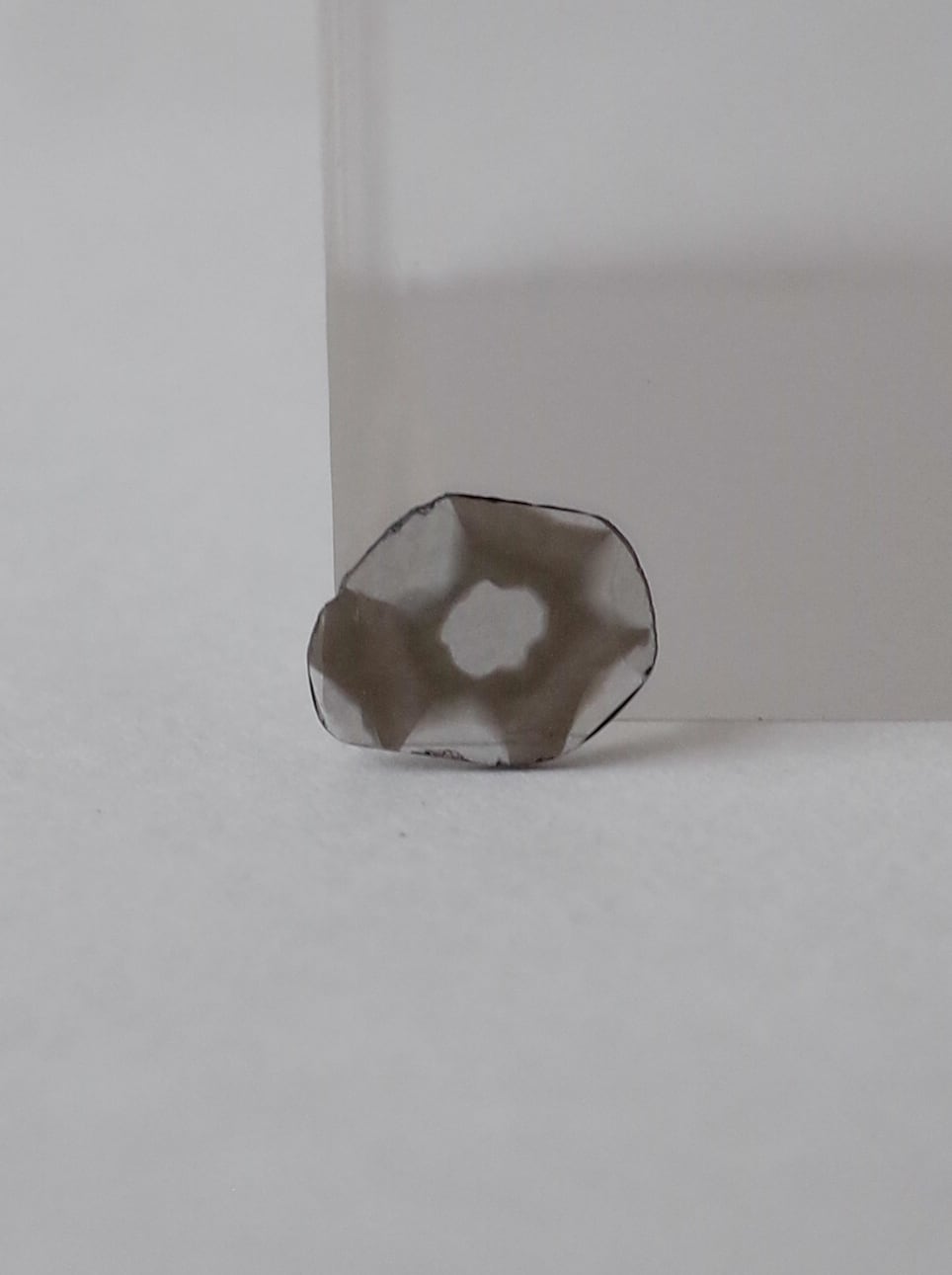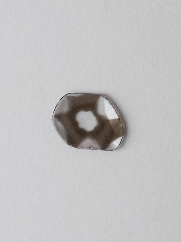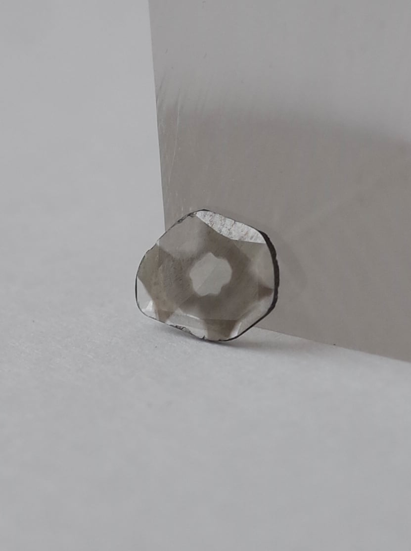 A “slice diamond” is a flat gemstone made by slicing a natural diamond into extremely thin pieces. Although it is not faceted, it retains the diamond’s distinctive brilliance and transparency, while showcasing the unique natural patterns formed within.