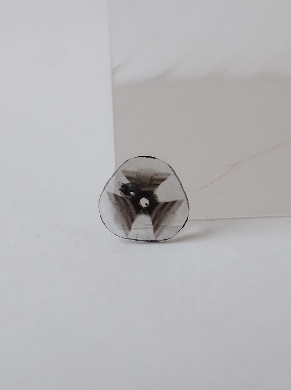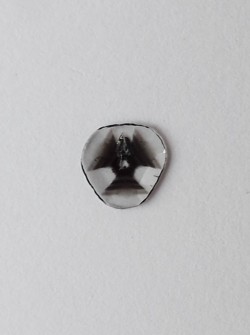 A “slice diamond” is a flat gemstone made by slicing a natural diamond into extremely thin pieces. Although it is not faceted, it retains the diamond’s distinctive brilliance and transparency, while showcasing the unique natural patterns formed within.