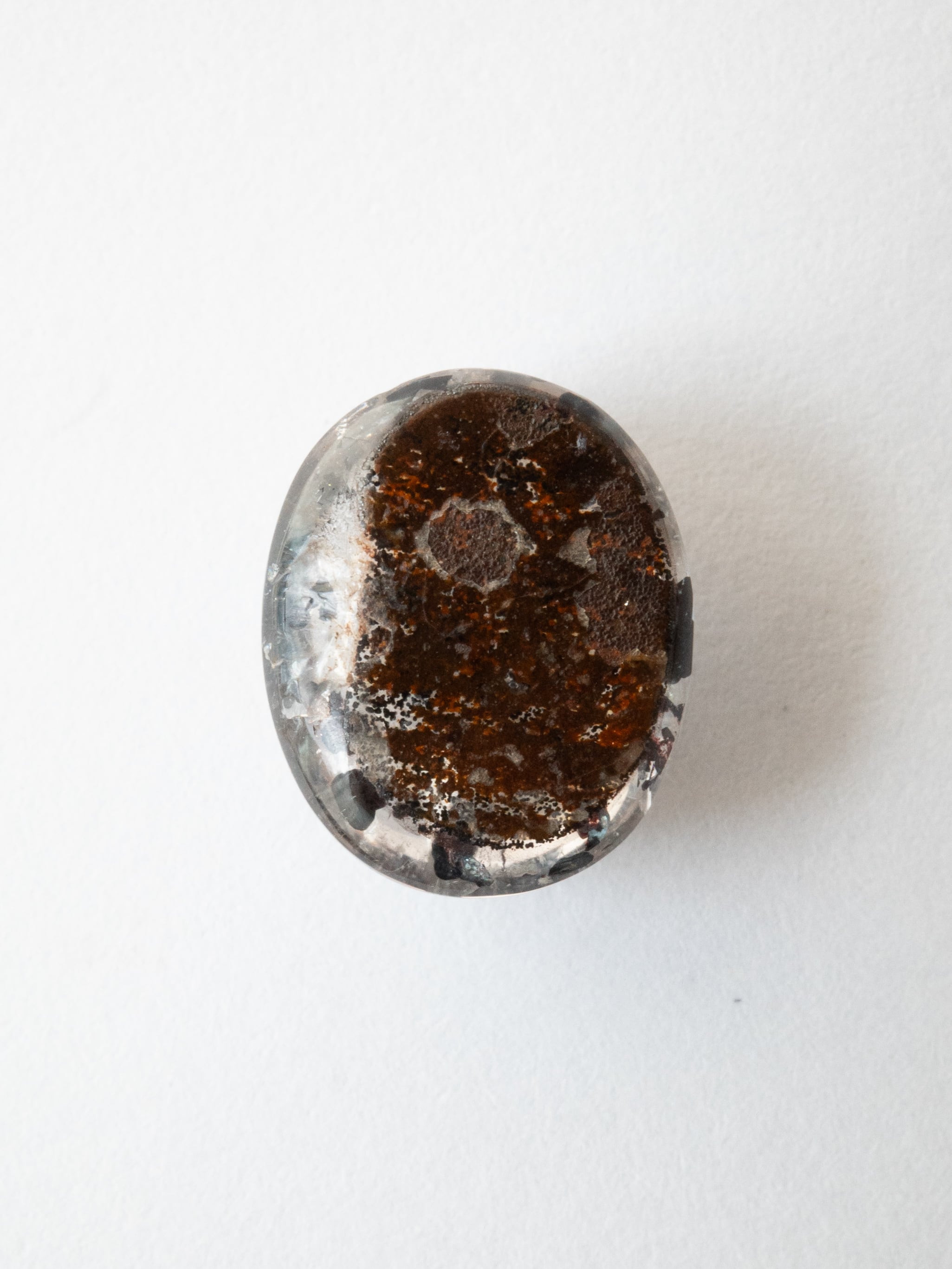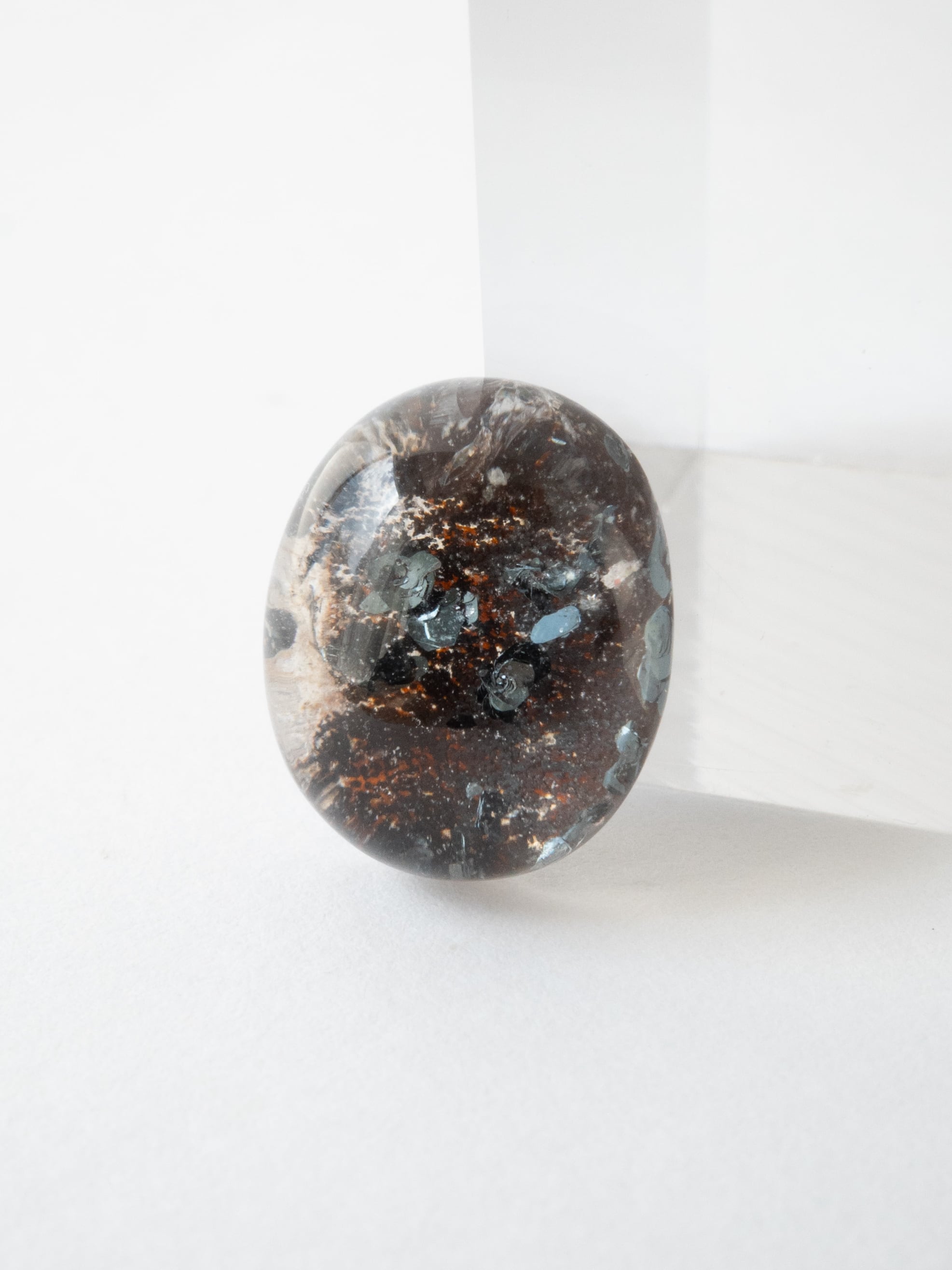 こちらは黒いヘマタイトの結晶が水晶の中に散りばめられ、まるでダルメシアンの模様のように見えるヘマタイトインクォーツです。