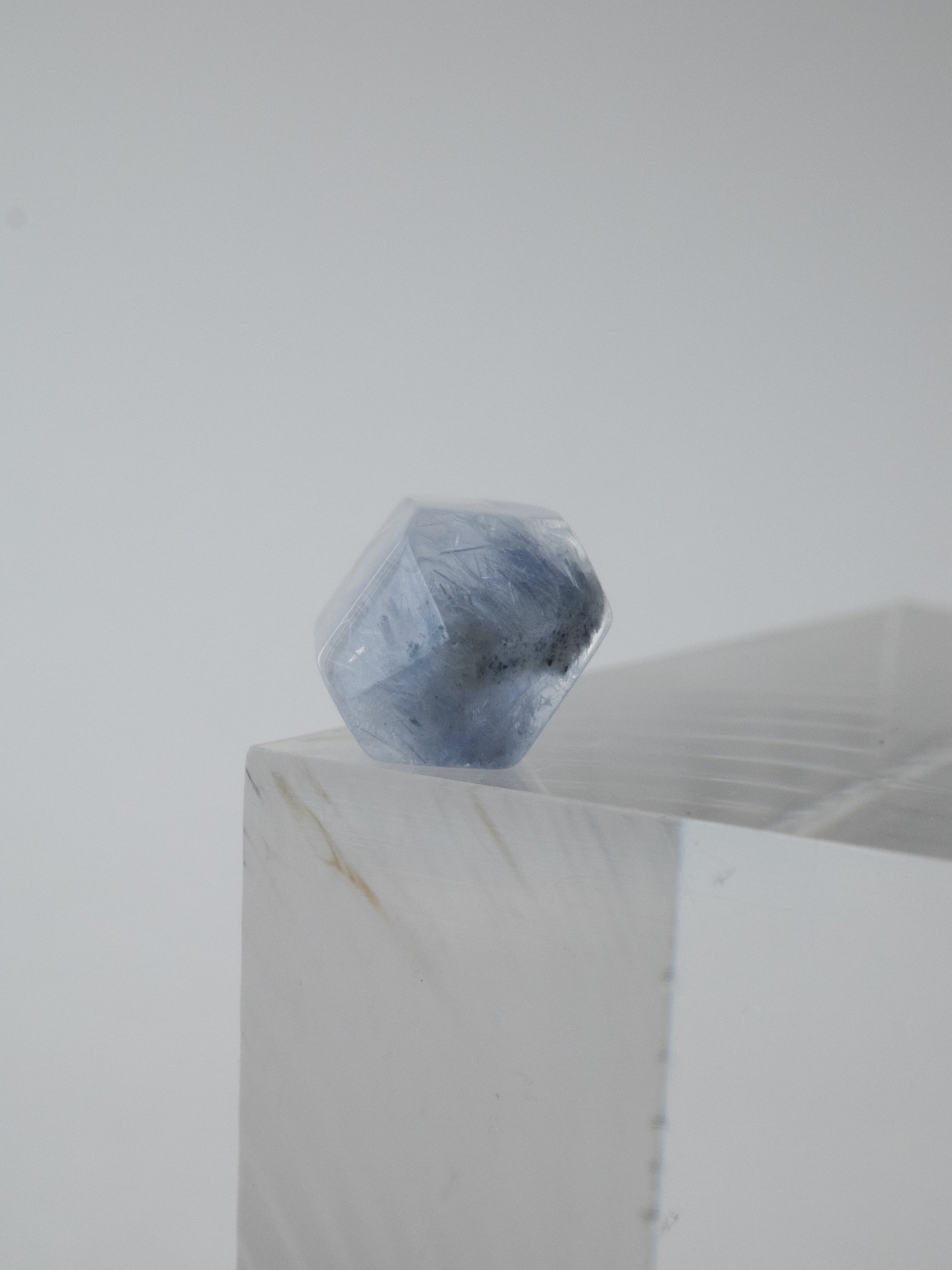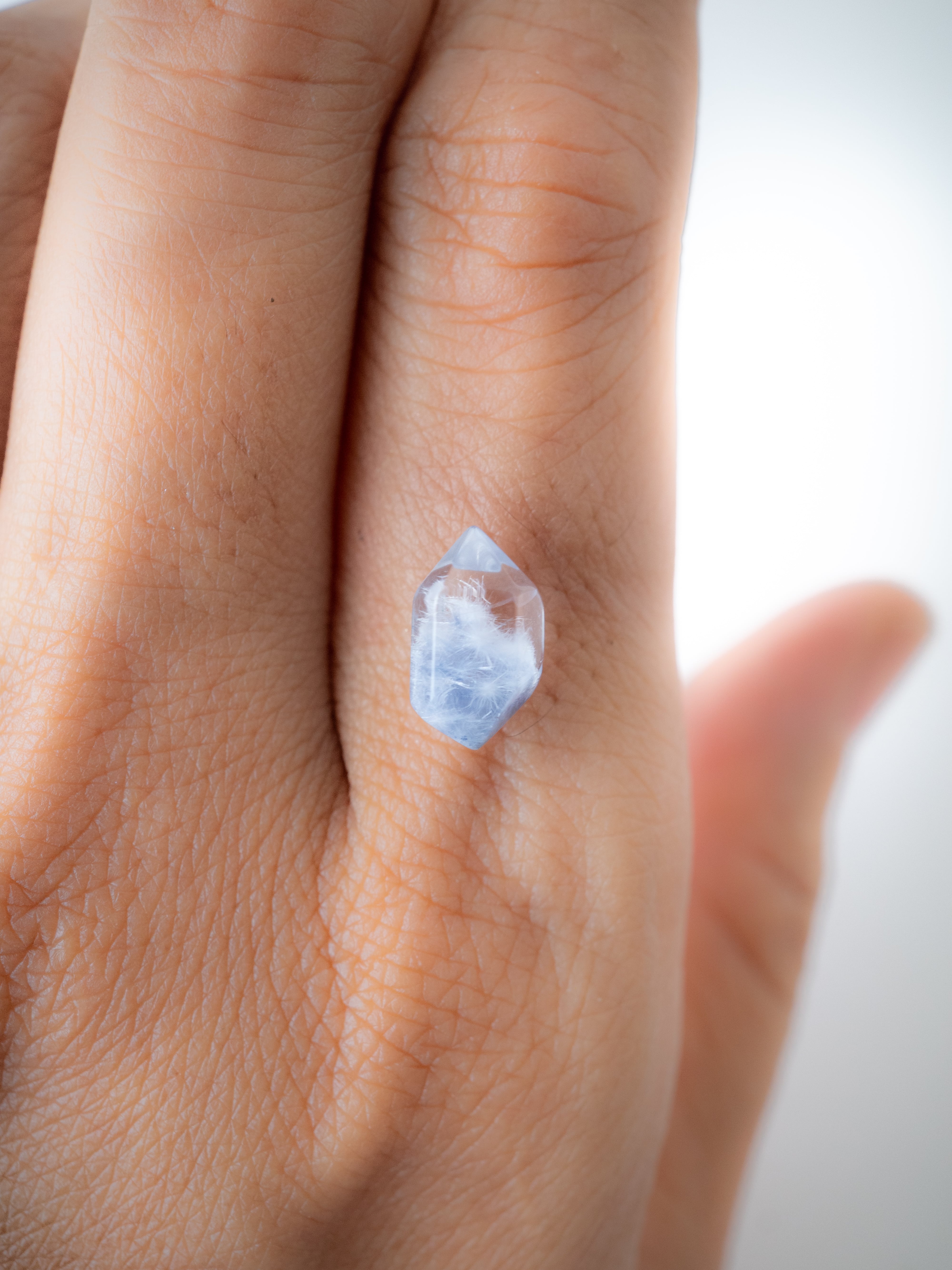 A transparent and refreshing Dumortierite-in-Quartz. The pale blue inclusions resemble delicate blooming flowers, creating a one-of-a-kind beauty.