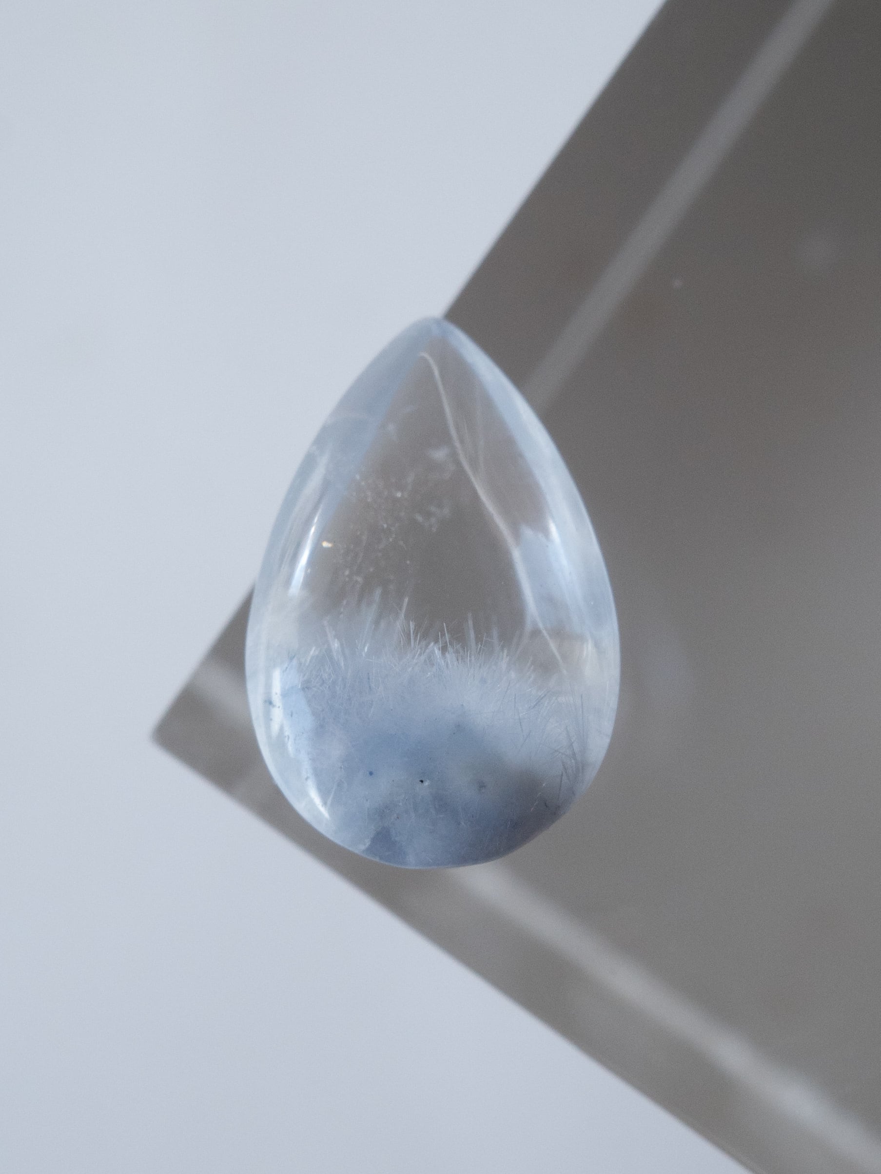 透明感のある涼しげなデュモルチェライトインクォーツ。淡いブルーの花が咲いたようなインクルージョンは唯一無二の美しさです。