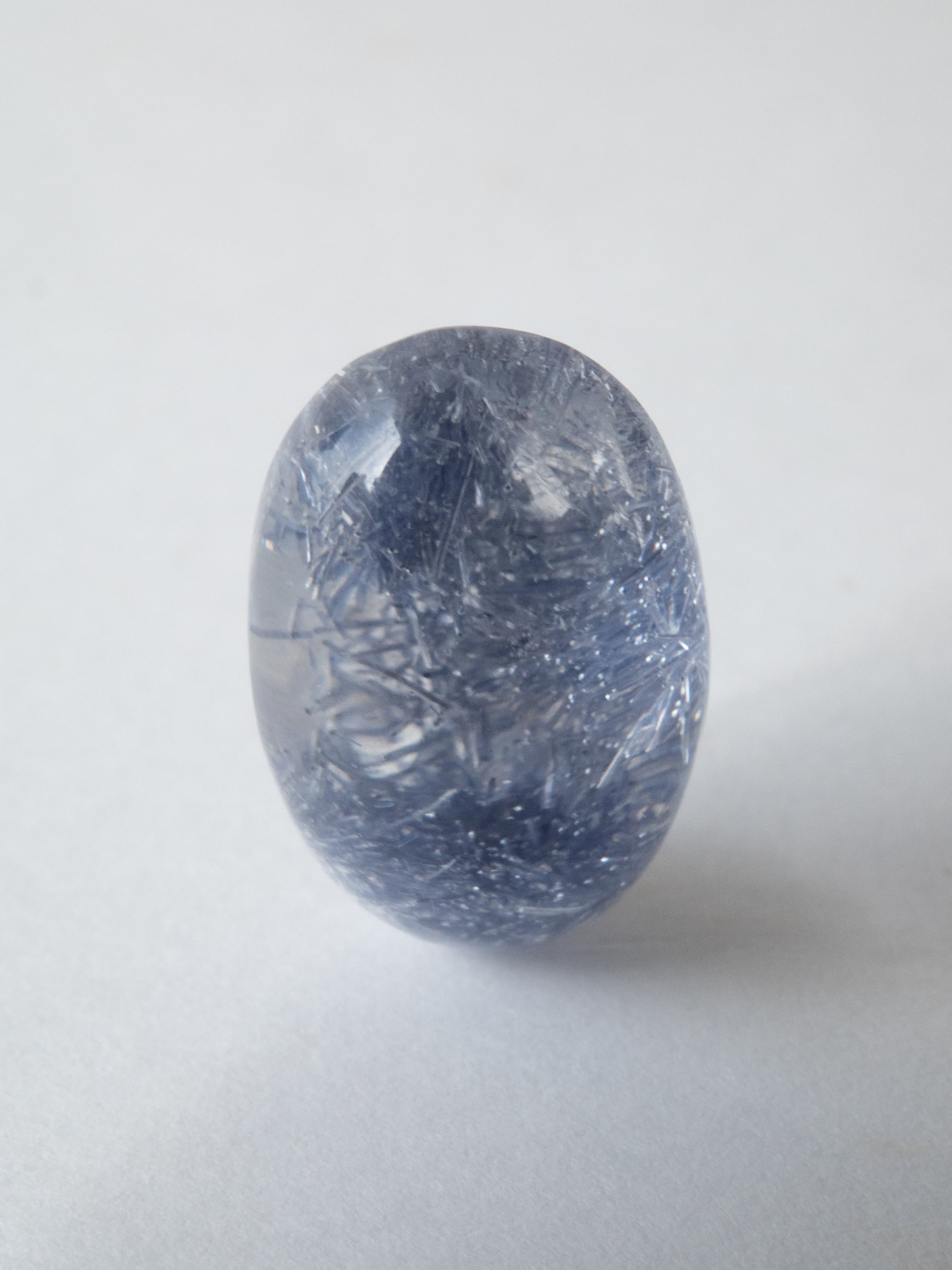 透明感のある涼しげなデュモルチェライトインクォーツ。淡いブルーの花が咲いたようなインクルージョンは唯一無二の美しさです。