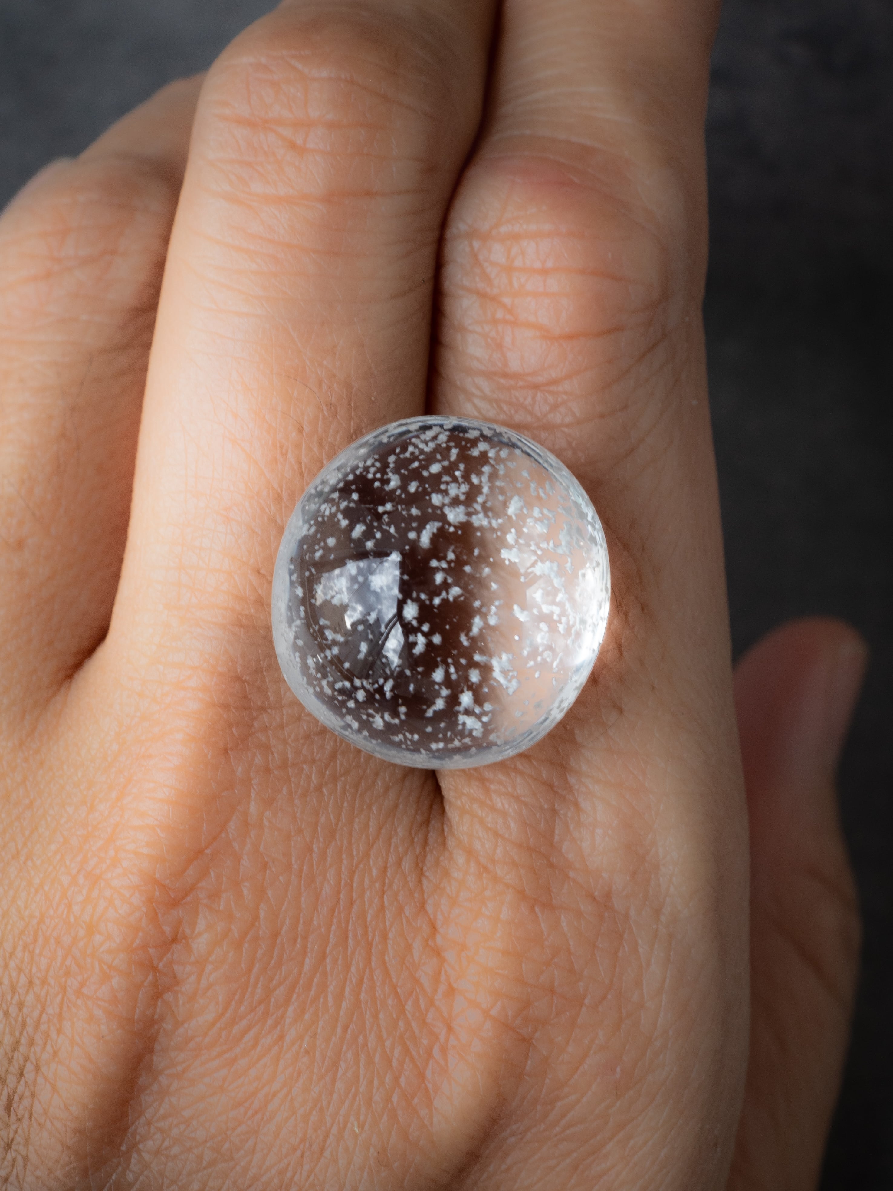 しんしんと牡丹雪が空から舞い落ちるようなクリストバライトインクォーツ。