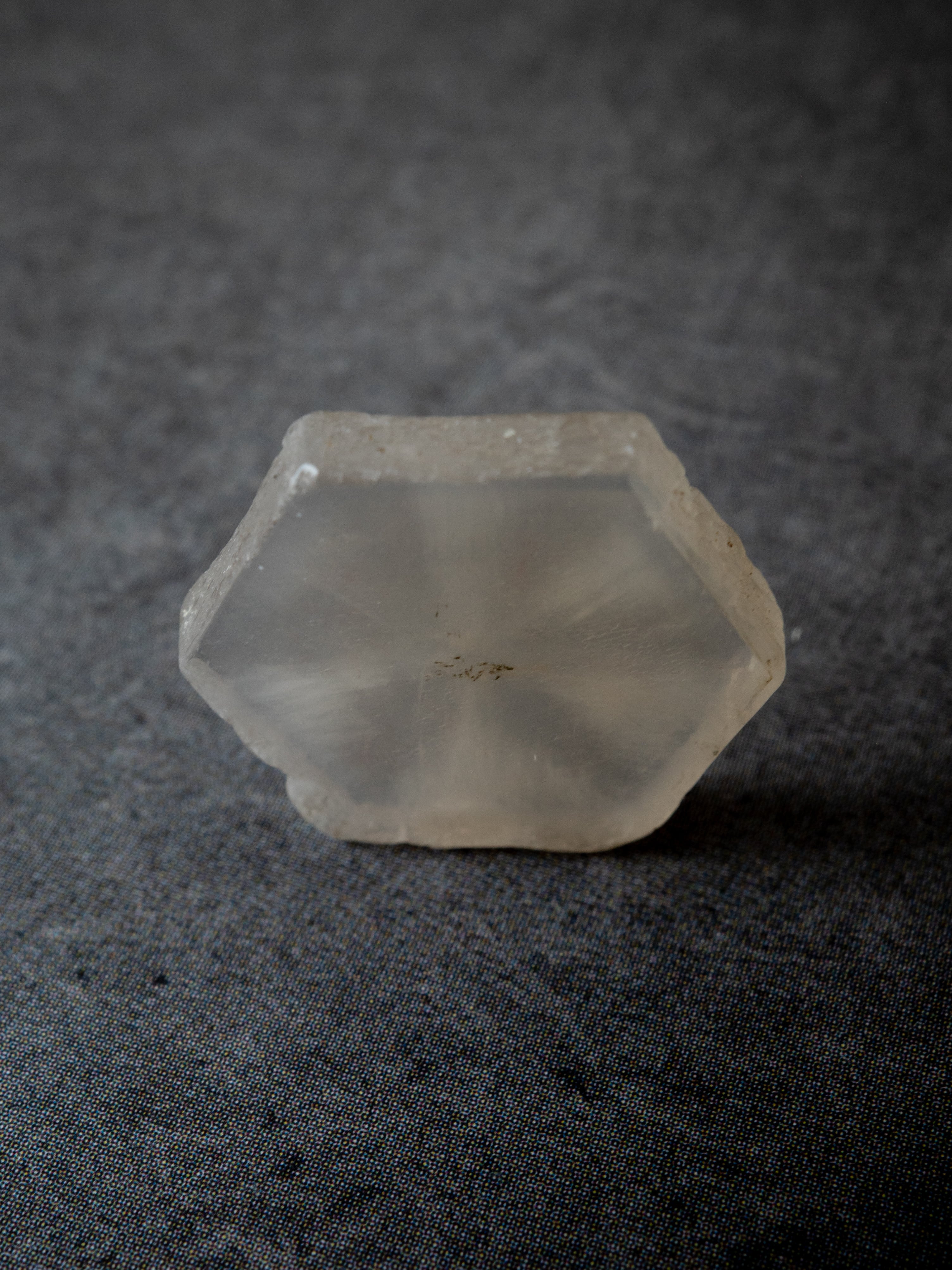 “Trapiche Quartz” refers to quartz crystals that display a six-rayed radial pattern, sliced in the direction that reveals this distinctive motif. The term “trapiche” comes from the Spanish word for a sugar-cane mill, and was originally used to describe emeralds with gear-like radial patterns. Although the internal structure of quartz is different from that of trapiche emeralds, quartz showing a similar appearance came to be known as “Trapiche Quartz” due to its visual resemblance.