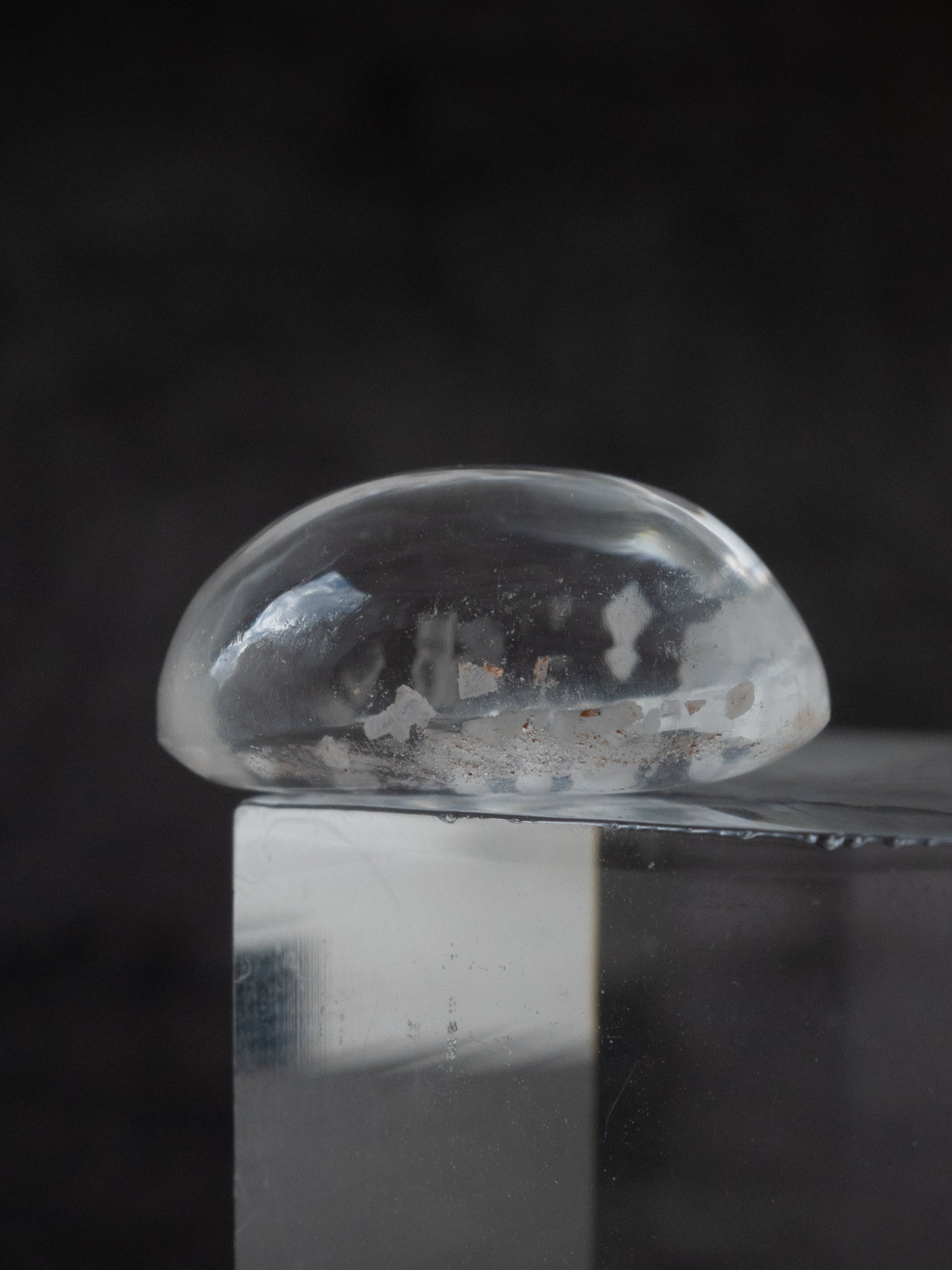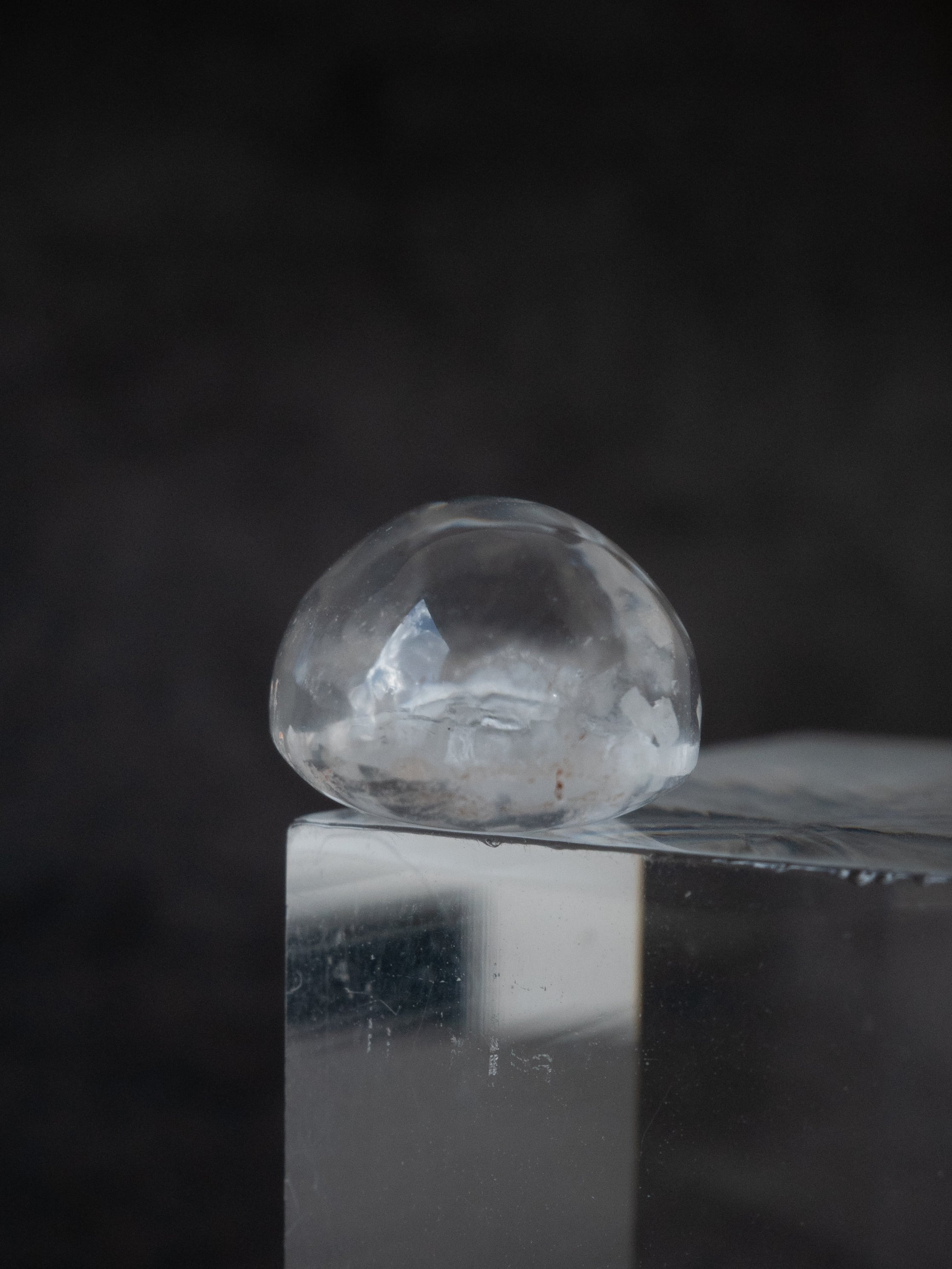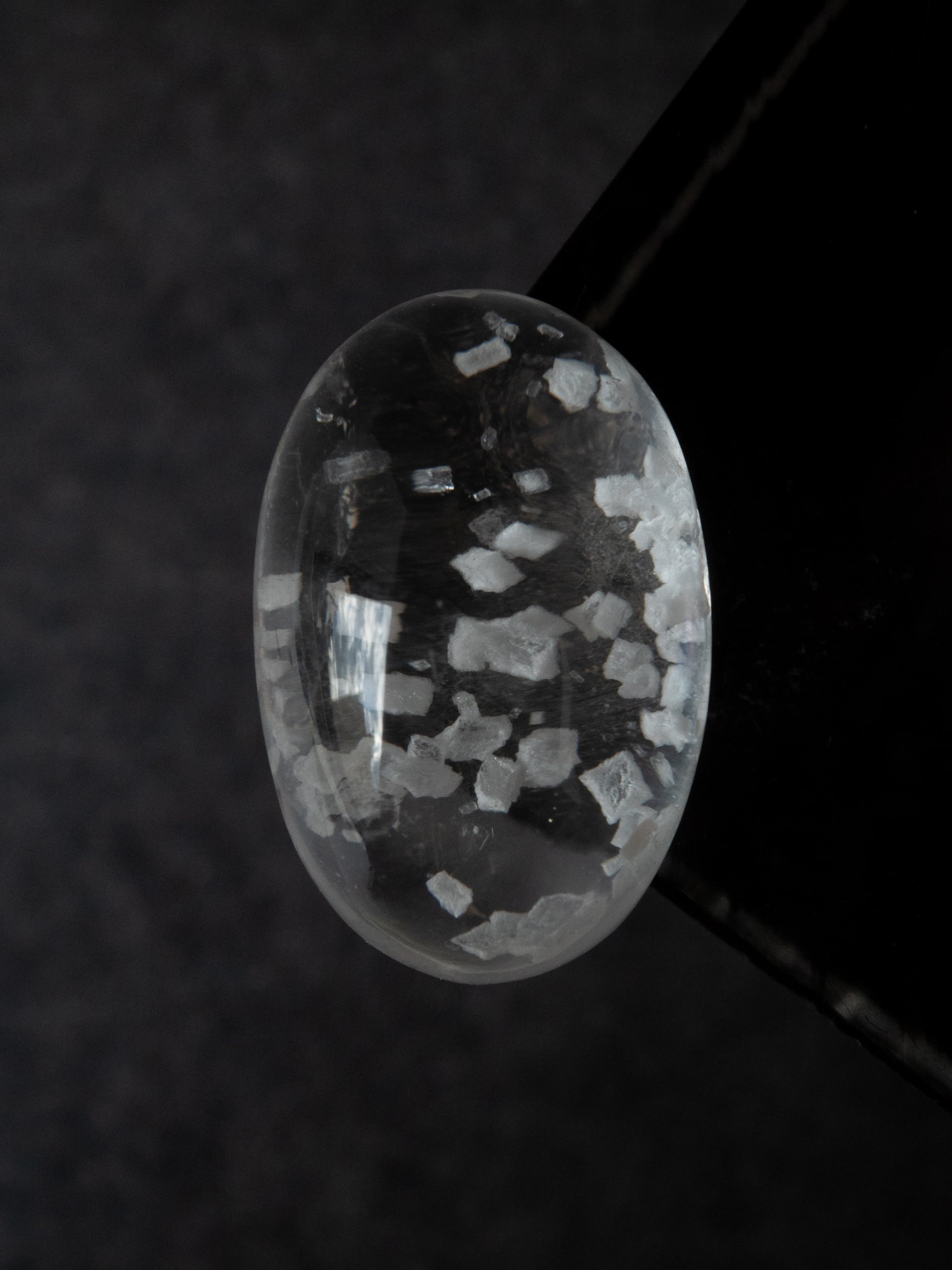 This is a Calcite-in-Quartz that feels perfect for winter, evoking the image of snow gently and endlessly falling through tiny calcite crystals. While calcite is often included as solid, three-dimensional crystals, in this piece the crystals are exceptionally thin and translucent, giving the stone a soft, delicate, and ephemeral beauty.