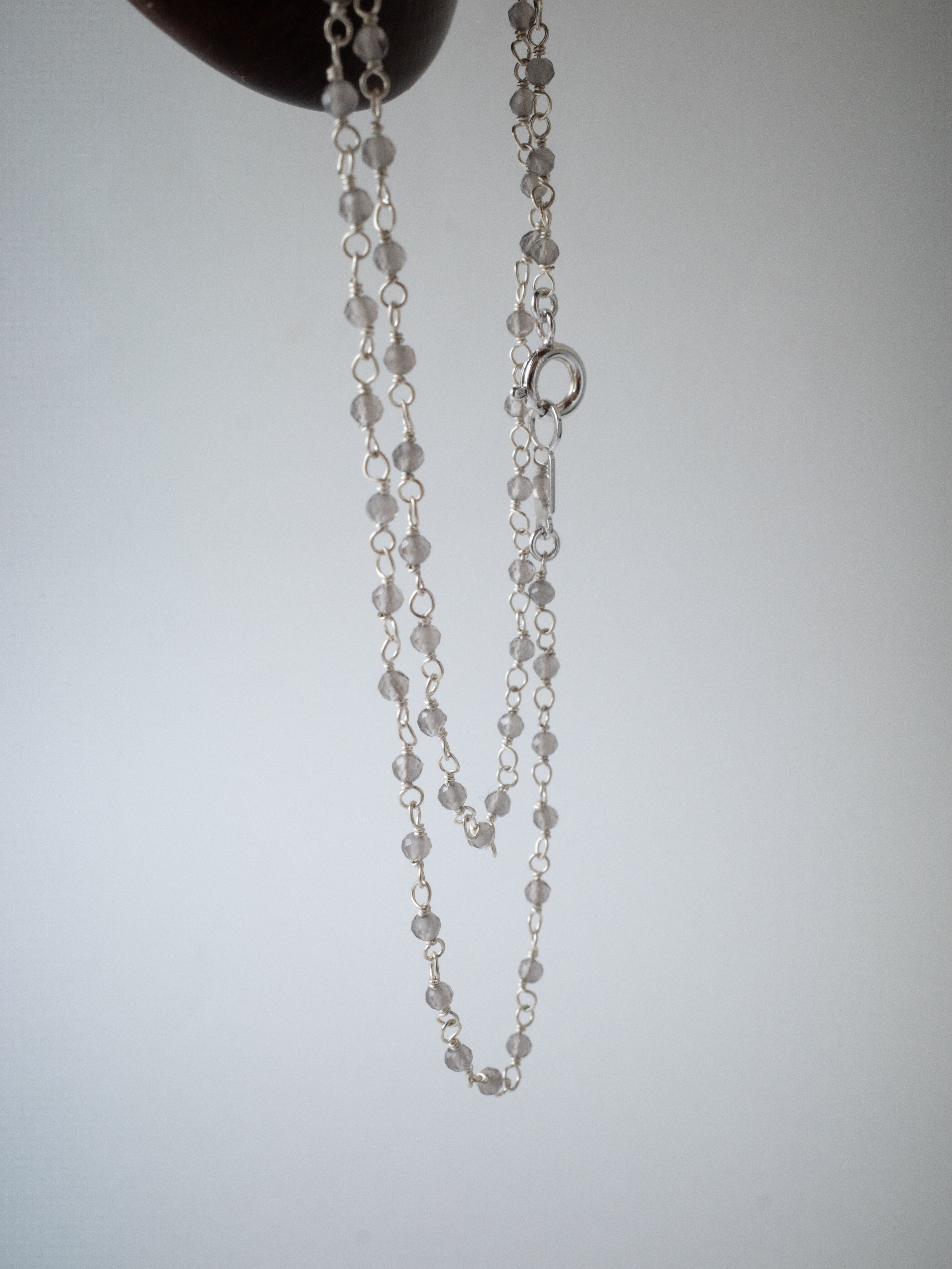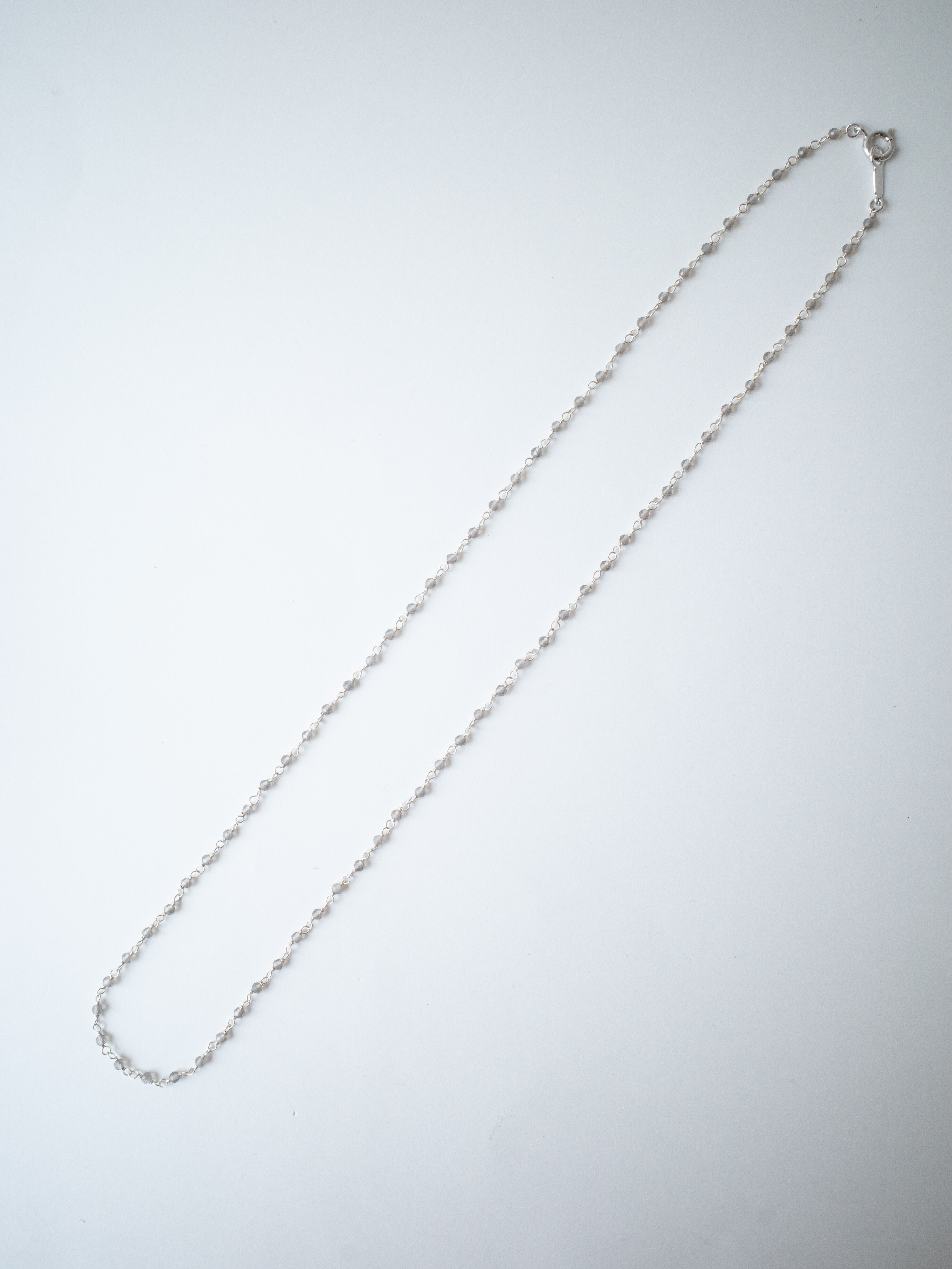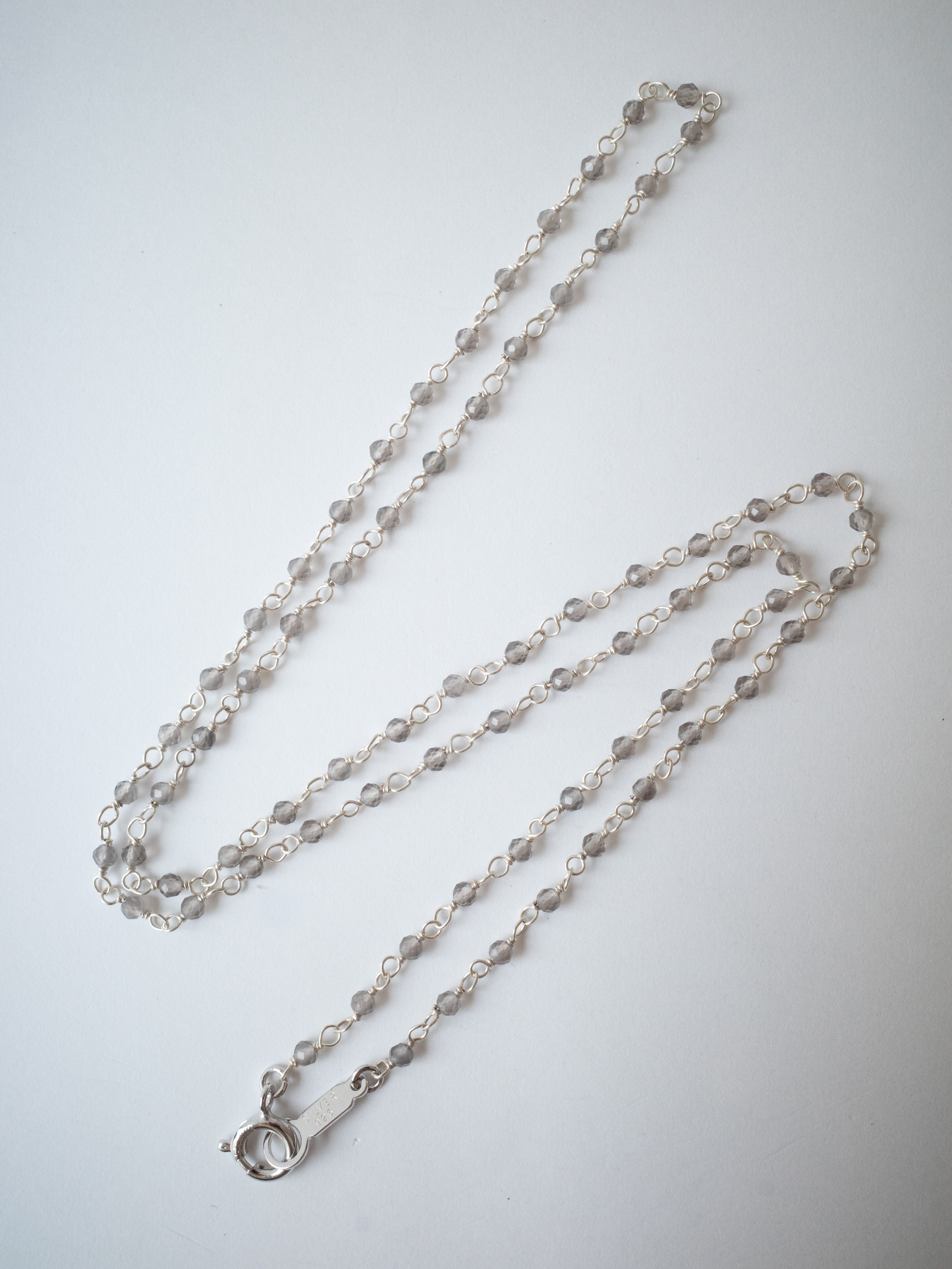 こちらは、 グレーオニキスを繋げた Starling Silver 製のシャンクチェーンネックレスです。そのままお使いいただいてても、ペンダントトップを通しても使えます。