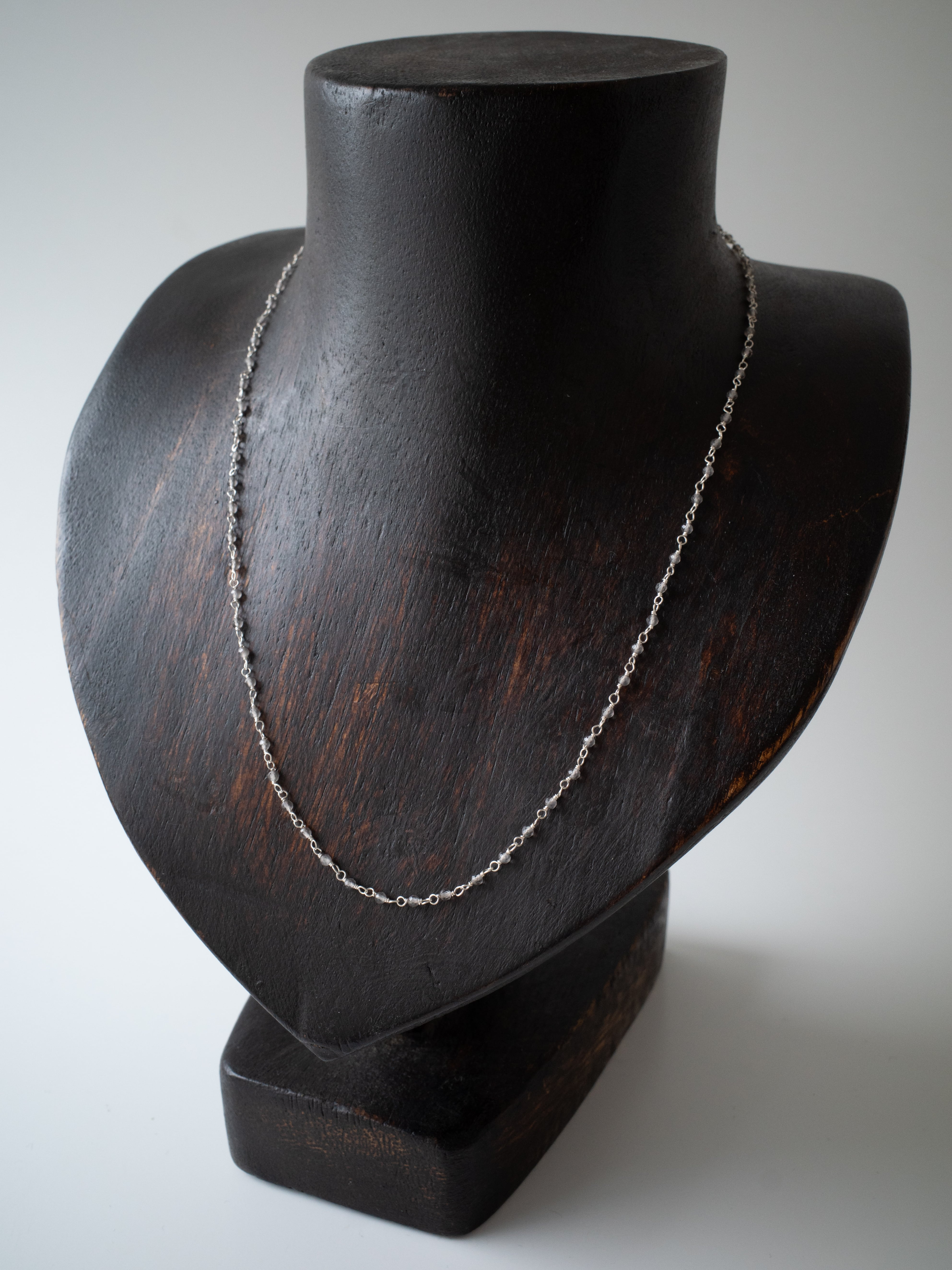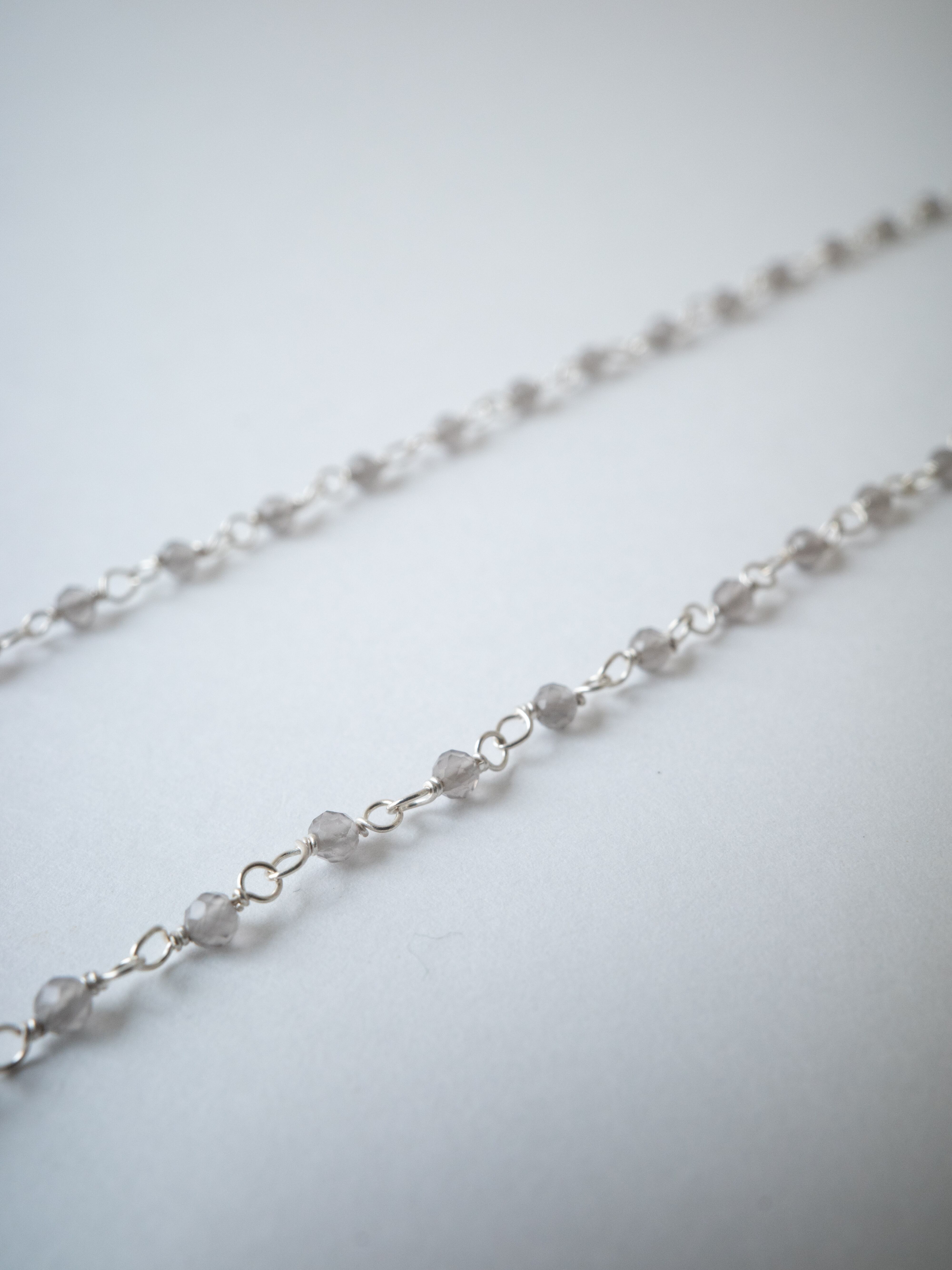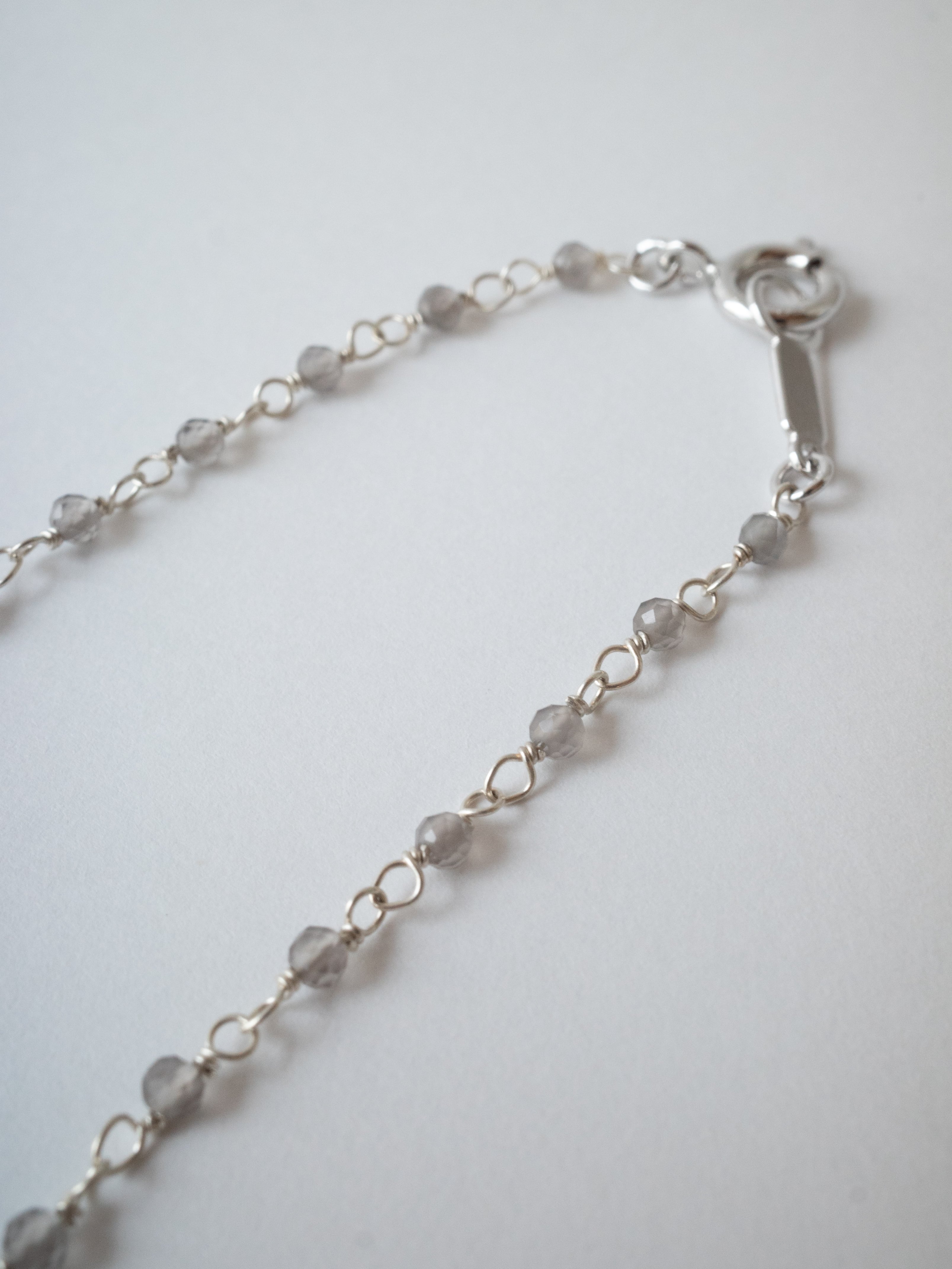 こちらは、 グレーオニキスを繋げた Starling Silver 製のシャンクチェーンネックレスです。そのままお使いいただいてても、ペンダントトップを通しても使えます。