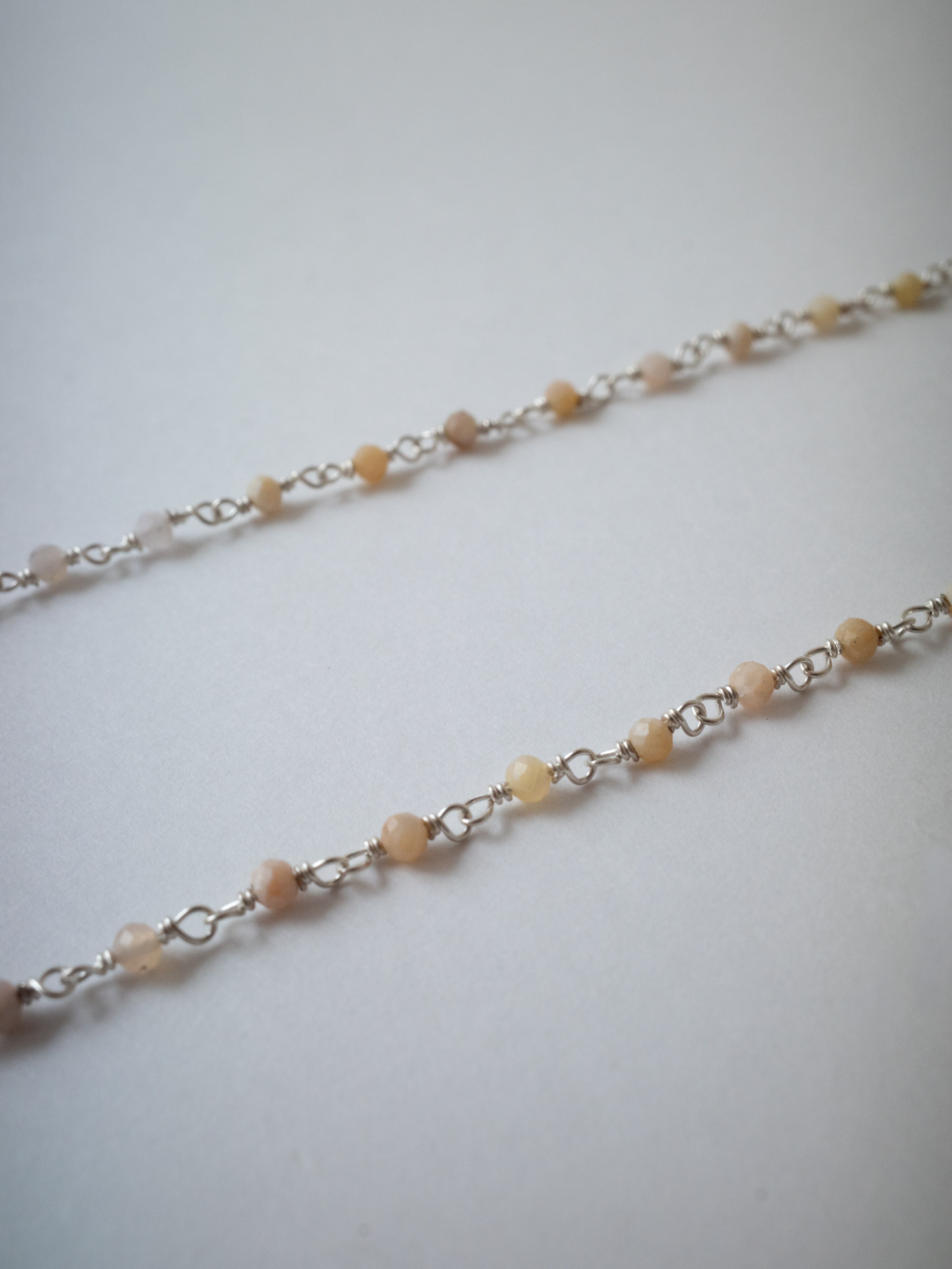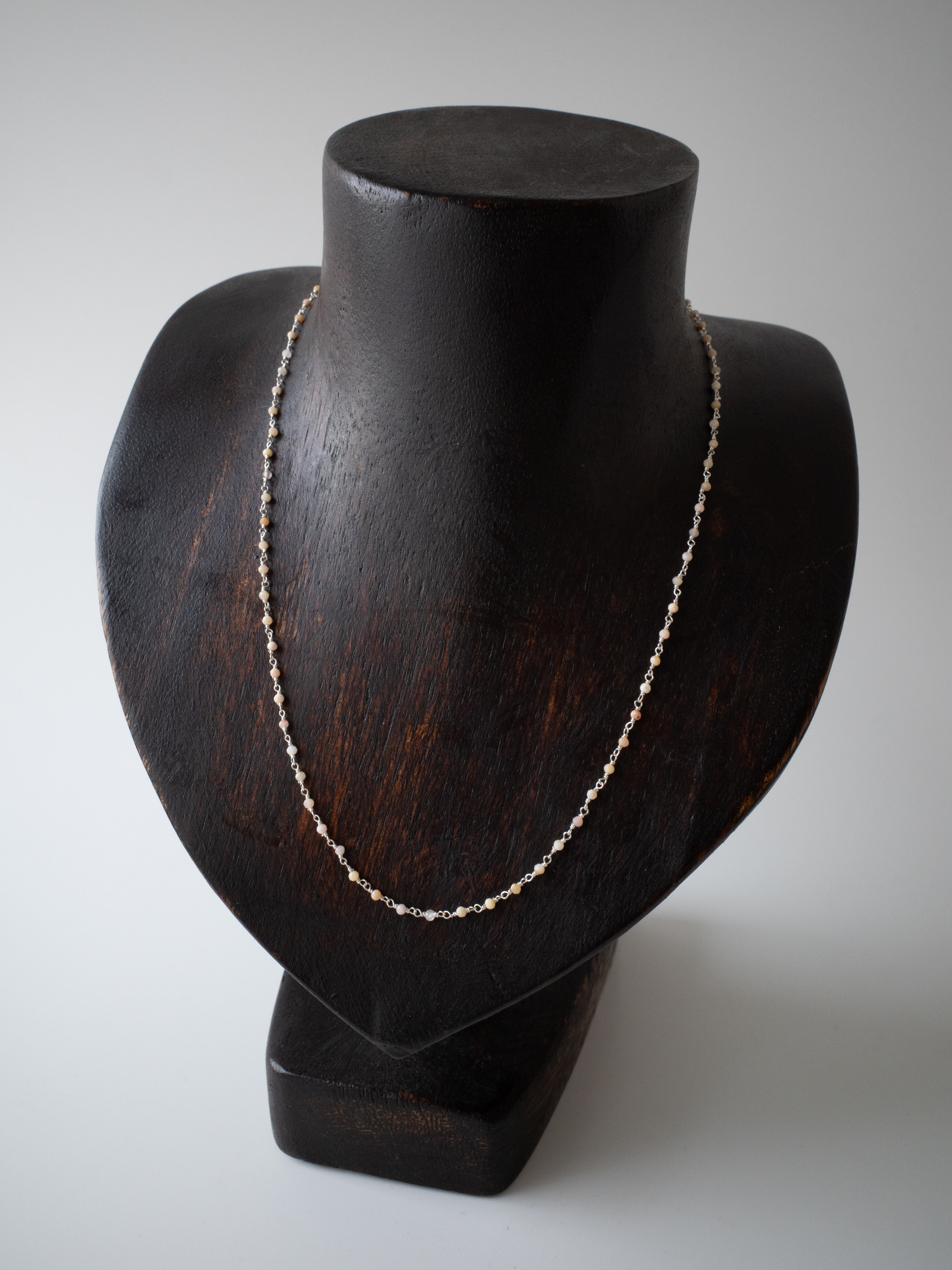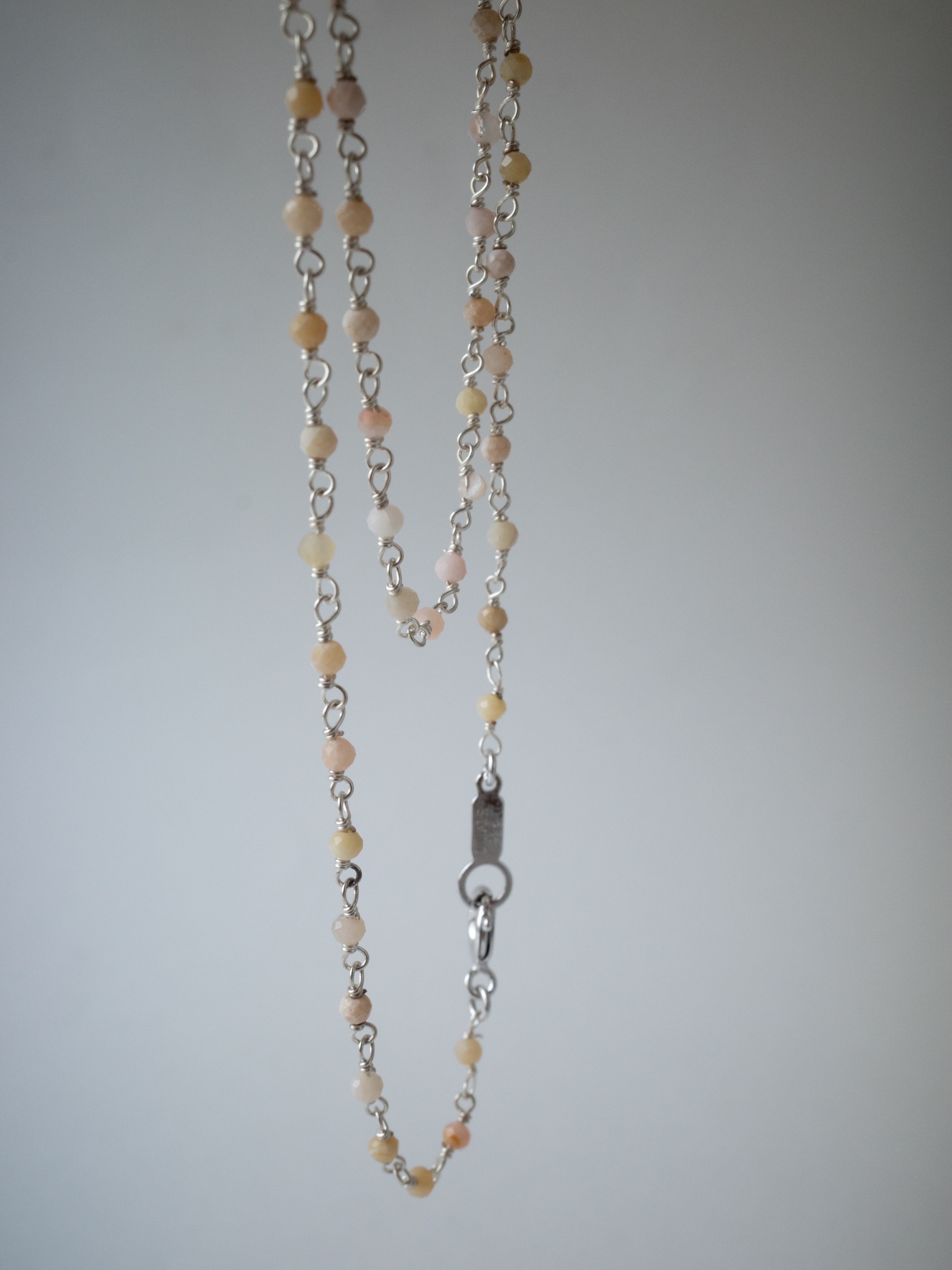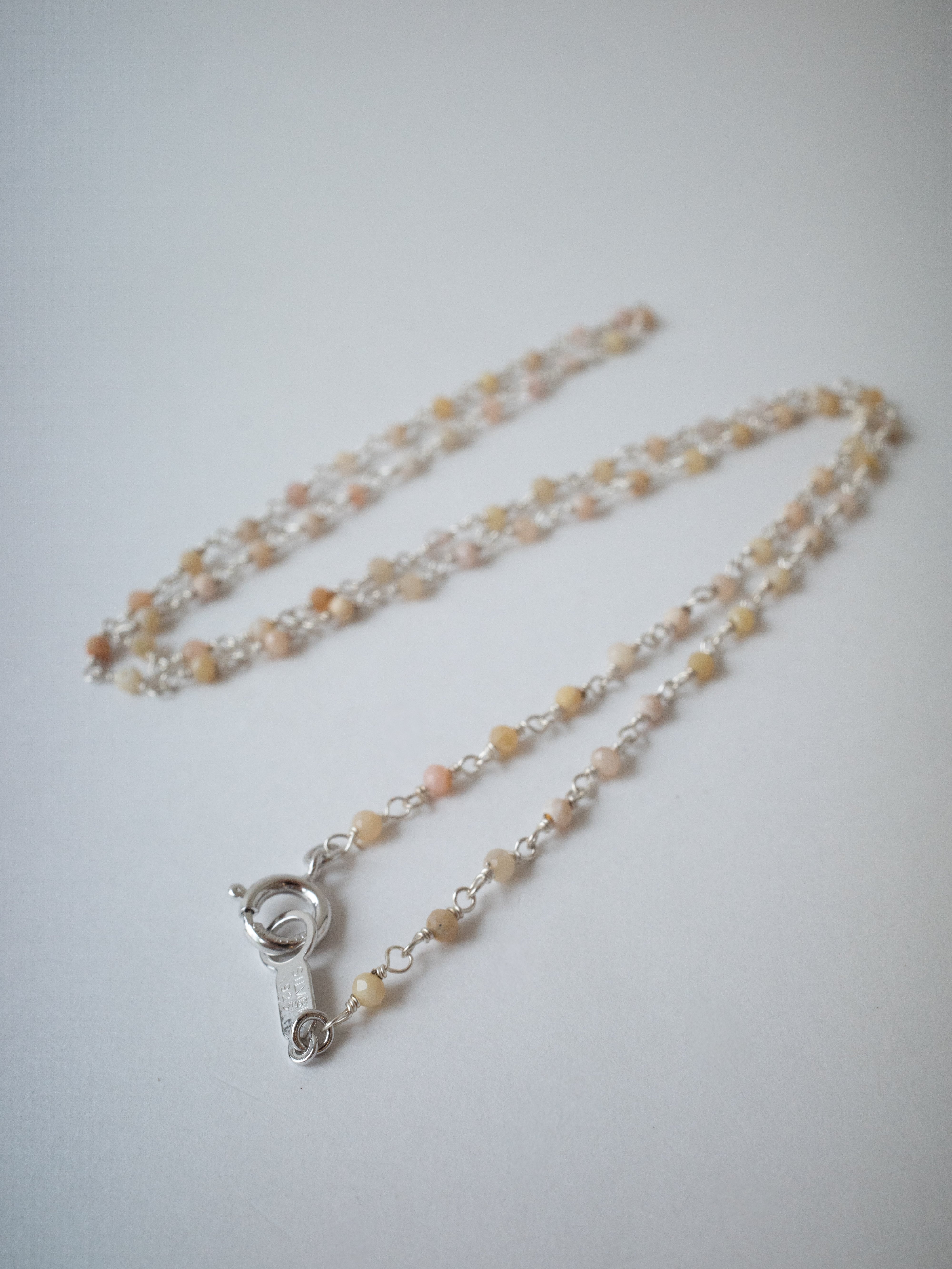 こちらは 、ピンクオパールを繋げた Starling Silver 製のシャンクチェーンネックレスです。そのままお使いいただいてても、ペンダントトップを通しても使えます。