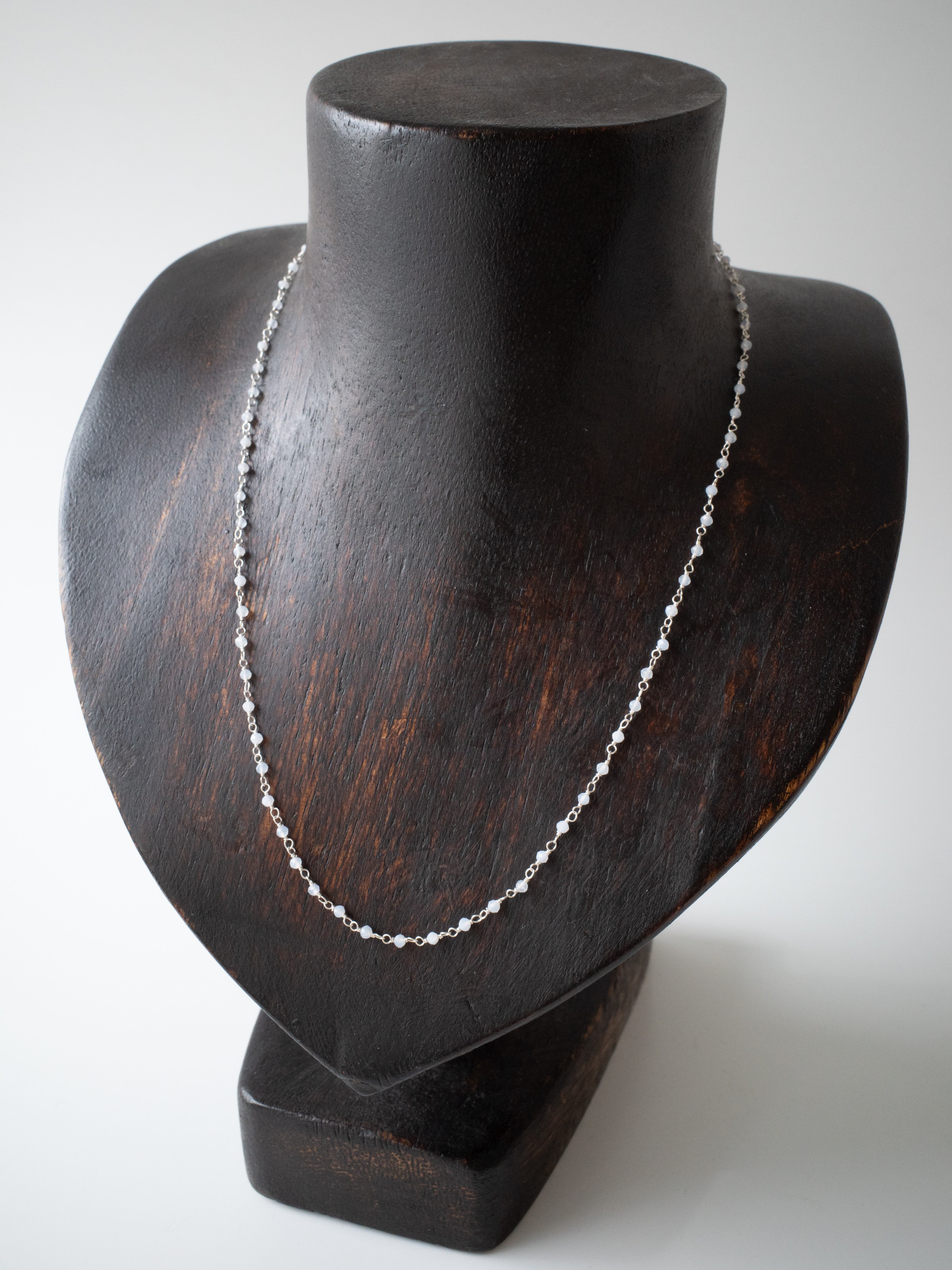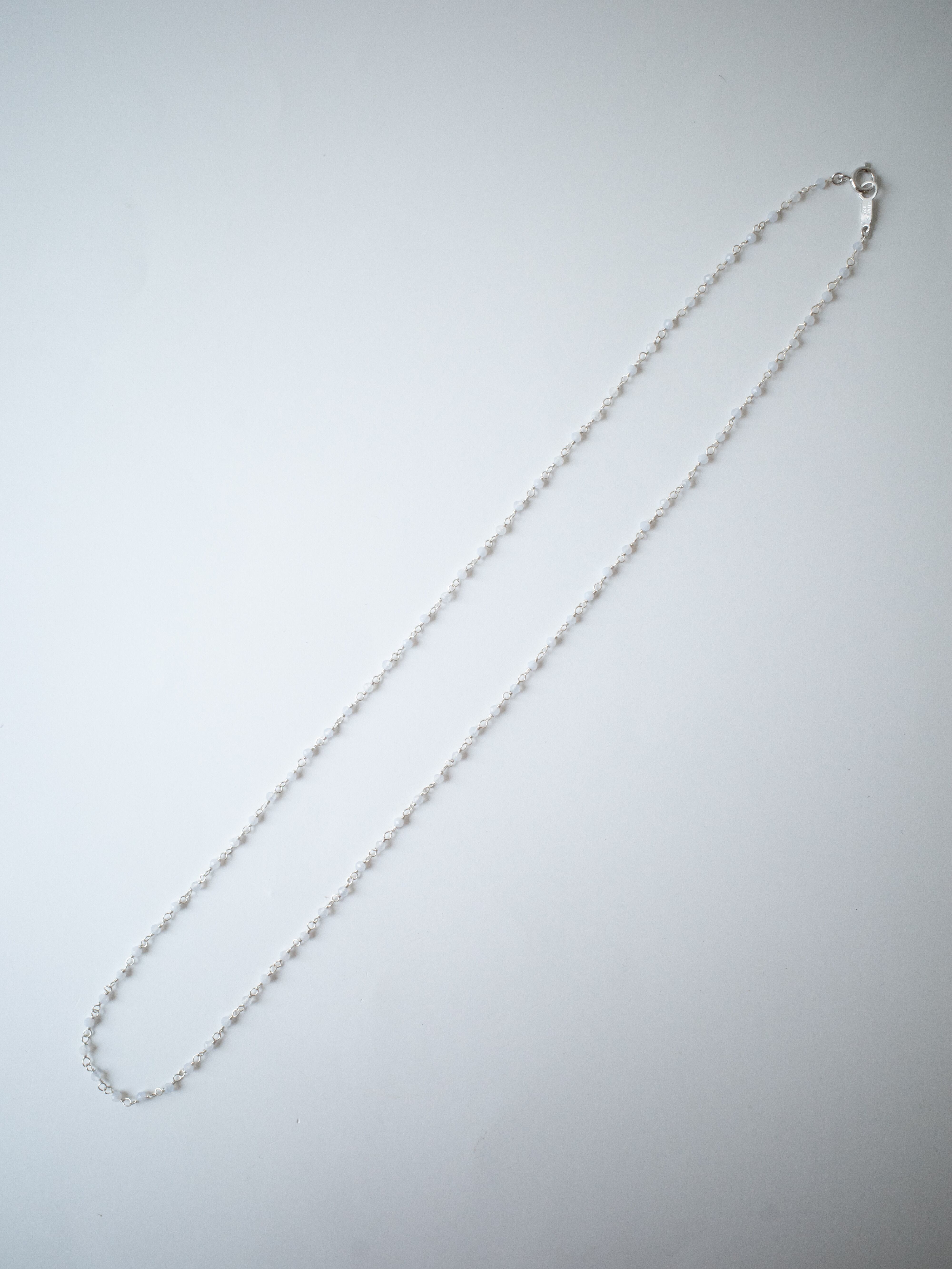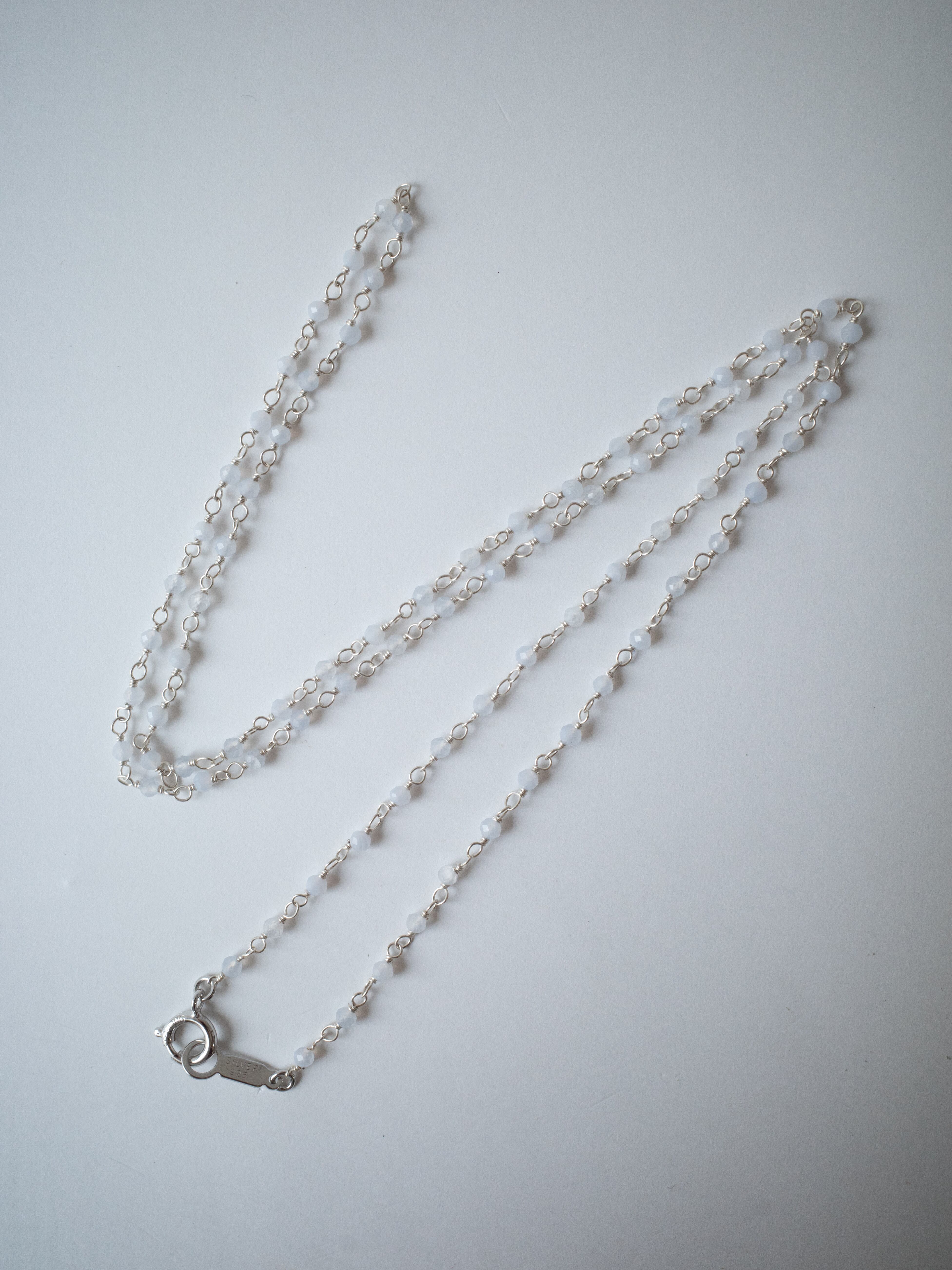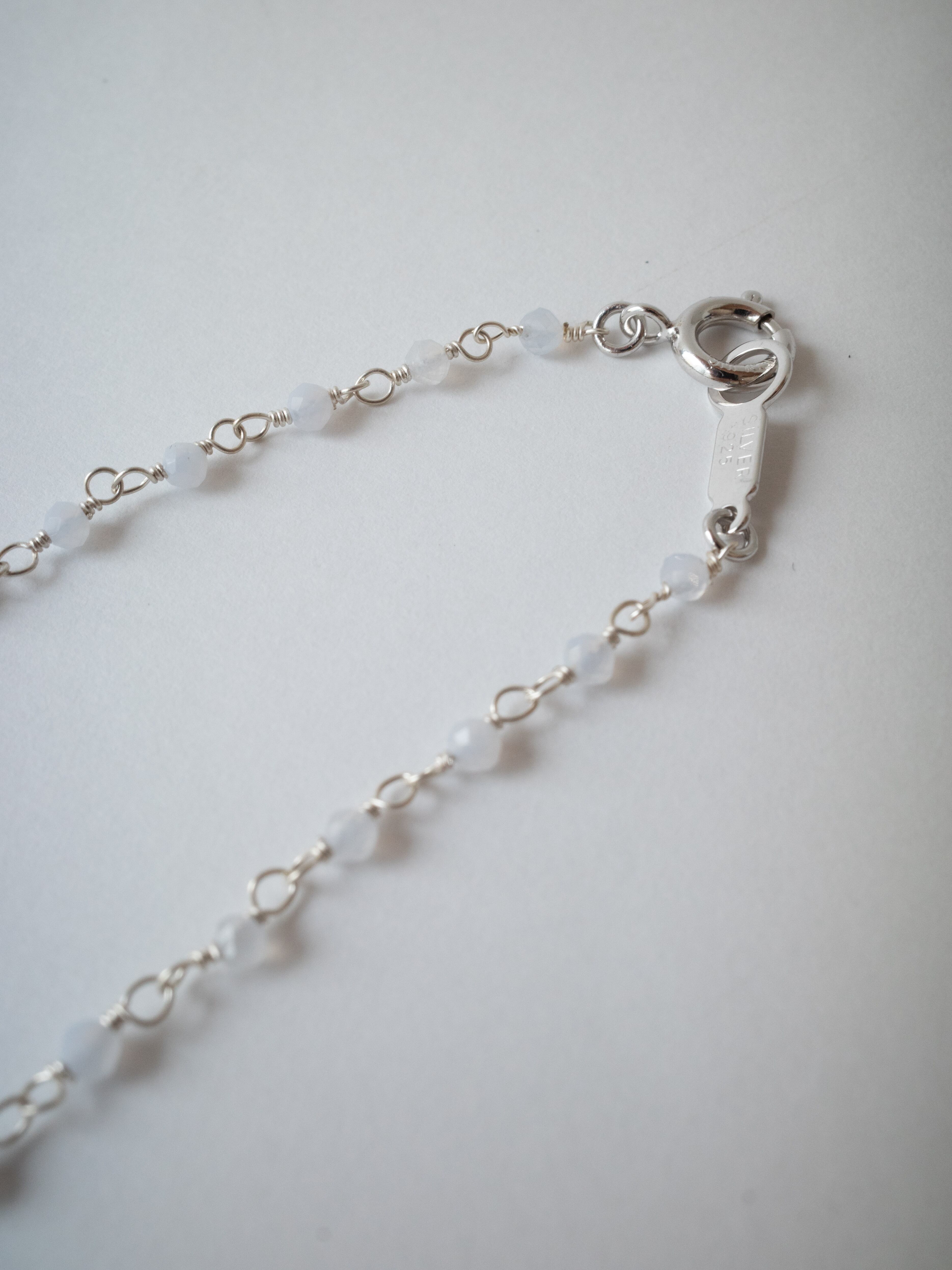 こちらは 、ブルーカルセドニーを繋げた Starling Silver 製のシャンクチェーンネックレスです。そのままお使いいただいてても、ペンダントトップを通しても使えます。