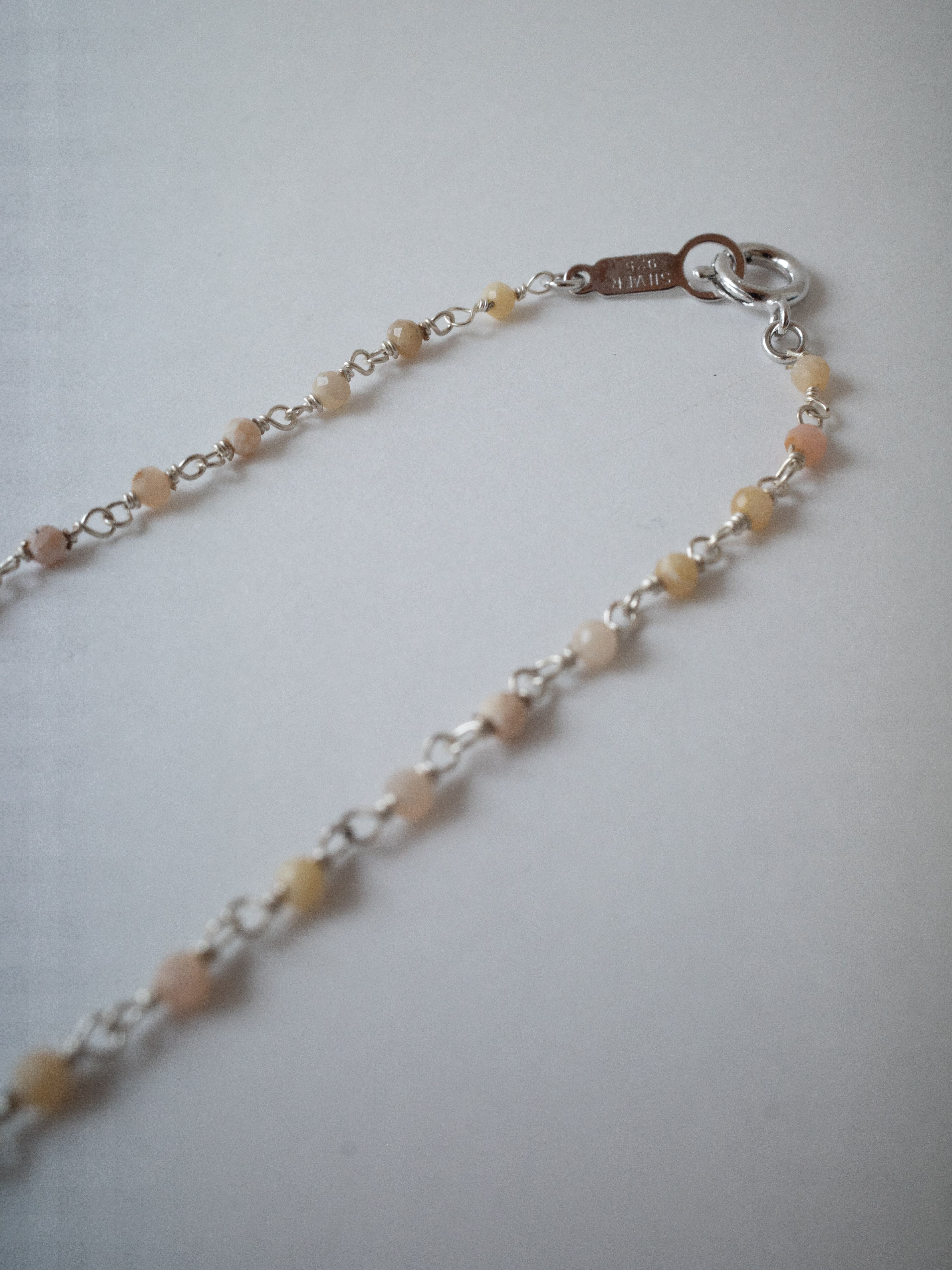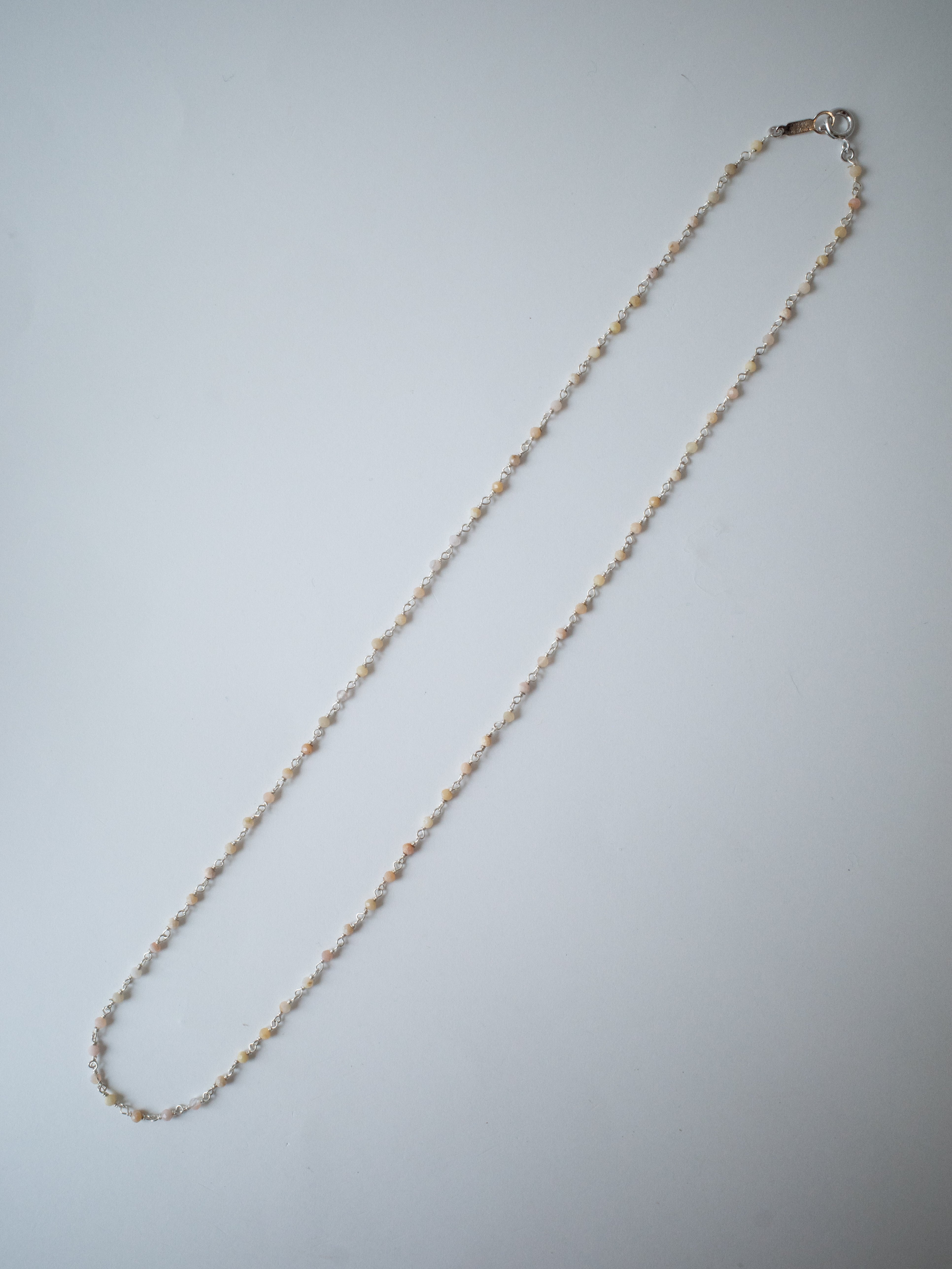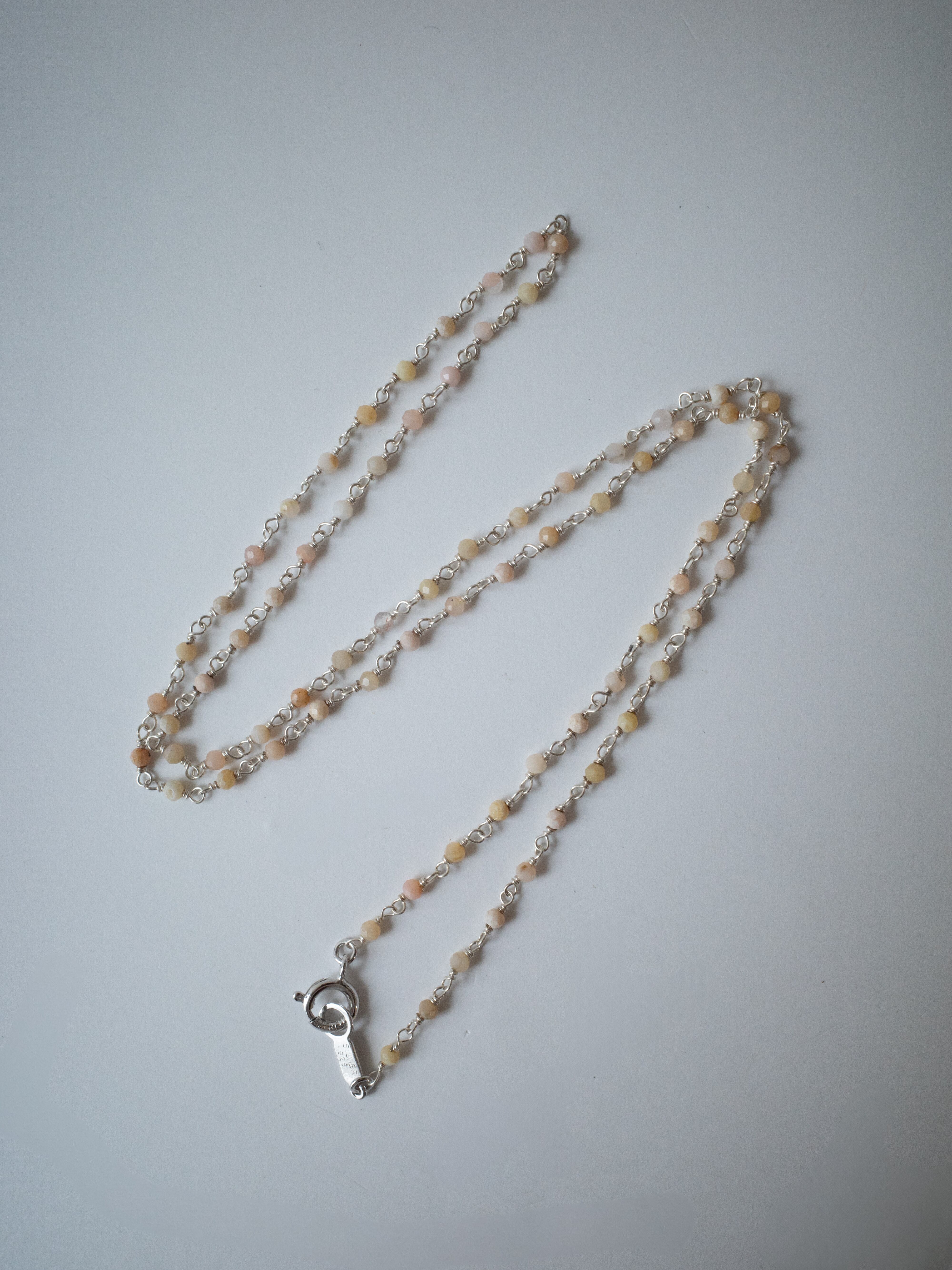 こちらは 、ピンクオパールを繋げた Starling Silver 製のシャンクチェーンネックレスです。そのままお使いいただいてても、ペンダントトップを通しても使えます。