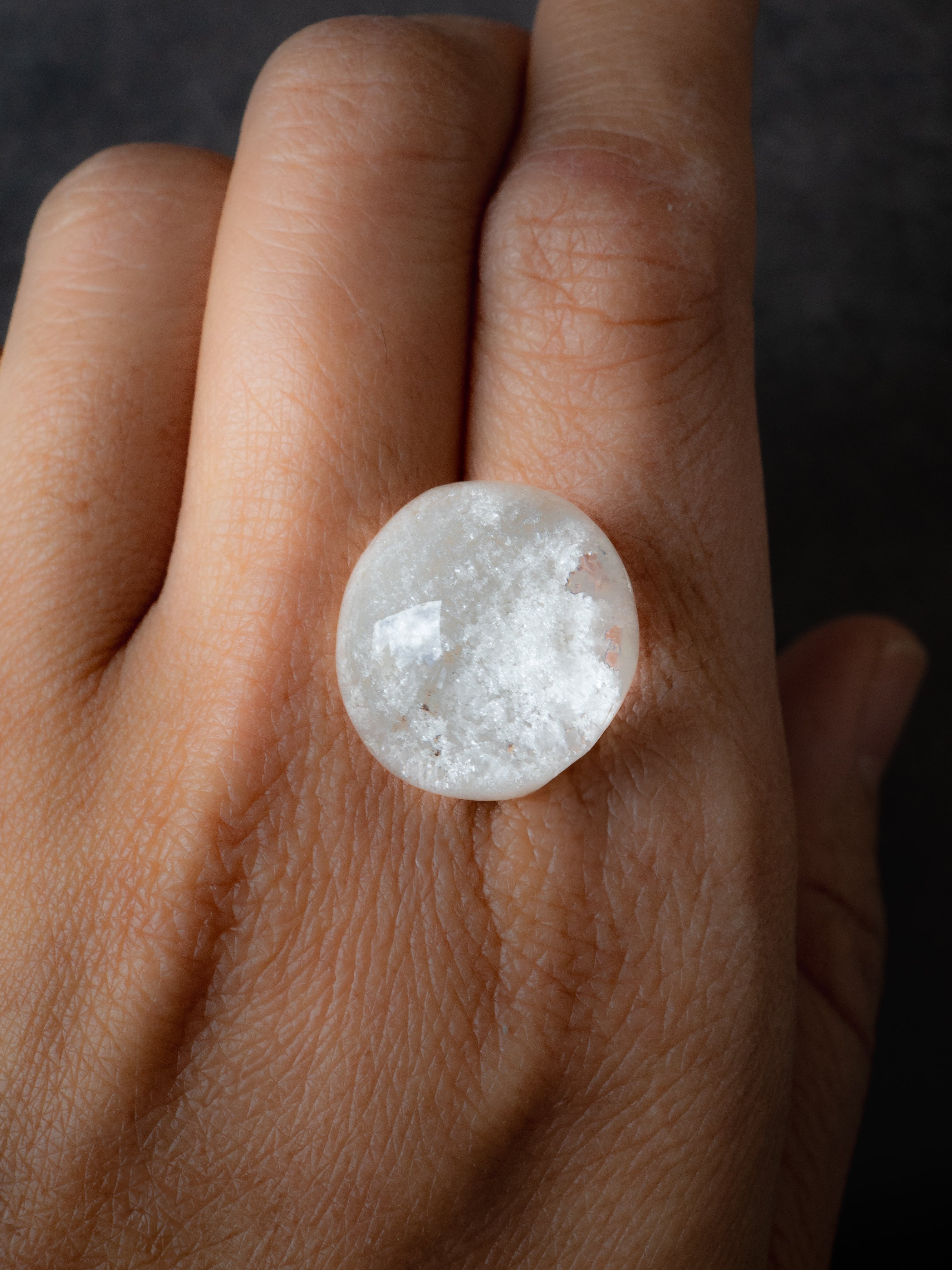 『ホワイトガーデンクォーツ』は、雪のようだったり、空に浮かぶ雲のようだったり、真っ白なインクルージョンが魅力の天然石です。SELSHA で販売しているホワイトガーデンクォーツは、白雲母が内包されています。