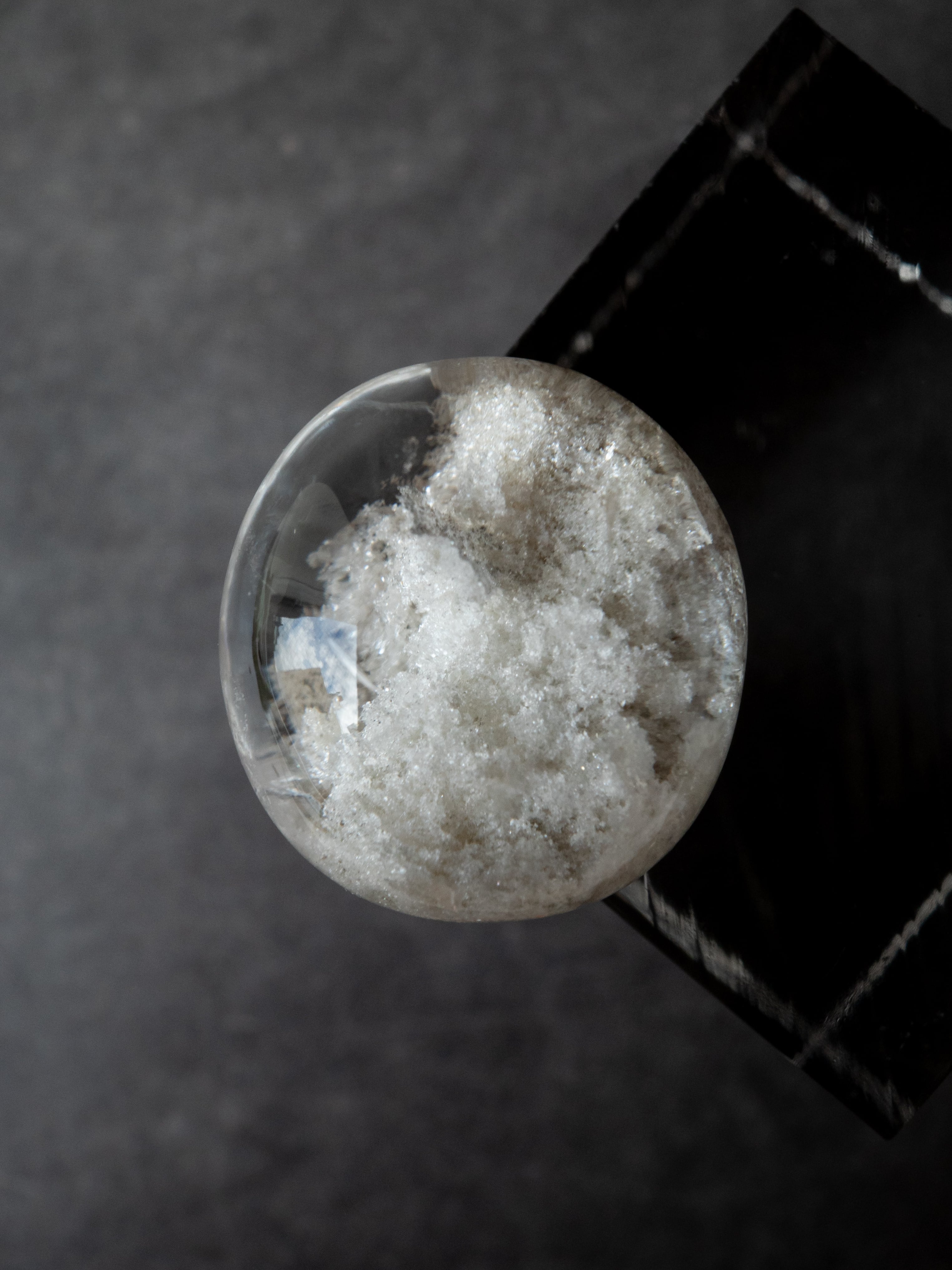 『ホワイトガーデンクォーツ』は、雪のようだったり、空に浮かぶ雲のようだったり、真っ白なインクルージョンが魅力の天然石です。SELSHA で販売しているホワイトガーデンクォーツは、白雲母が内包されています。