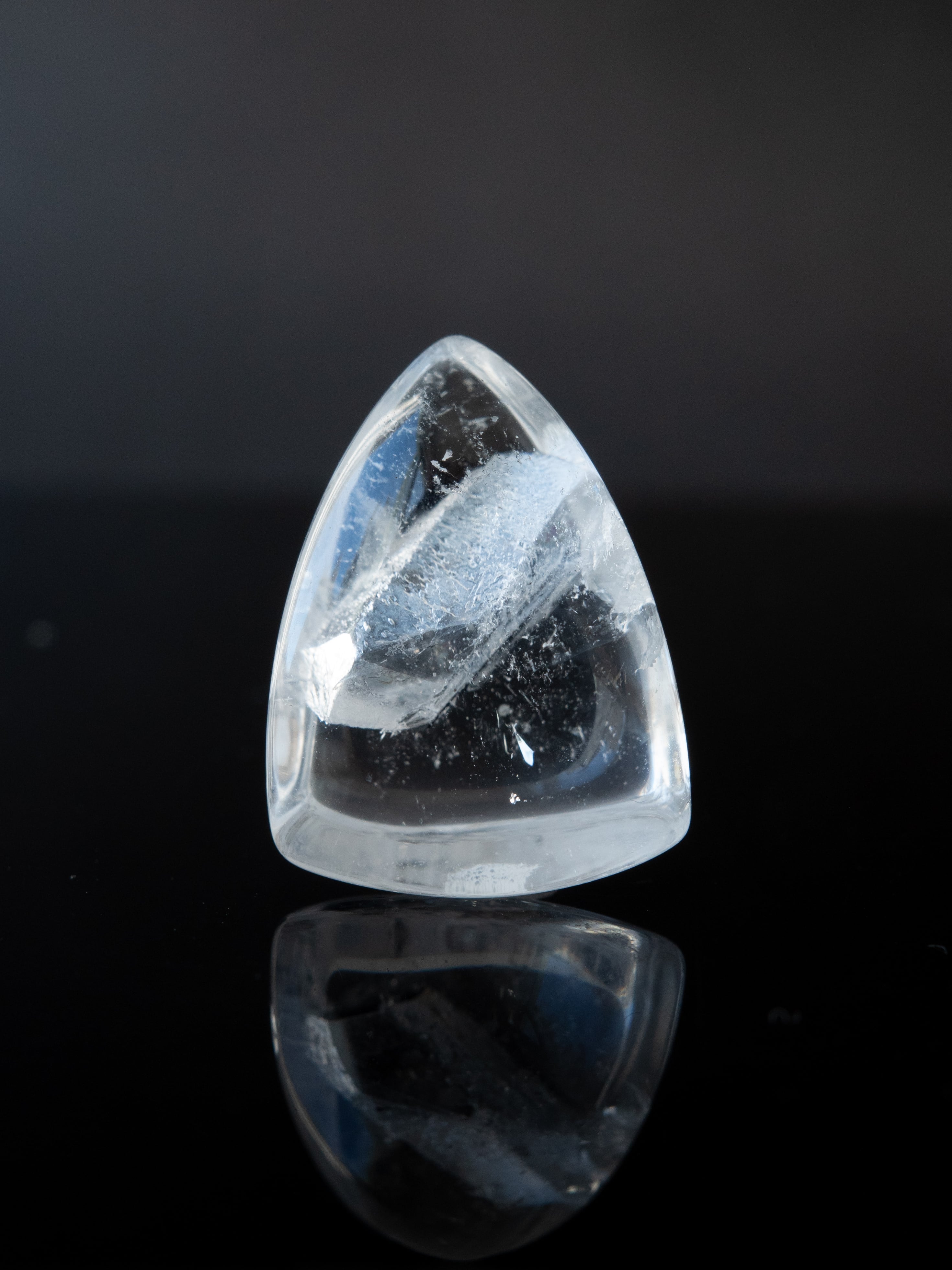 水晶の中に別の水晶が入り込んでいるように見えることから、和名は「貫入水晶」と呼ばれています。水晶の成長過程で、元々あった結晶を他の水晶が包み込むようにして成長した自然の神秘です。