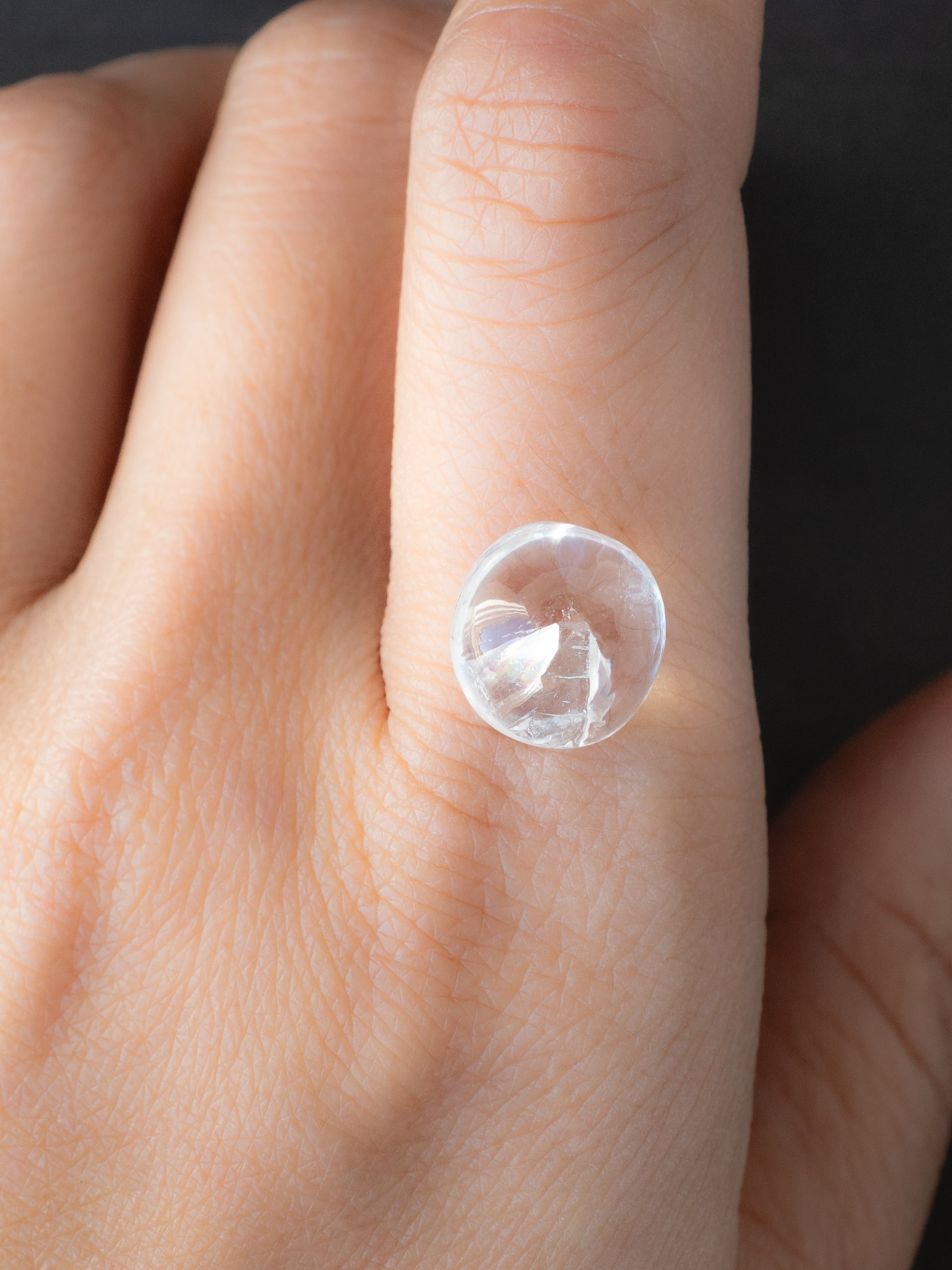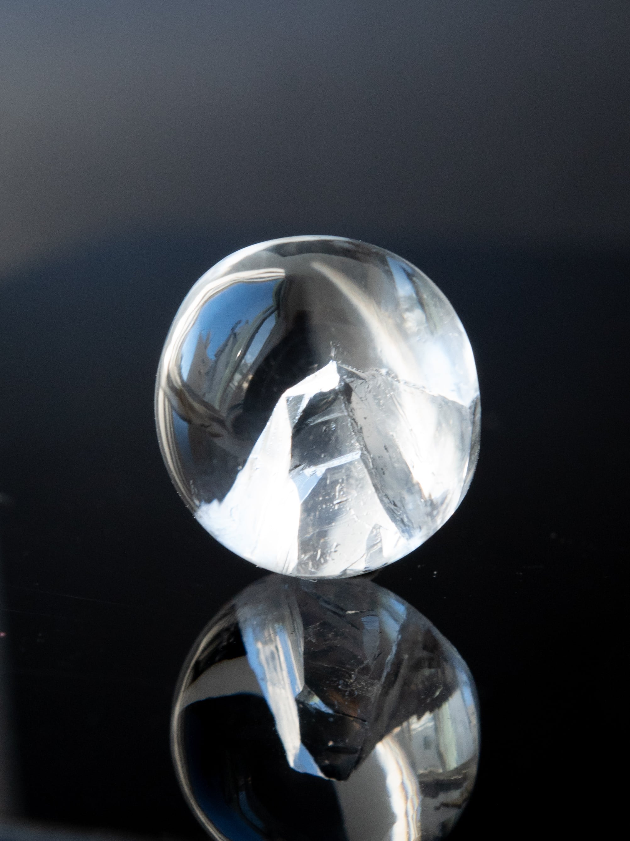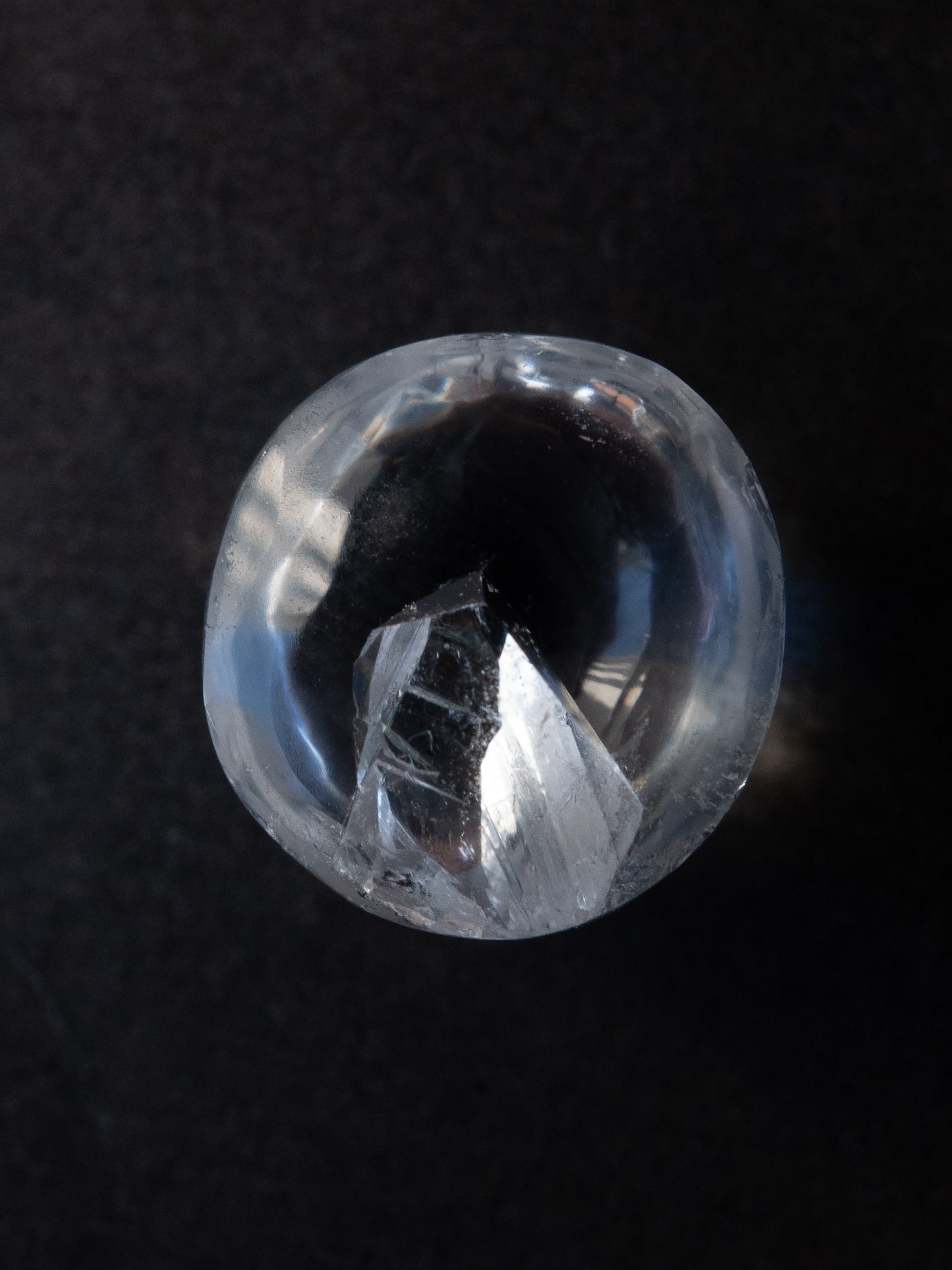 水晶の中に別の水晶が入り込んでいるように見えることから、和名は「貫入水晶」と呼ばれています。水晶の成長過程で、元々あった結晶を他の水晶が包み込むようにして成長した自然の神秘です。