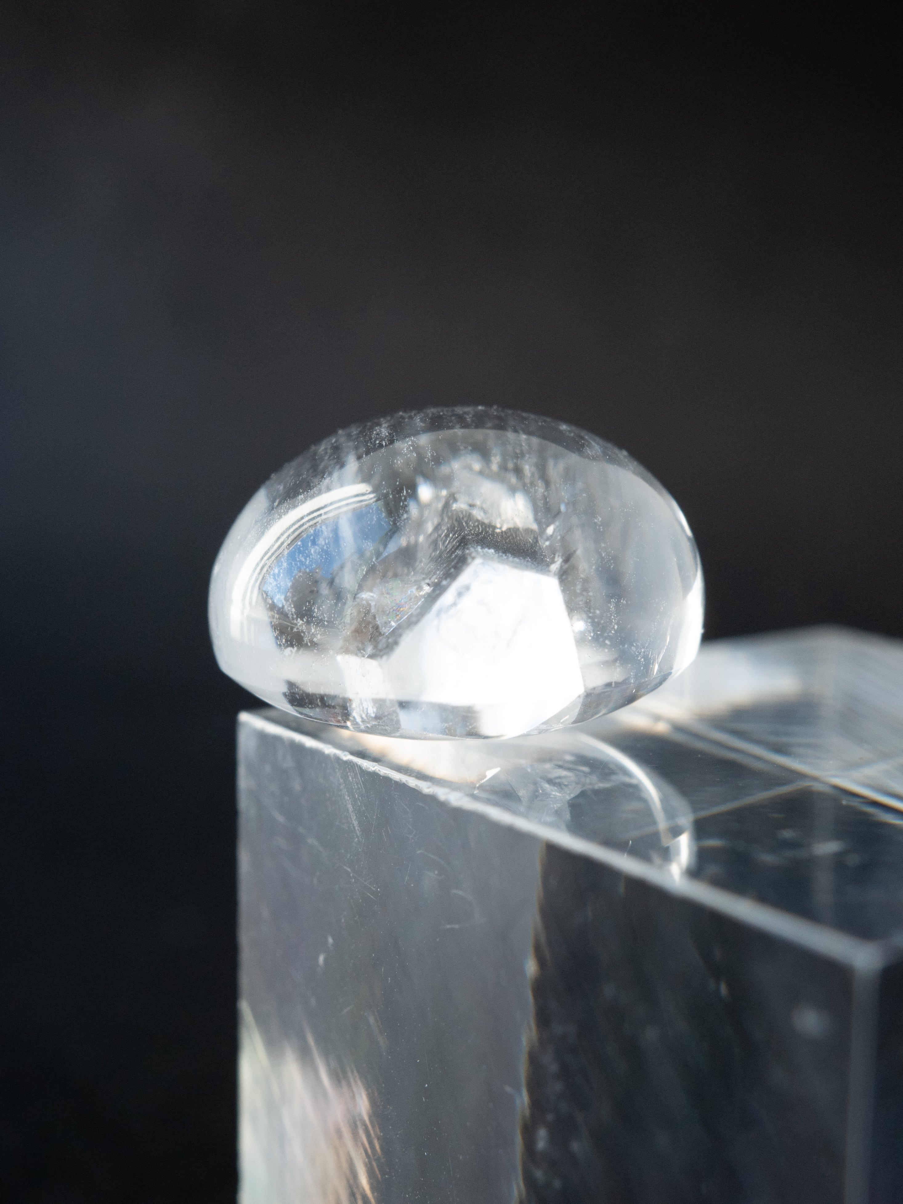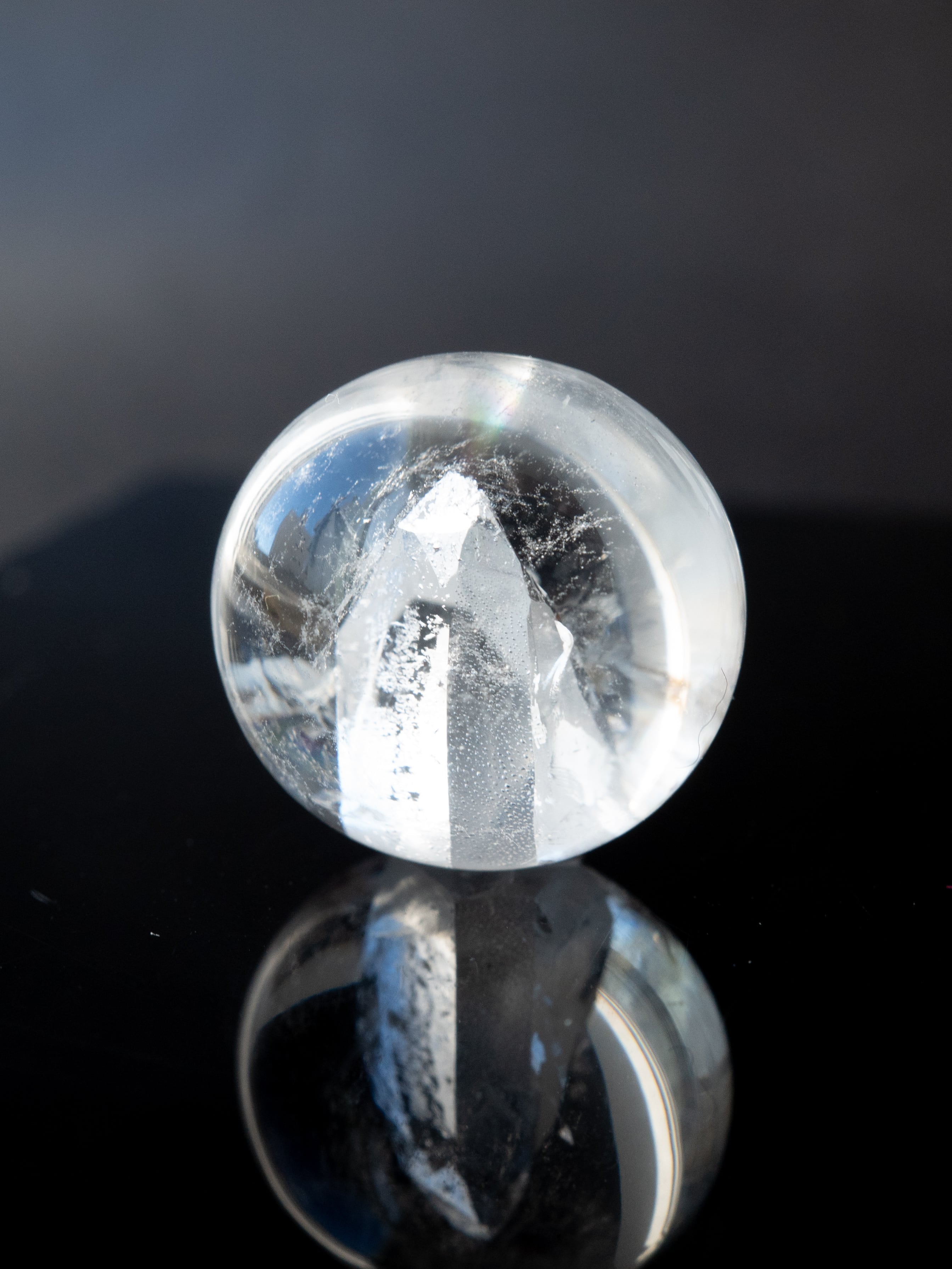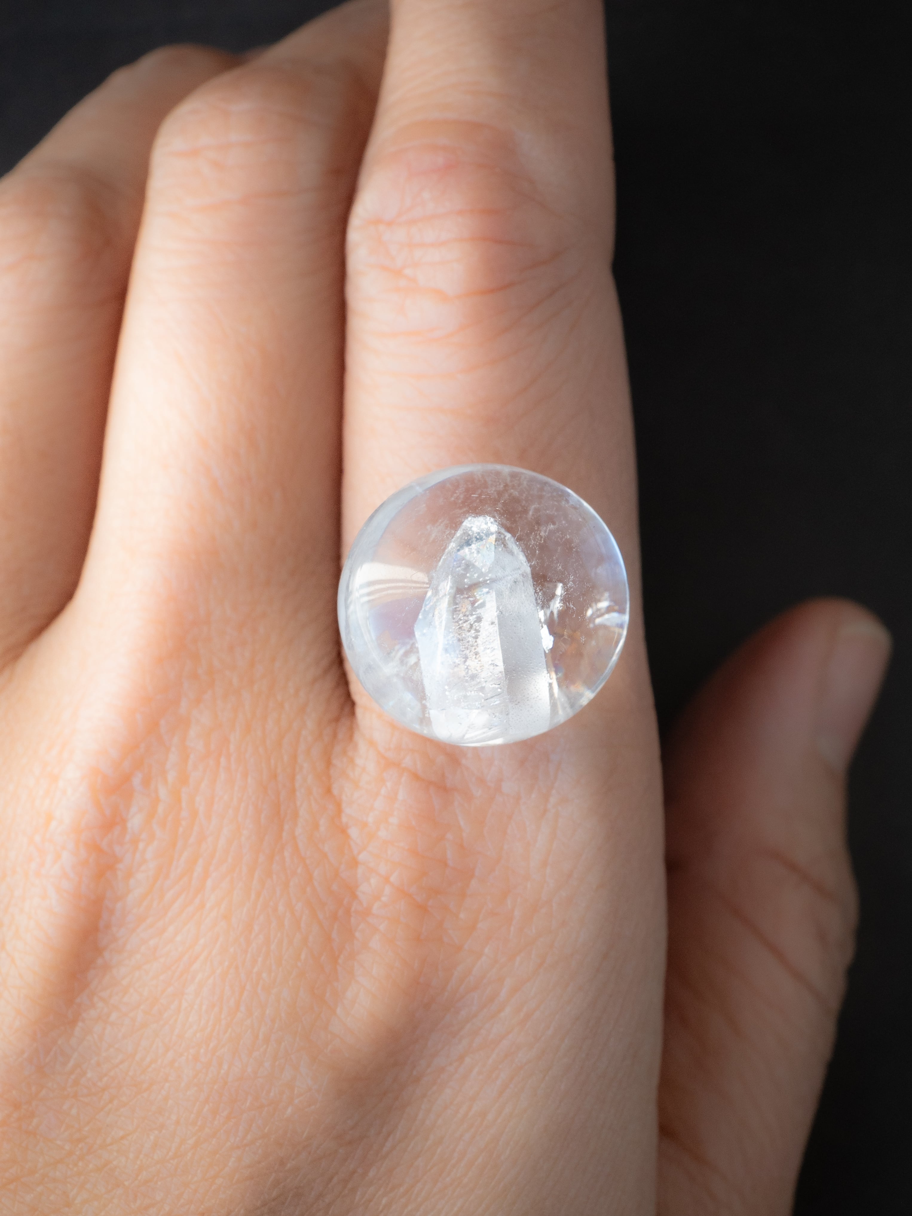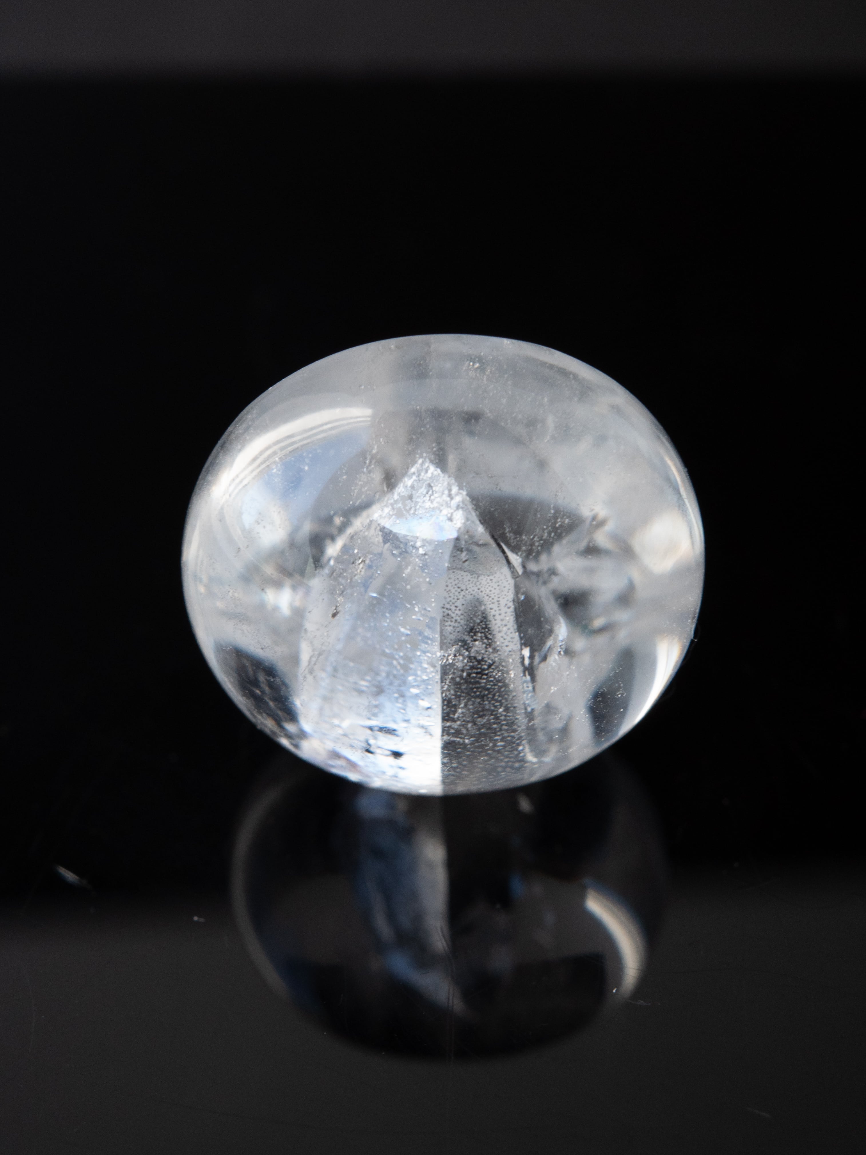 水晶の中に別の水晶が入り込んでいるように見えることから、和名は「貫入水晶」と呼ばれています。水晶の成長過程で、元々あった結晶を他の水晶が包み込むようにして成長した自然の神秘です。