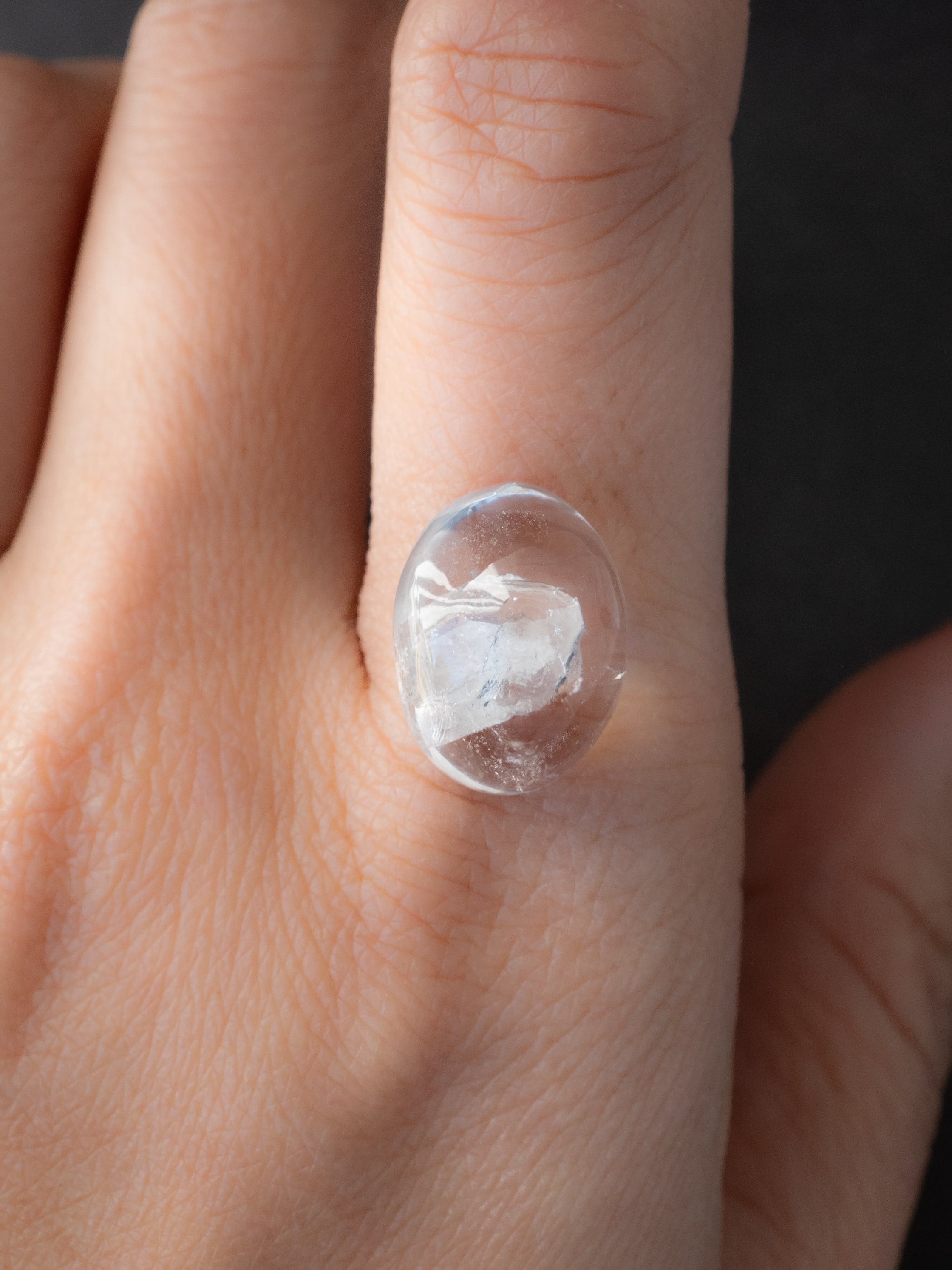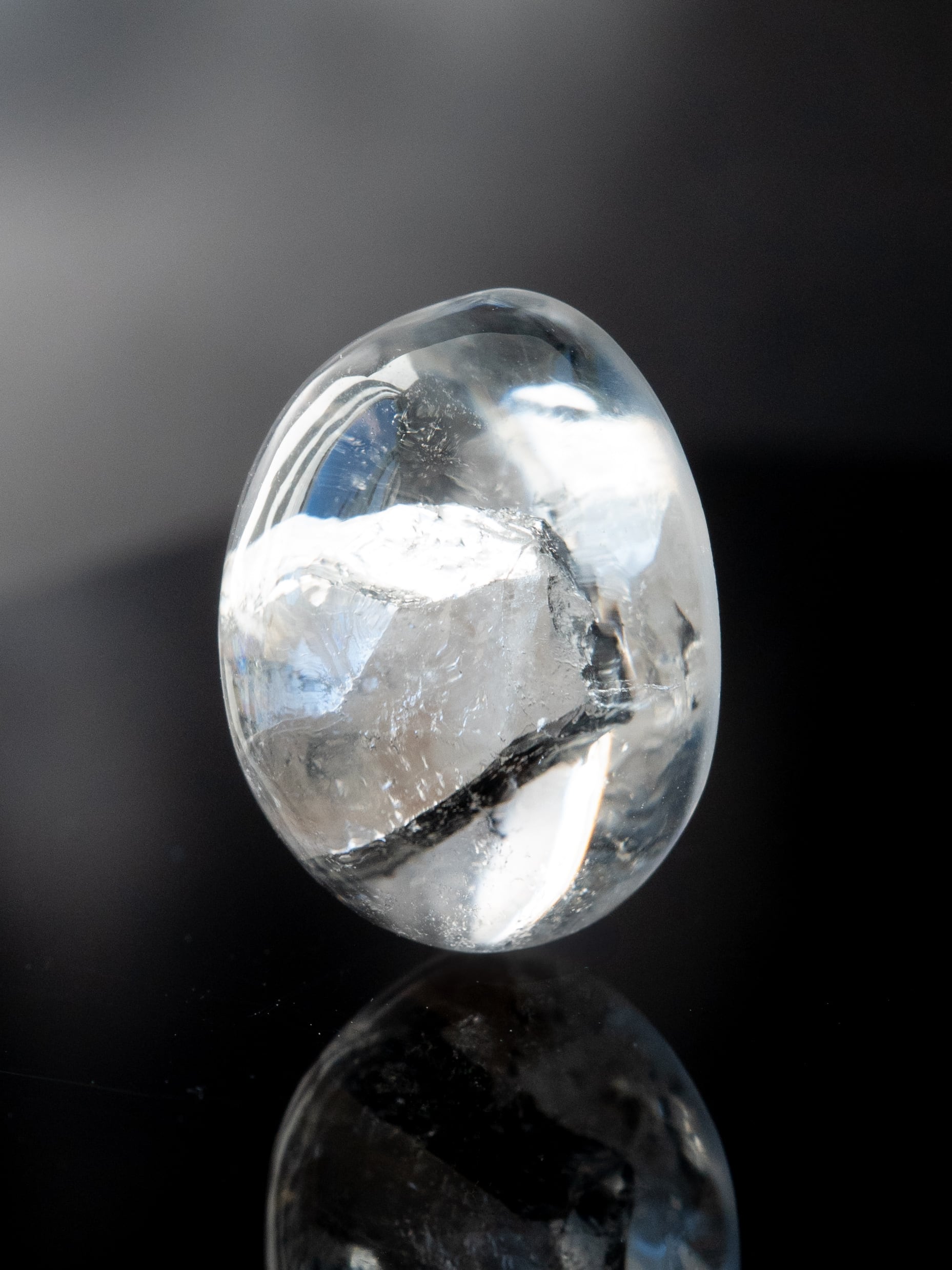 水晶の中に別の水晶が入り込んでいるように見えることから、和名は「貫入水晶」と呼ばれています。水晶の成長過程で、元々あった結晶を他の水晶が包み込むようにして成長した自然の神秘です。
