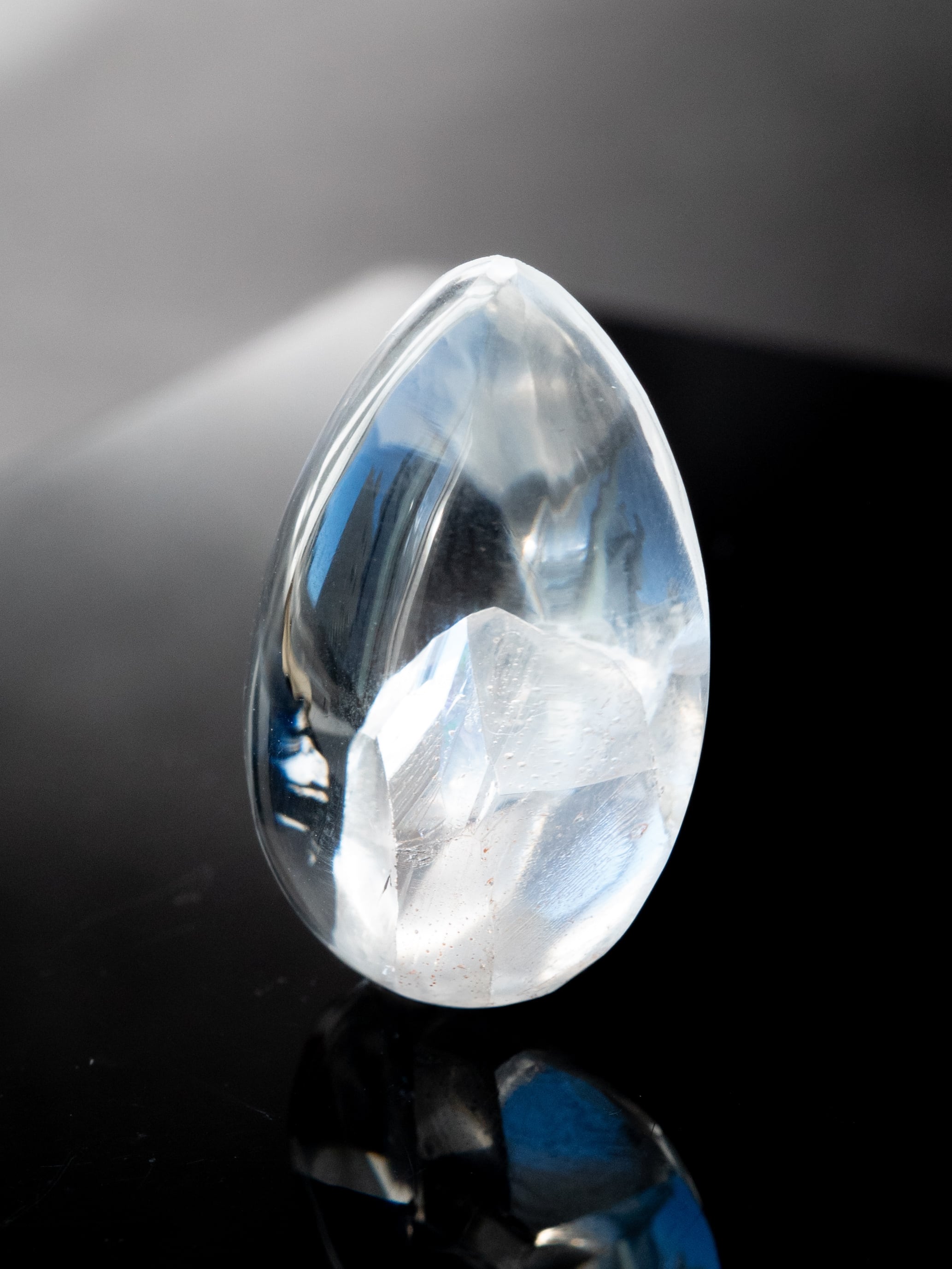 水晶の中に別の水晶が入り込んでいるように見えることから、和名は「貫入水晶」と呼ばれています。水晶の成長過程で、元々あった結晶を他の水晶が包み込むようにして成長した自然の神秘です。