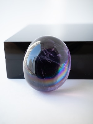 水晶で見られるこの現象は内部に薄い層があってこそのものですので、クラックのある原石から研磨しています。その為ひび割れの一部が表面へ達している場合が多くありますのでご理解の上ご購入ください。