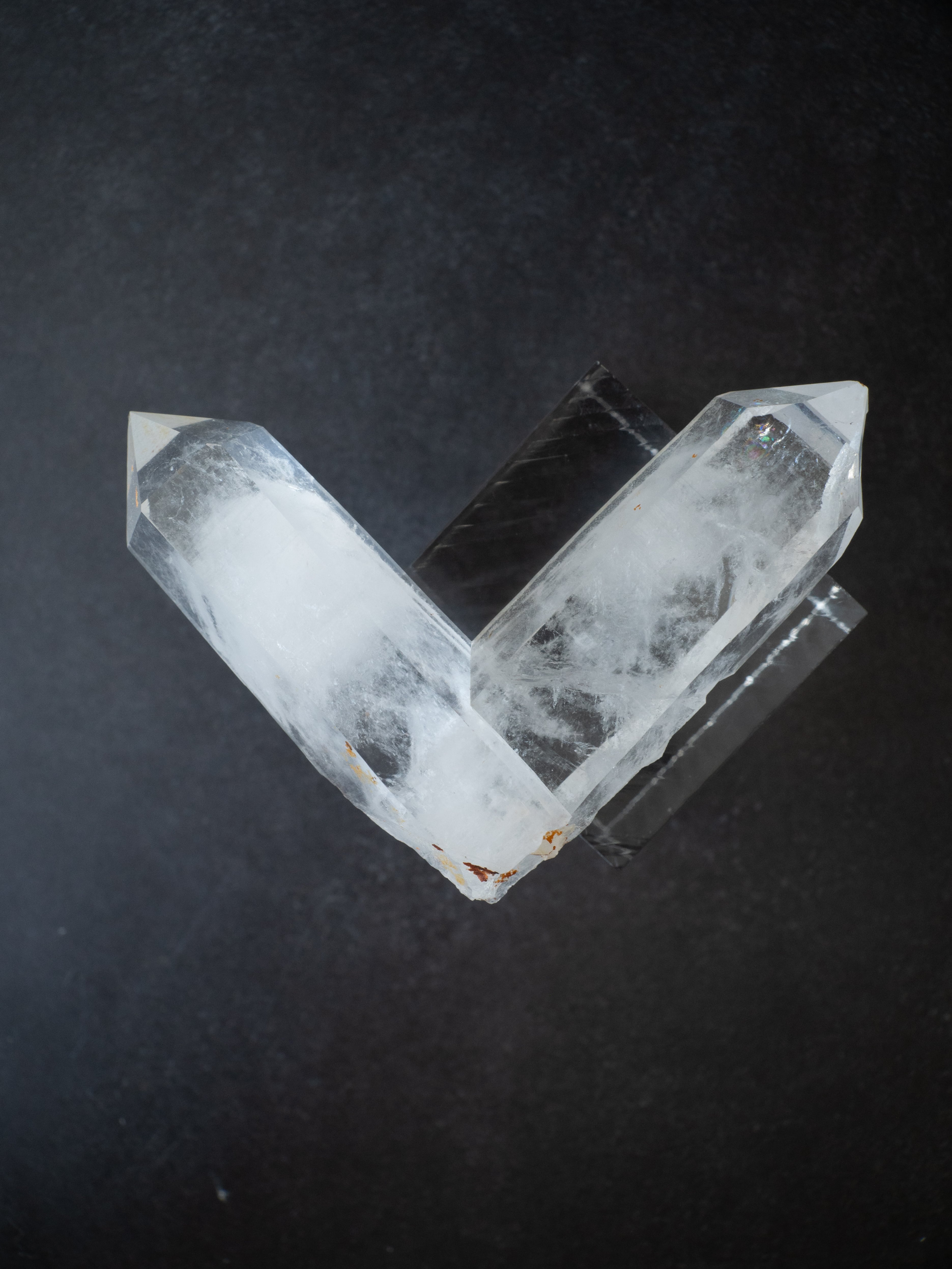 双晶とは、二つの結晶が成長の途中で接触し、そのまま一体となって成長した天然の結晶。