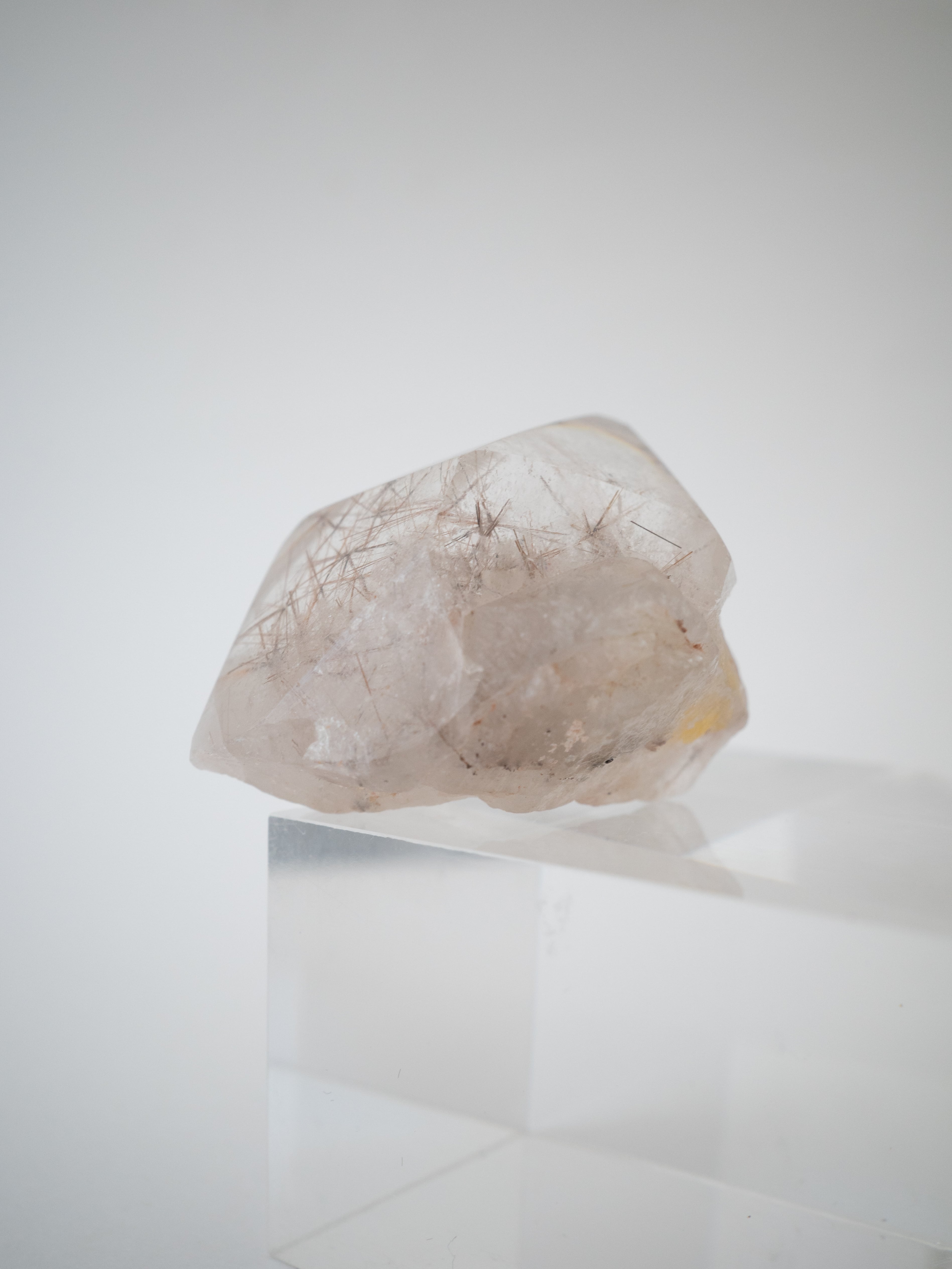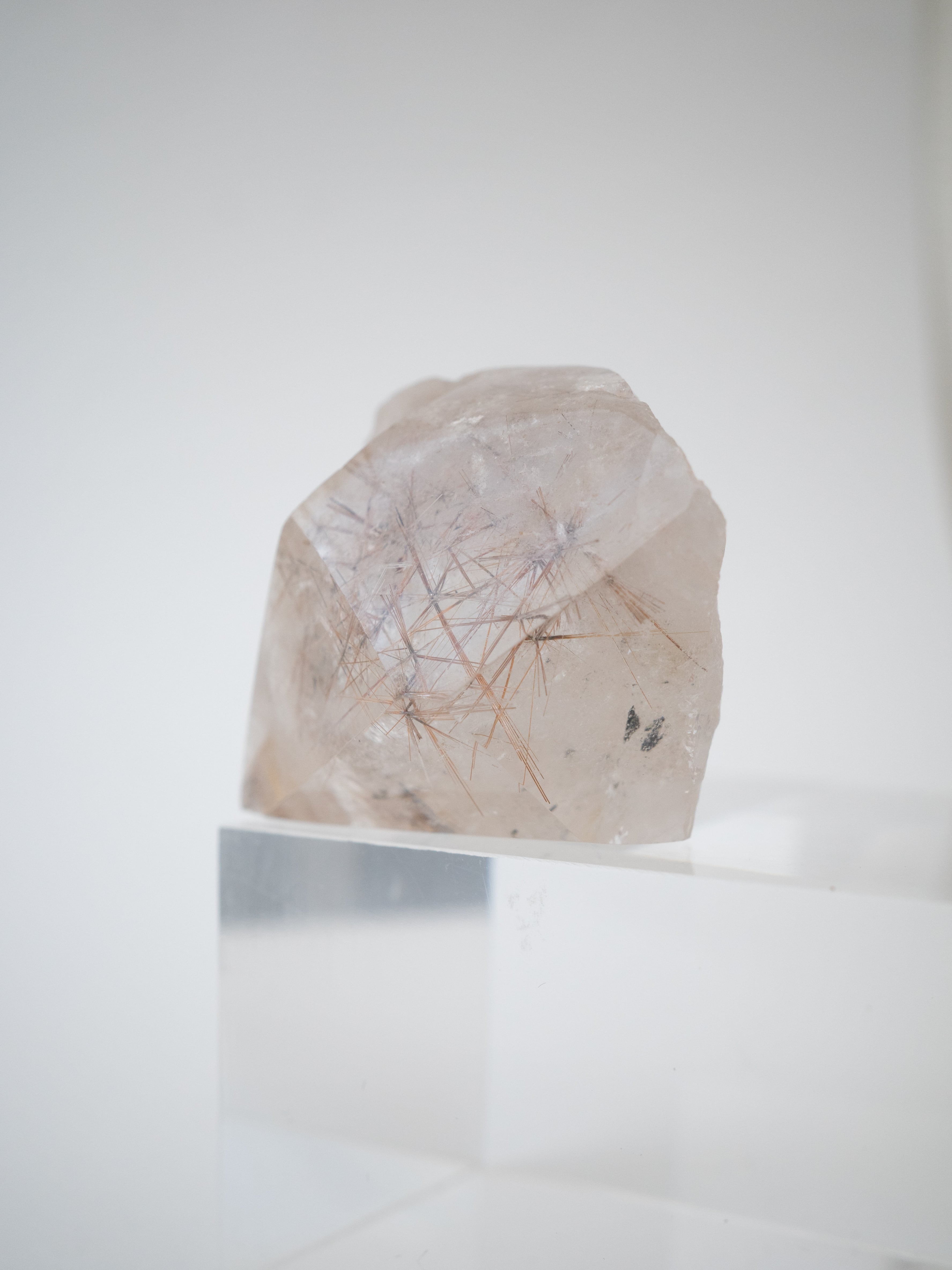 Red Rutilated Quartz is a rare variety of rutilated quartz in which trace amounts of iron have oxidized, giving rise to its distinctive red hue. Compared to the more common golden or brown varieties, red rutile occurs in much smaller quantities, and only a limited number of pieces are available.