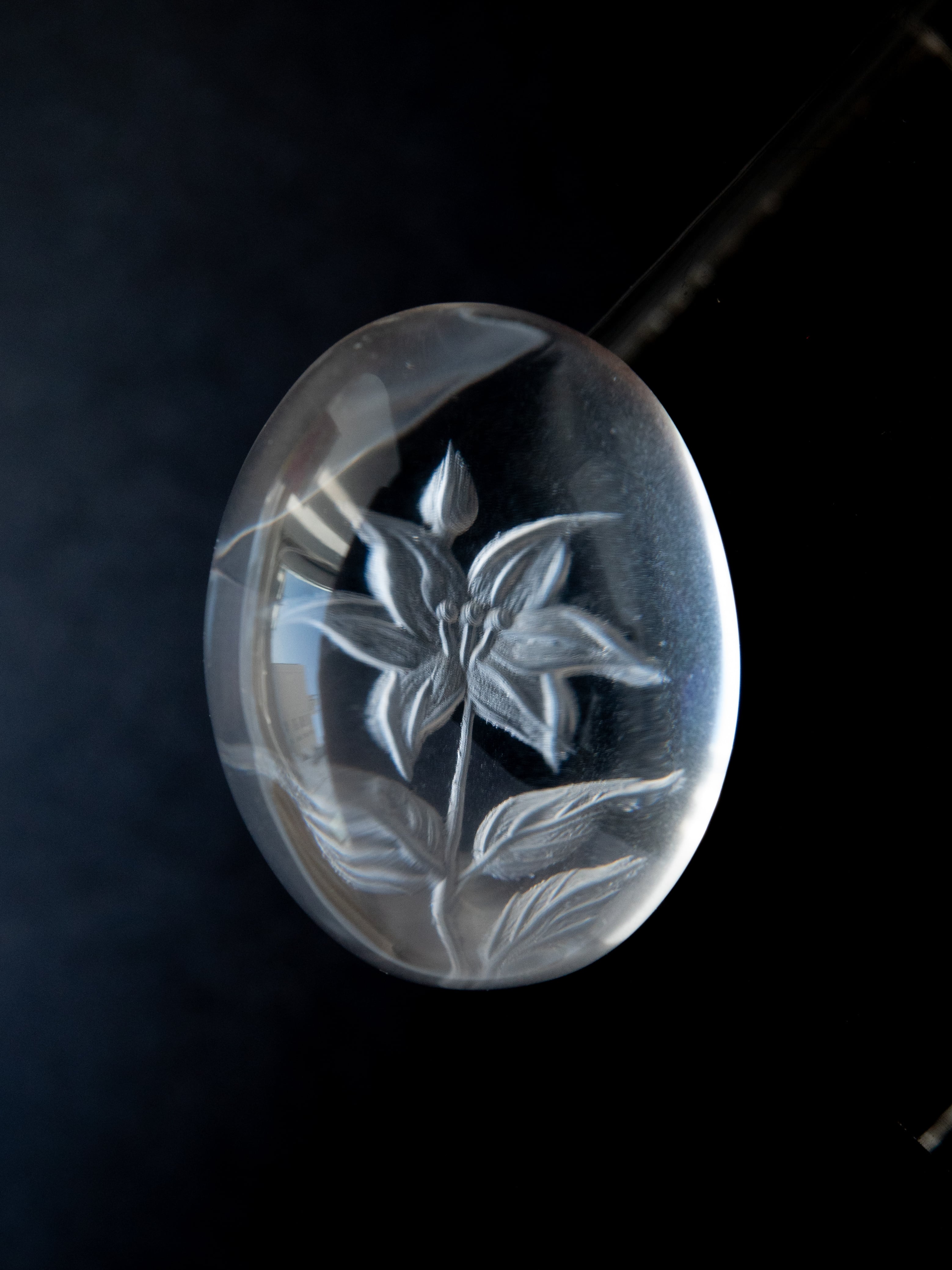 SELSHA では天然石の仕入れだけでなく、行く先々で出会った職人さんたちと一緒にものづくりをすることにも力を入れてきました。こちらは SELSHA のオリジナル図案で製作したバックービングの水晶です。