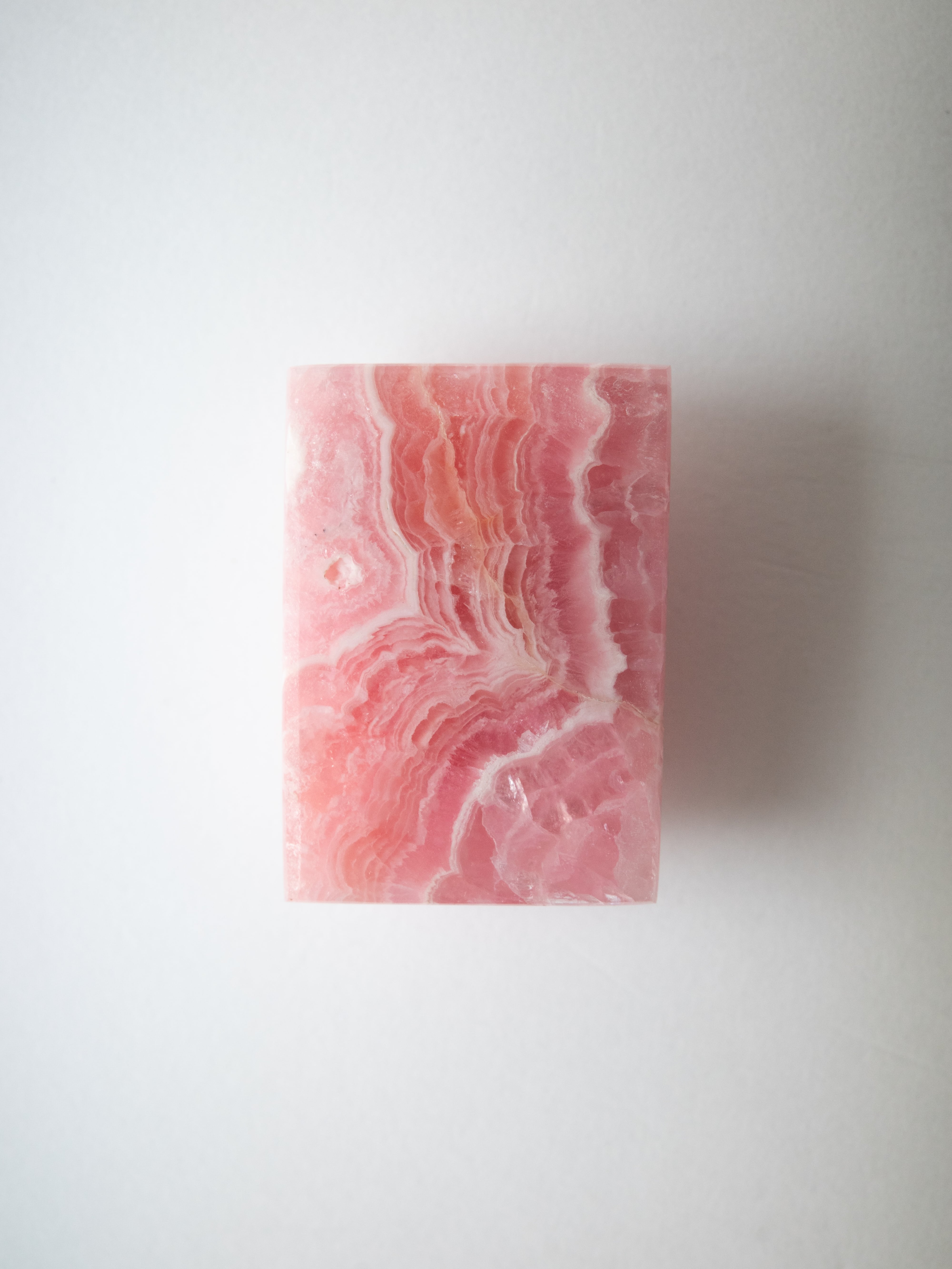 Rhodochrosite is a carbonate mineral mainly composed of manganese, and it is a natural stone that has colors ranging from soft pink to rose.Its greatest charm is its unique patterns.