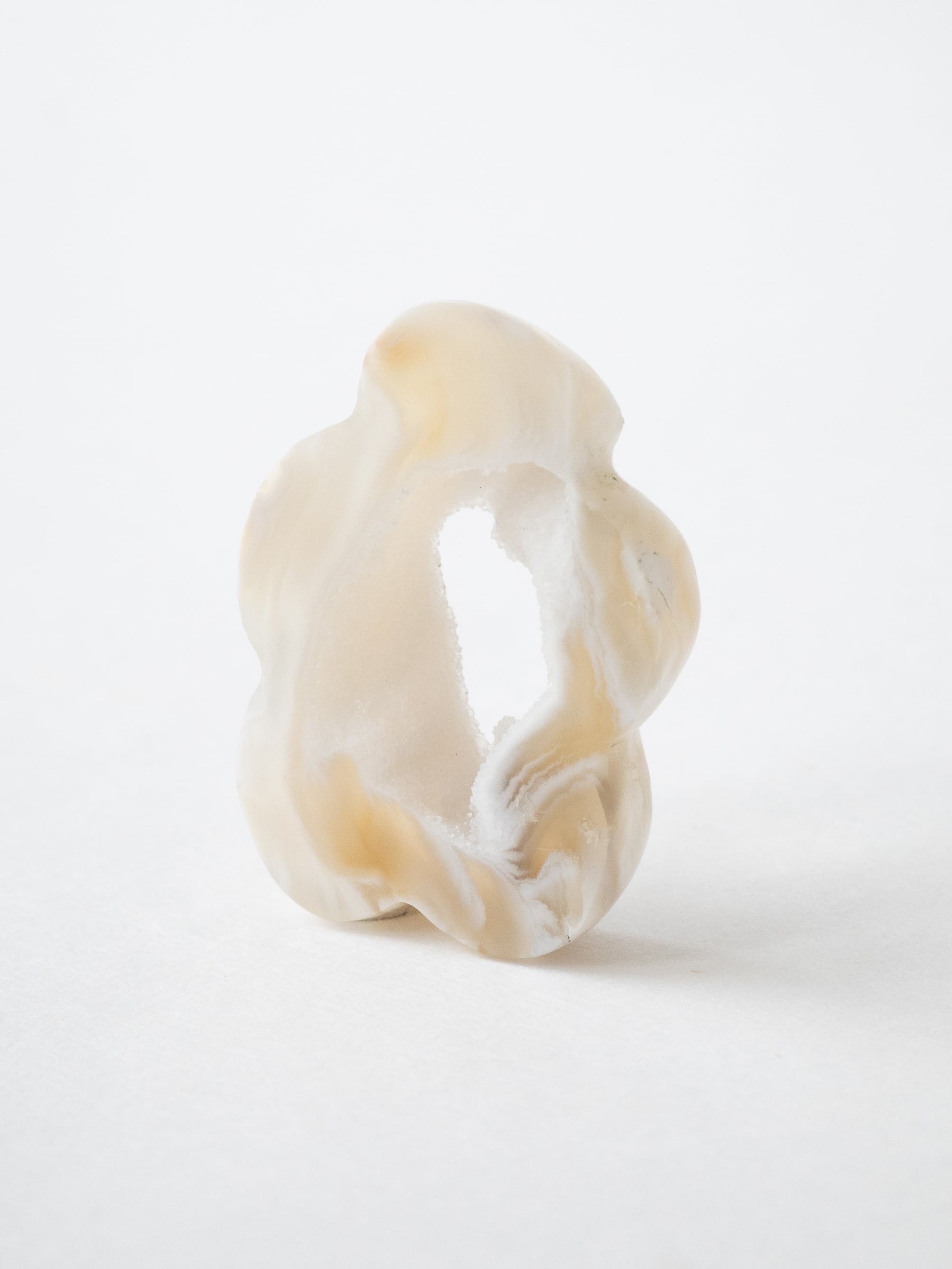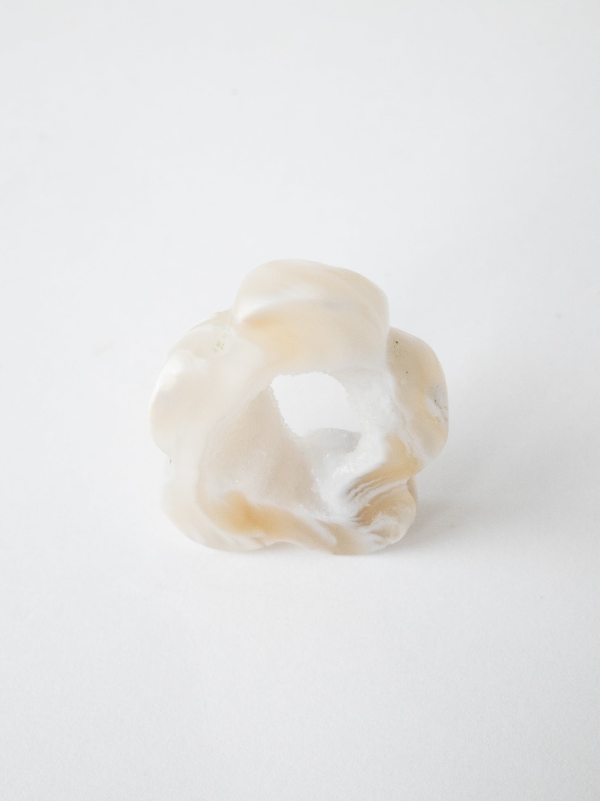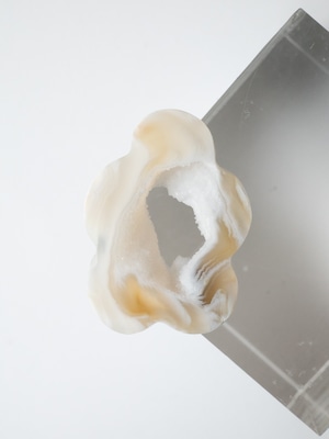 キラキラとした小さな結晶が美しいドゥルジーアゲートを、お花のようなフォルムにカットしました。雲のように見えるものもありますね。自然の形を生かしたカットなので、可愛らしさに偏りすぎないバランスの取れたデザインです。