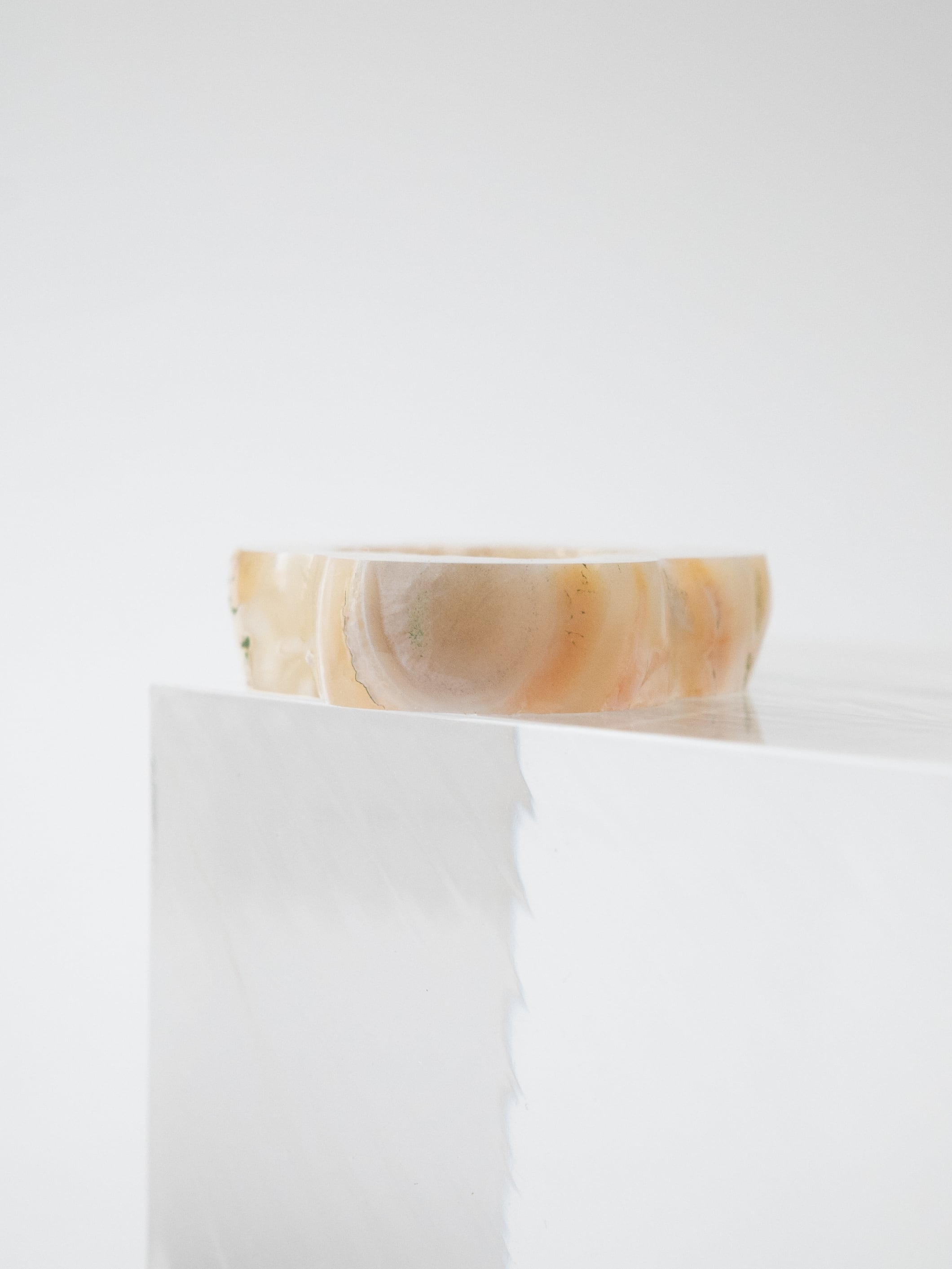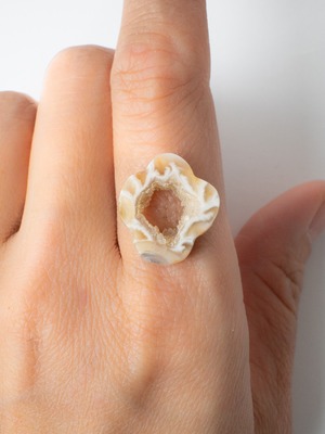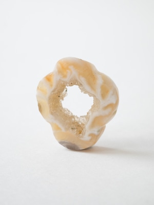 キラキラとした小さな結晶が美しいドゥルジーアゲートを、お花のようなフォルムにカットしました。雲のように見えるものもありますね。自然の形を生かしたカットなので、可愛らしさに偏りすぎないバランスの取れたデザインです。