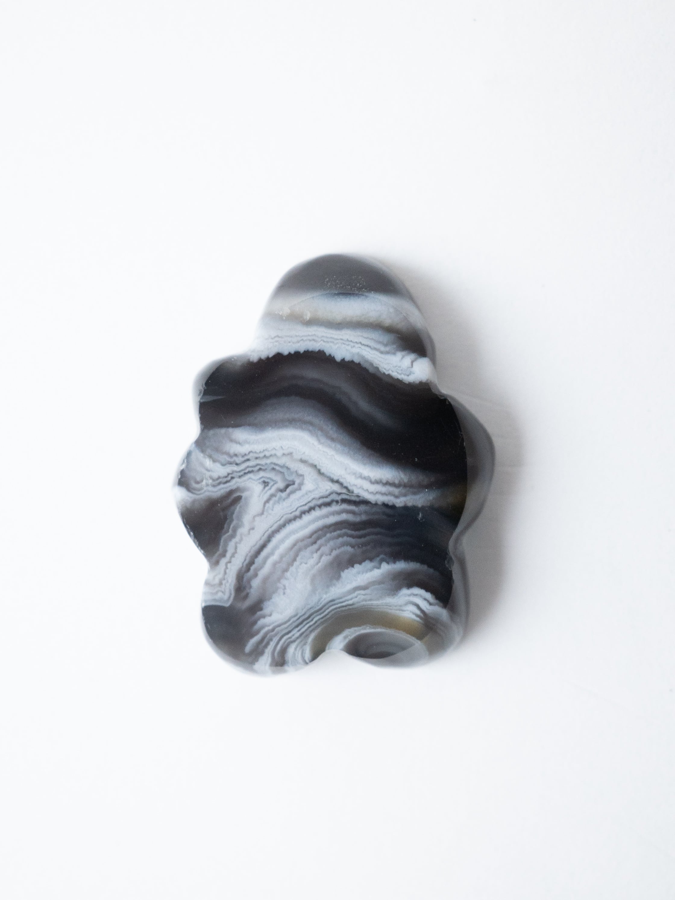 キラキラとした小さな結晶が美しいドゥルジーアゲートを、お花のようなフォルムにカットしました。雲のように見えるものもありますね。自然の形を生かしたカットなので、可愛らしさに偏りすぎないバランスの取れたデザインです。