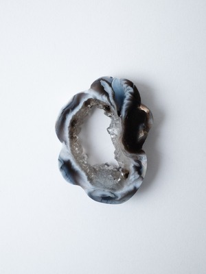 キラキラとした小さな結晶が美しいドゥルジーアゲートを、お花のようなフォルムにカットしました。雲のように見えるものもありますね。自然の形を生かしたカットなので、可愛らしさに偏りすぎないバランスの取れたデザインです。