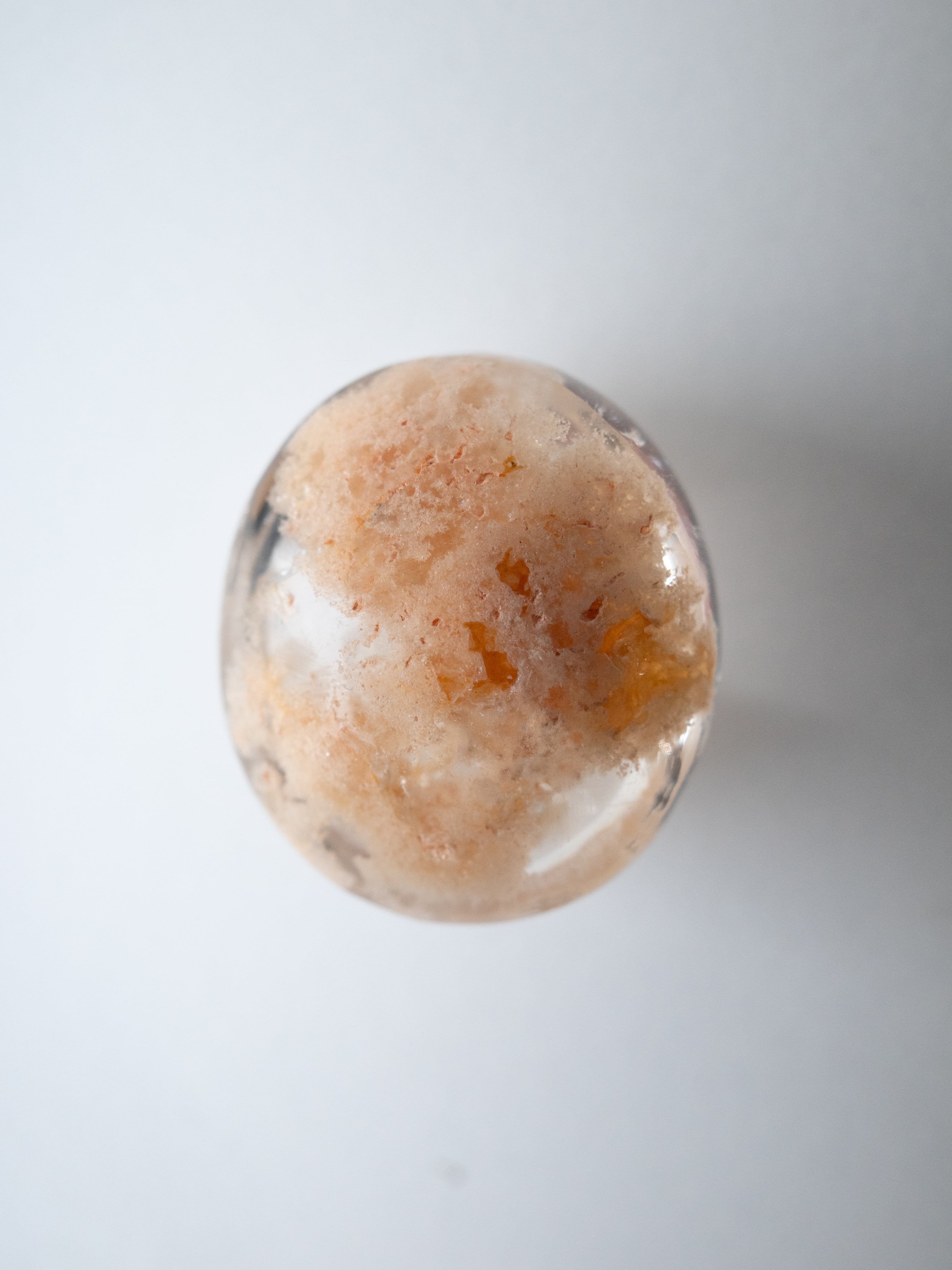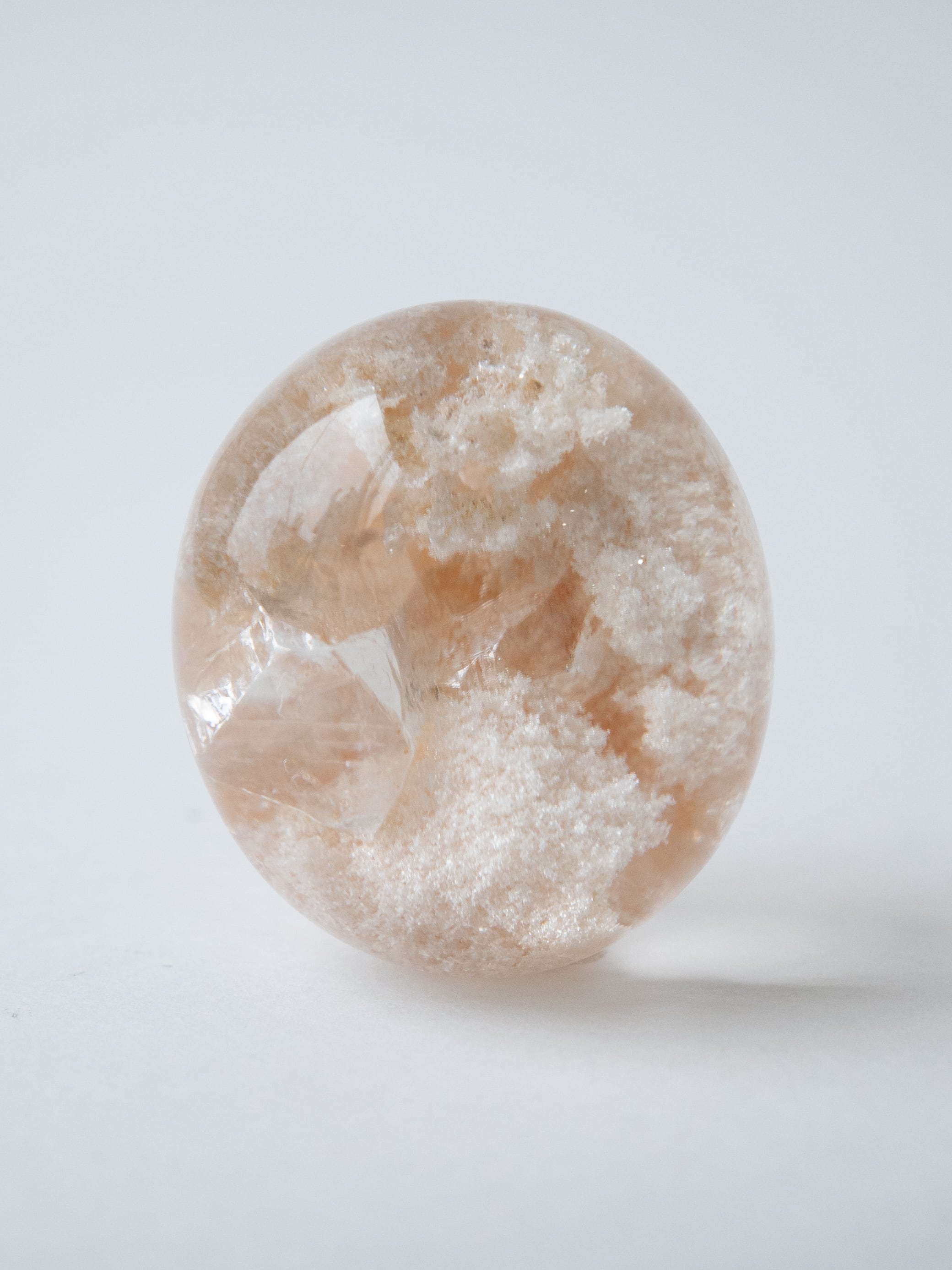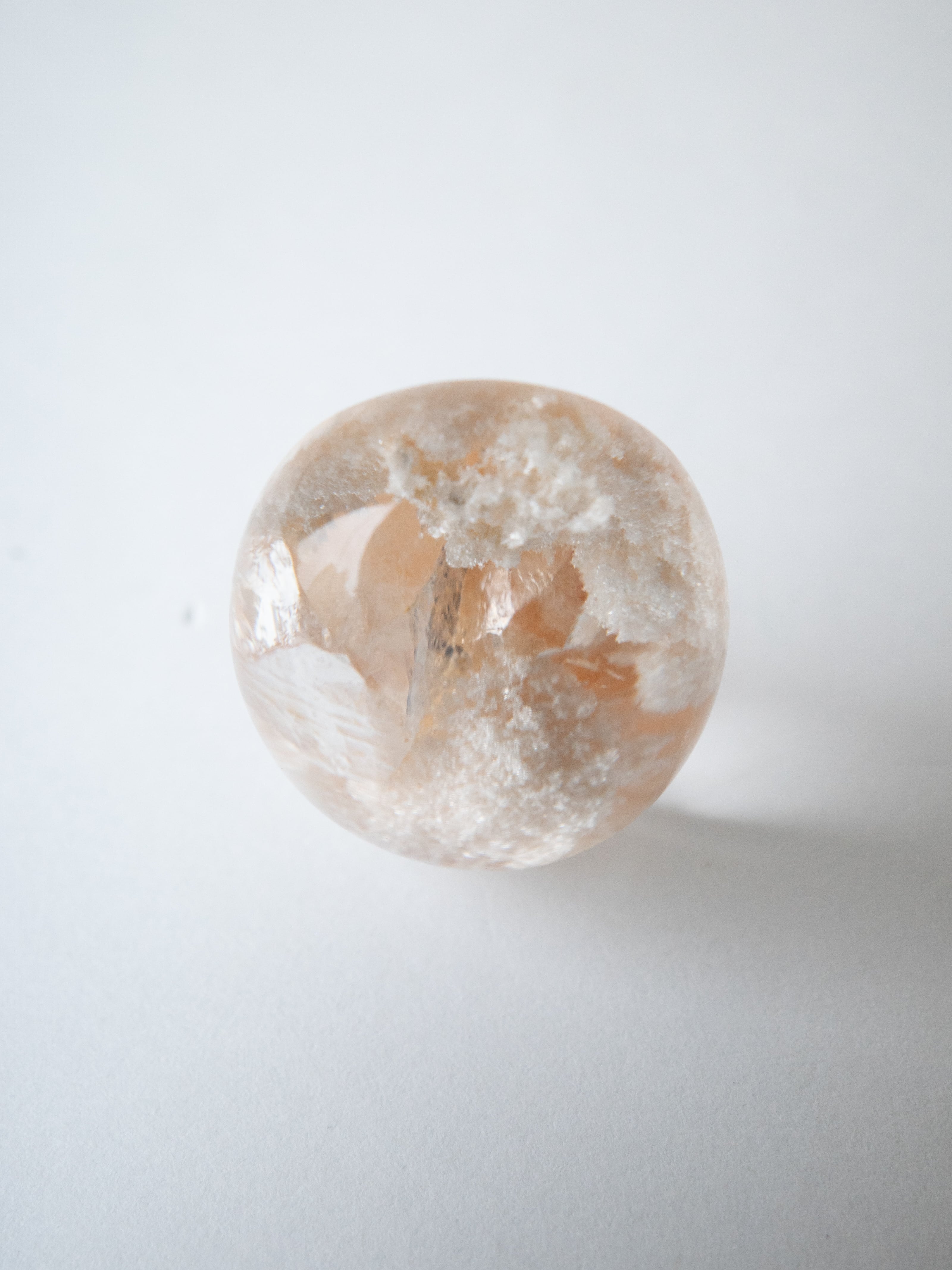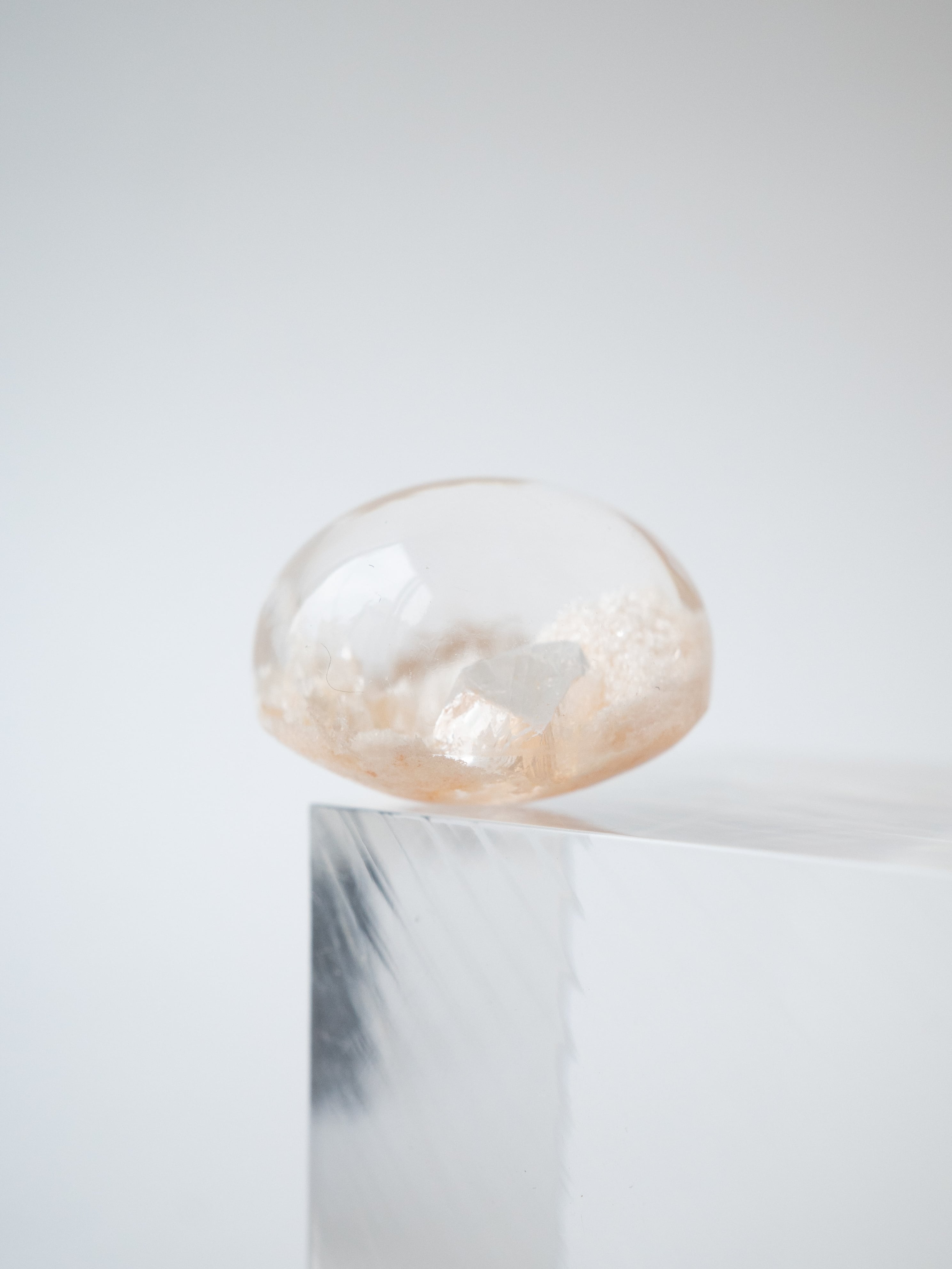 This particular piece is a penetration-type specimen that contains a crystal within the quartz. The internal crystal creates depth and structure, forming a quiet landscape that seems to have captured a moment in time.