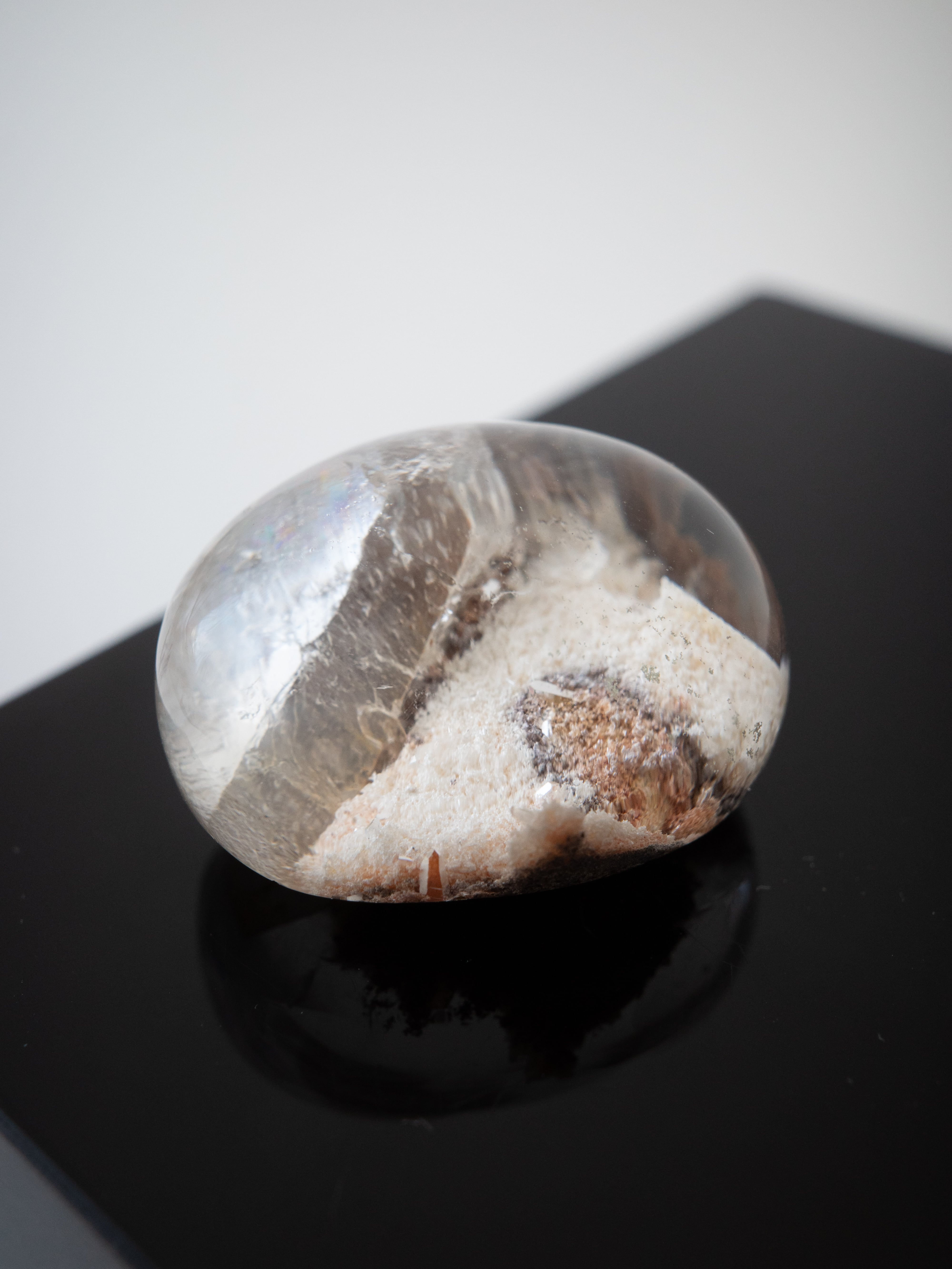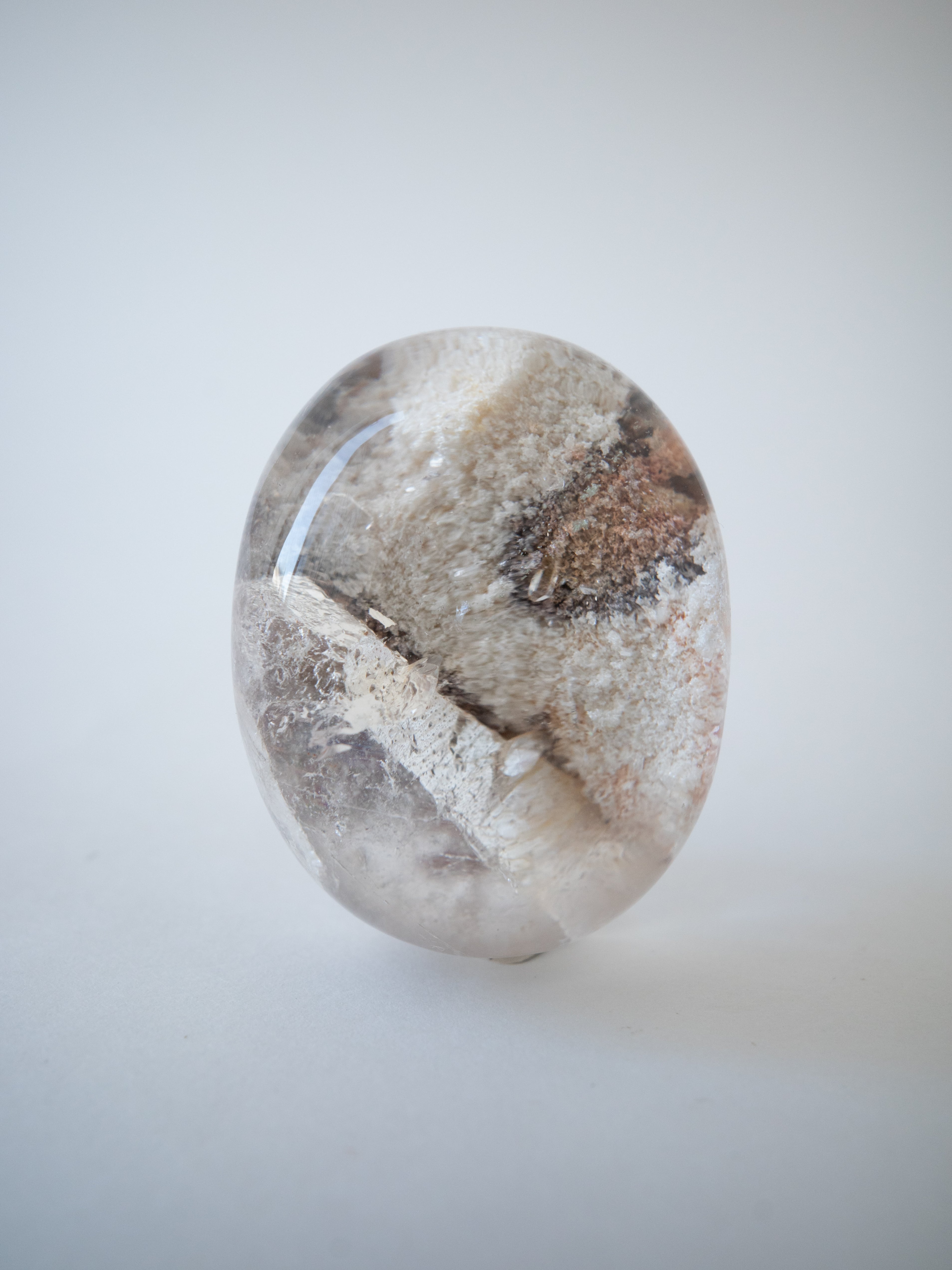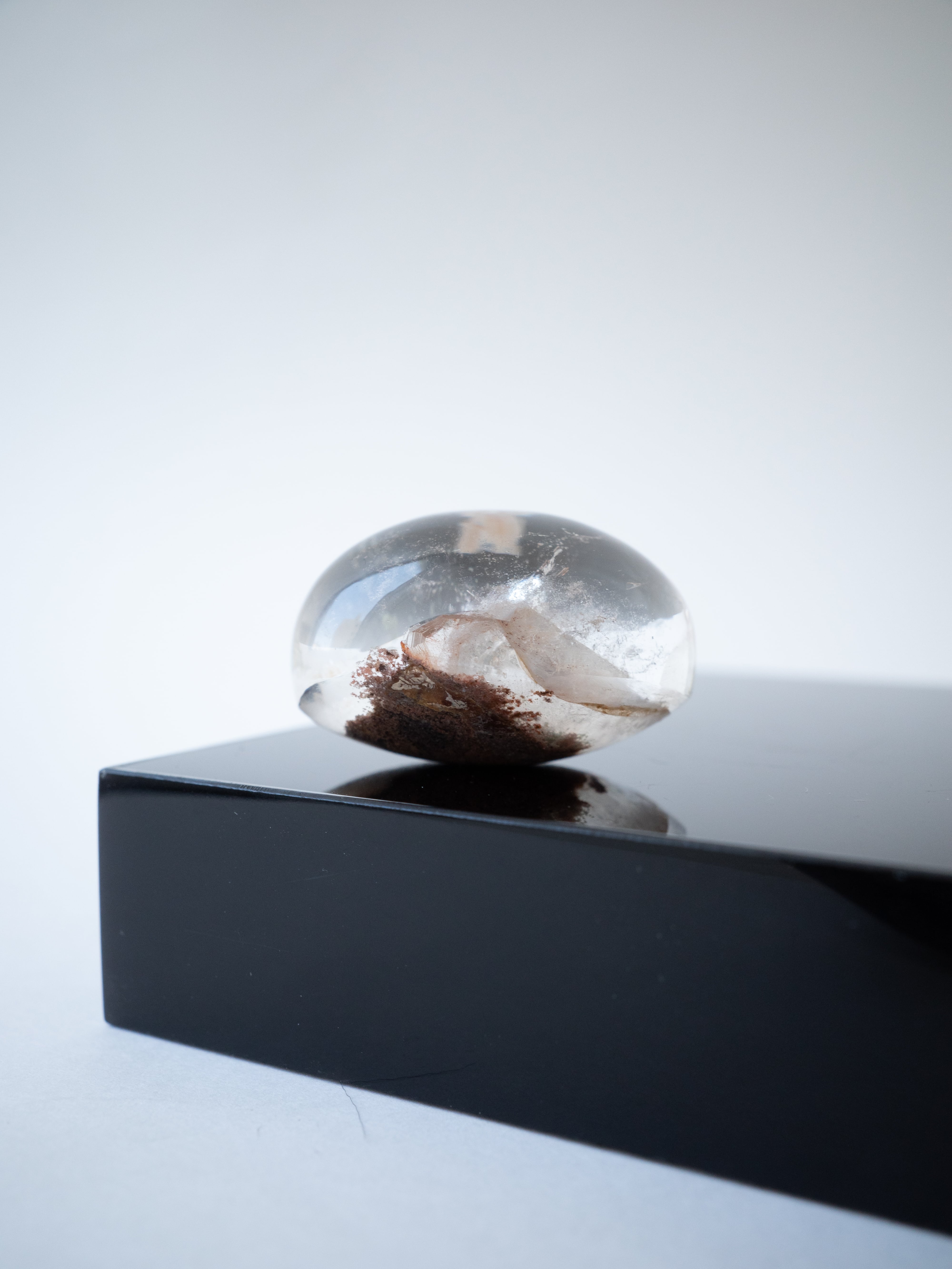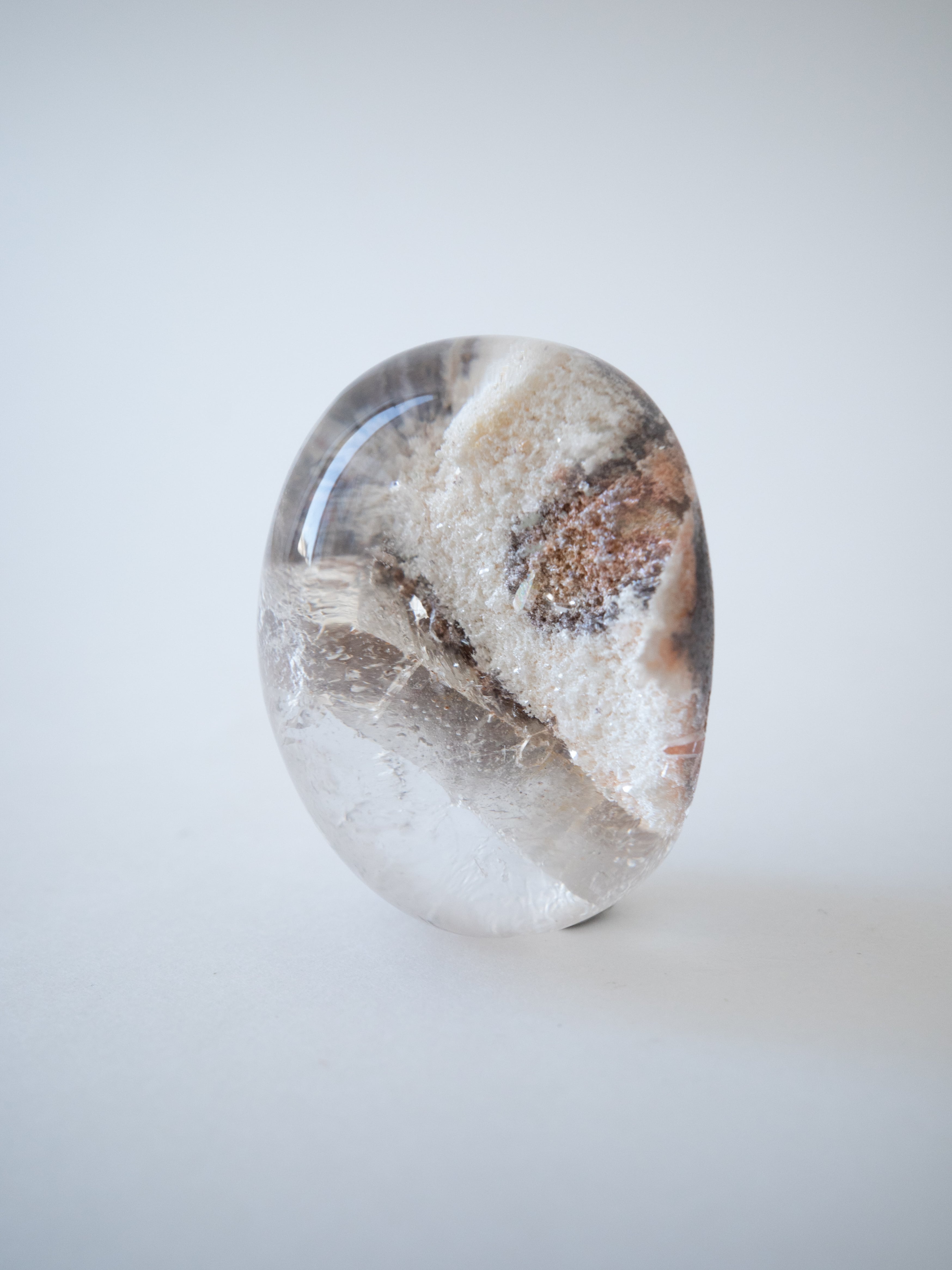 This particular piece is a penetration-type specimen that contains a crystal within the quartz. The internal crystal creates depth and structure, forming a quiet landscape that seems to have captured a moment in time.