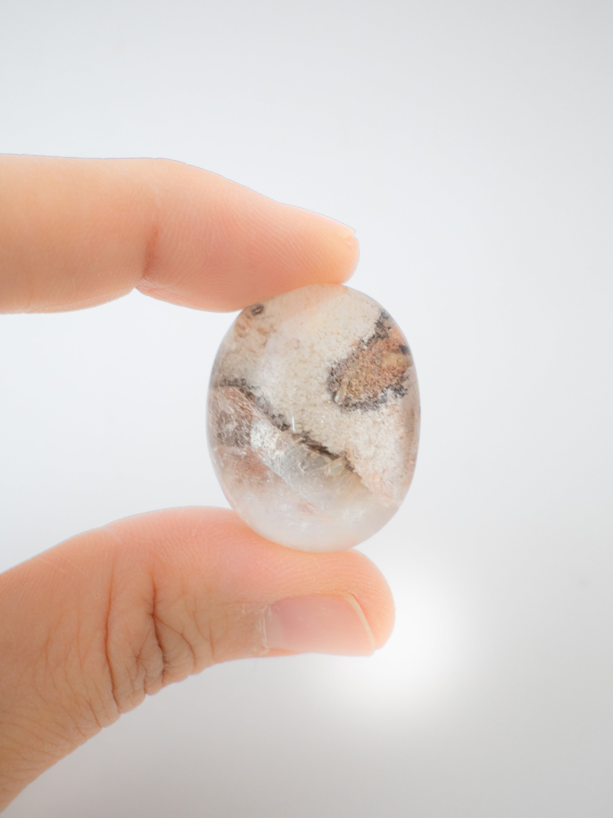 In Japan, This stone is called "Garden Quartz" because its inclusions resemble miniature landscapes, like a tiny garden within the stone. Each piece is unique, with no two inclusions forming the same pattern, allowing you to appreciate nature’s artwork within a small crystal. Internationally, this quartz is often called "Lodolite" meaning "mudstone," due to the appearance of its inclusions.