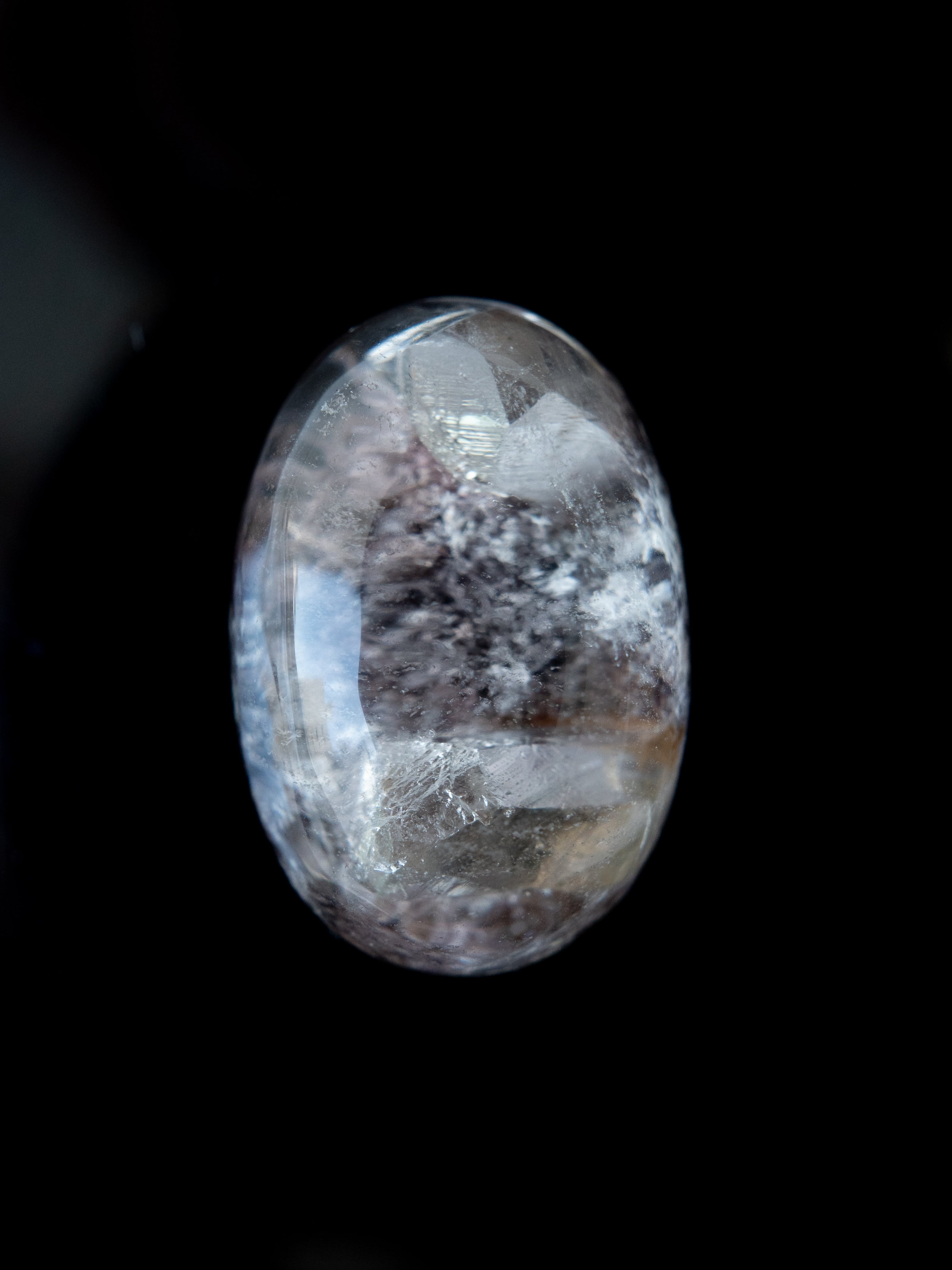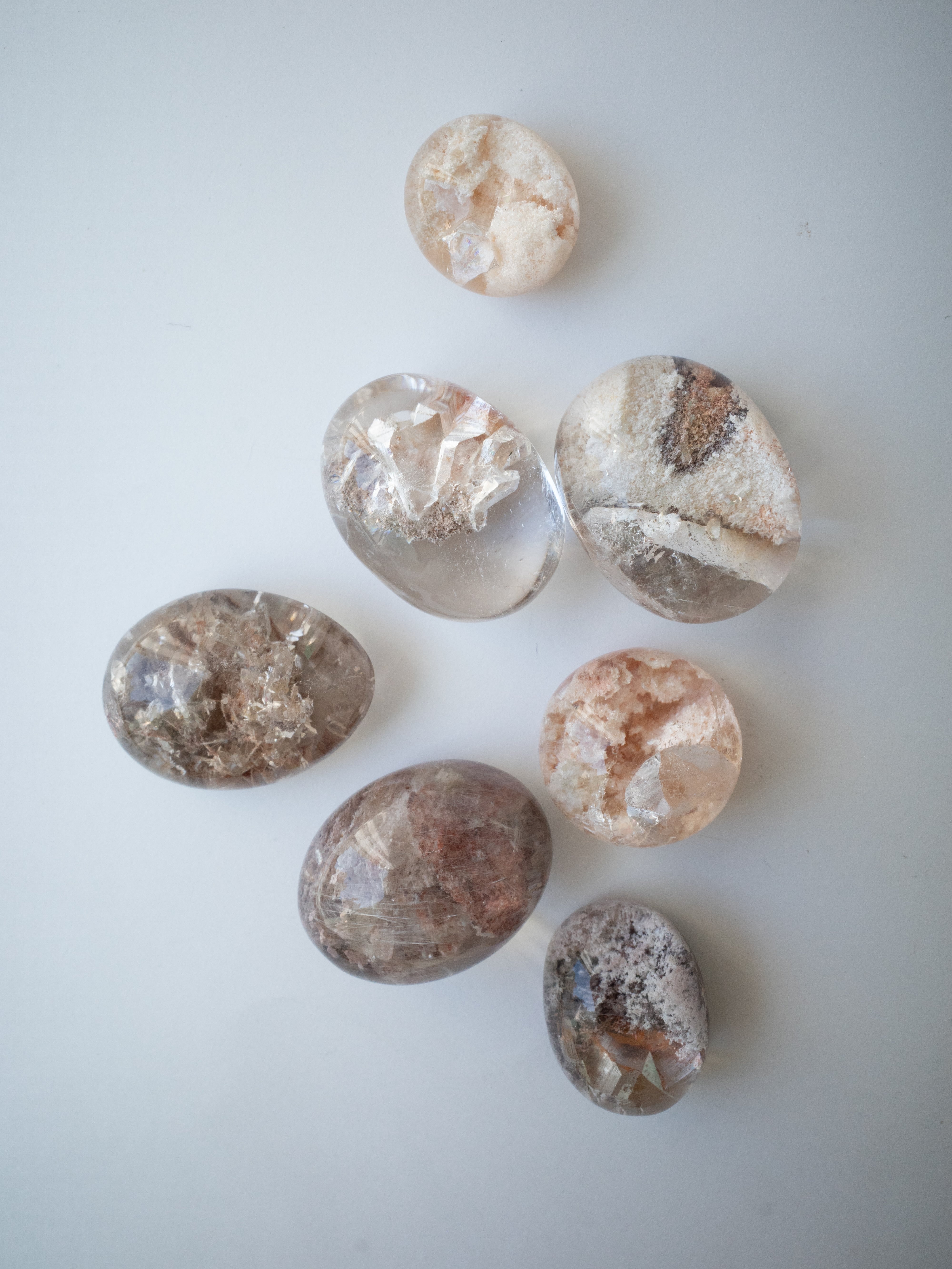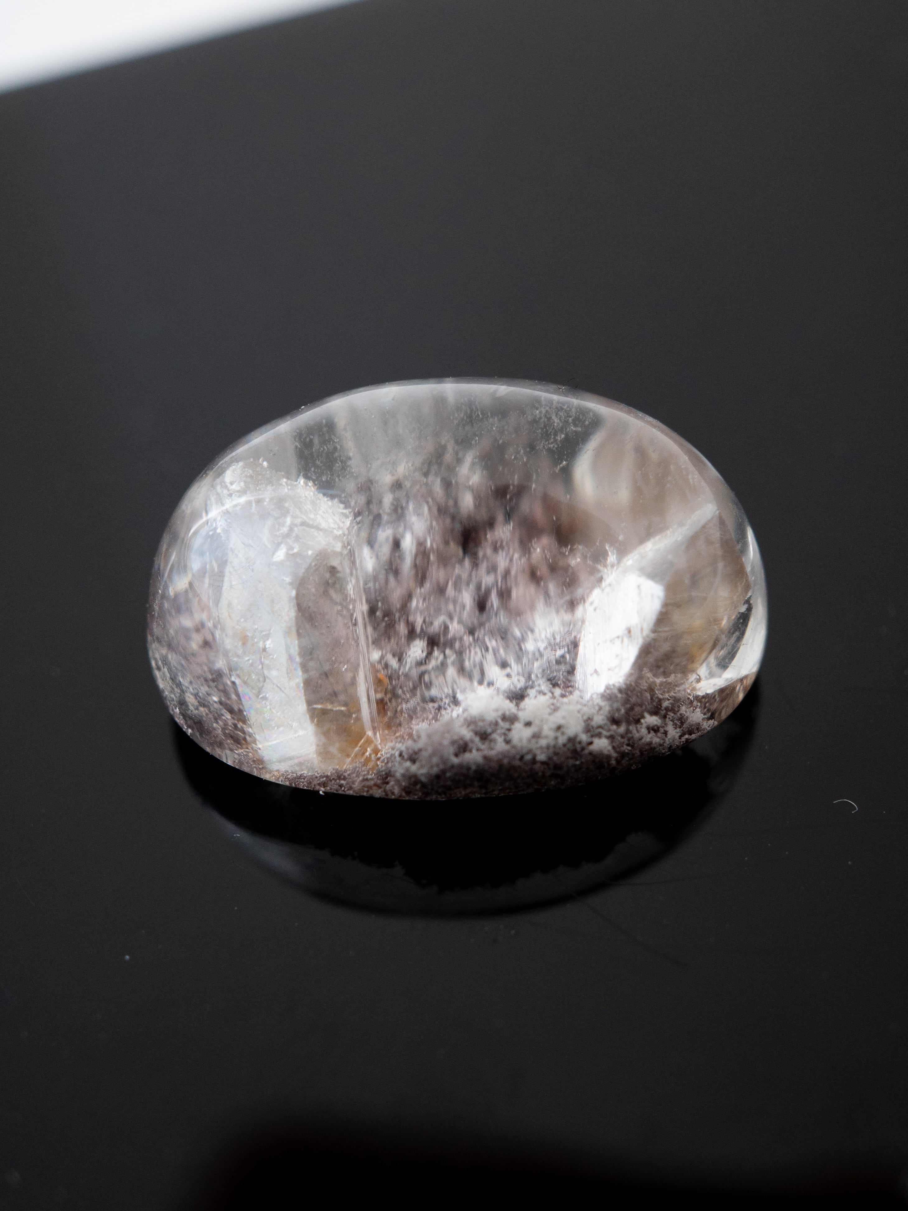 Many of these stones are cut into cabochons, positioning the inclusions near the base to maximize the magnifying effect of the quartz. Some pieces may have rough natural surfaces on the back or have undergone filling treatments. Please check the final back-side photo before purchasing.