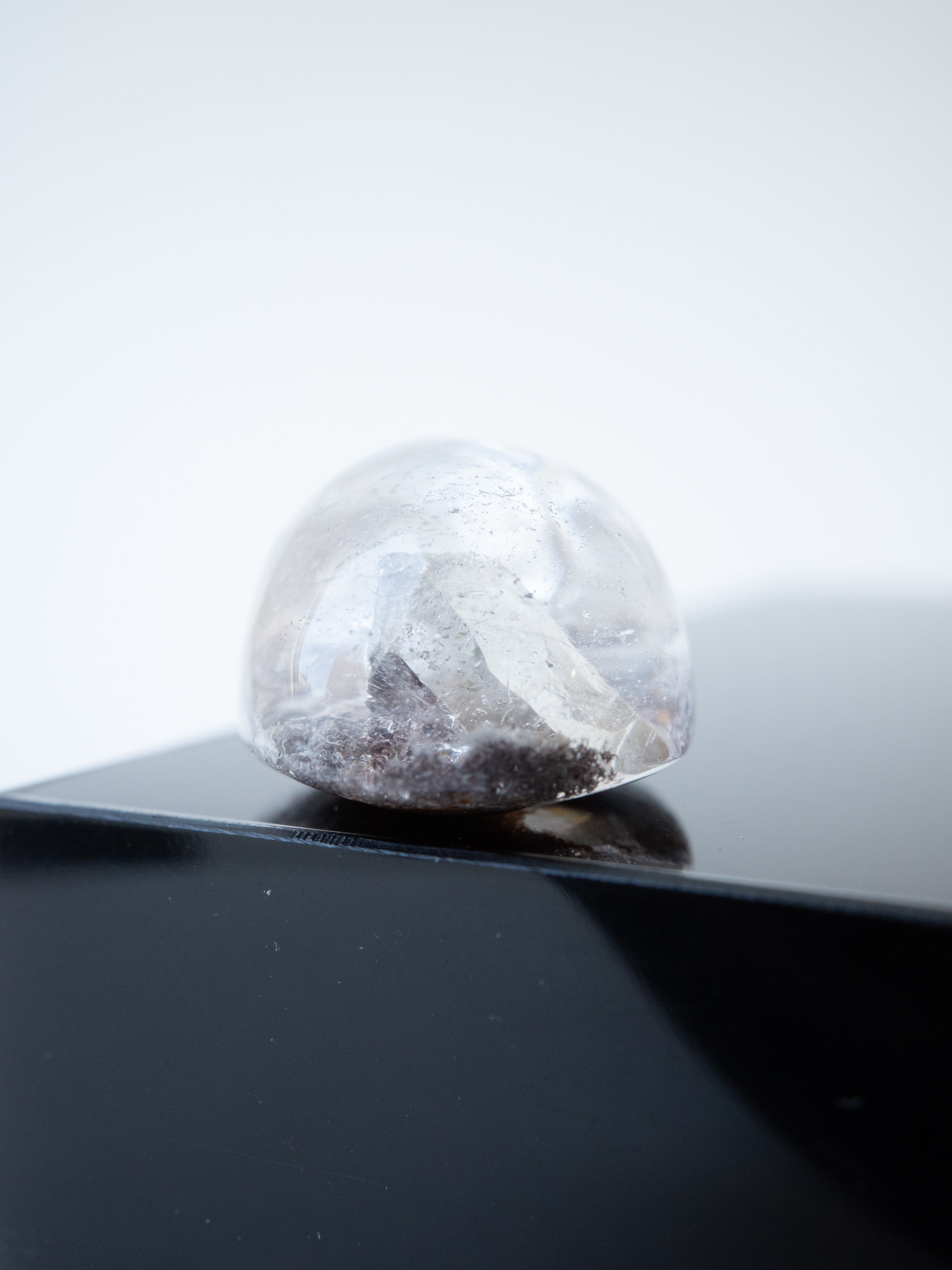 This particular piece is a penetration-type specimen that contains a crystal within the quartz. The internal crystal creates depth and structure, forming a quiet landscape that seems to have captured a moment in time.