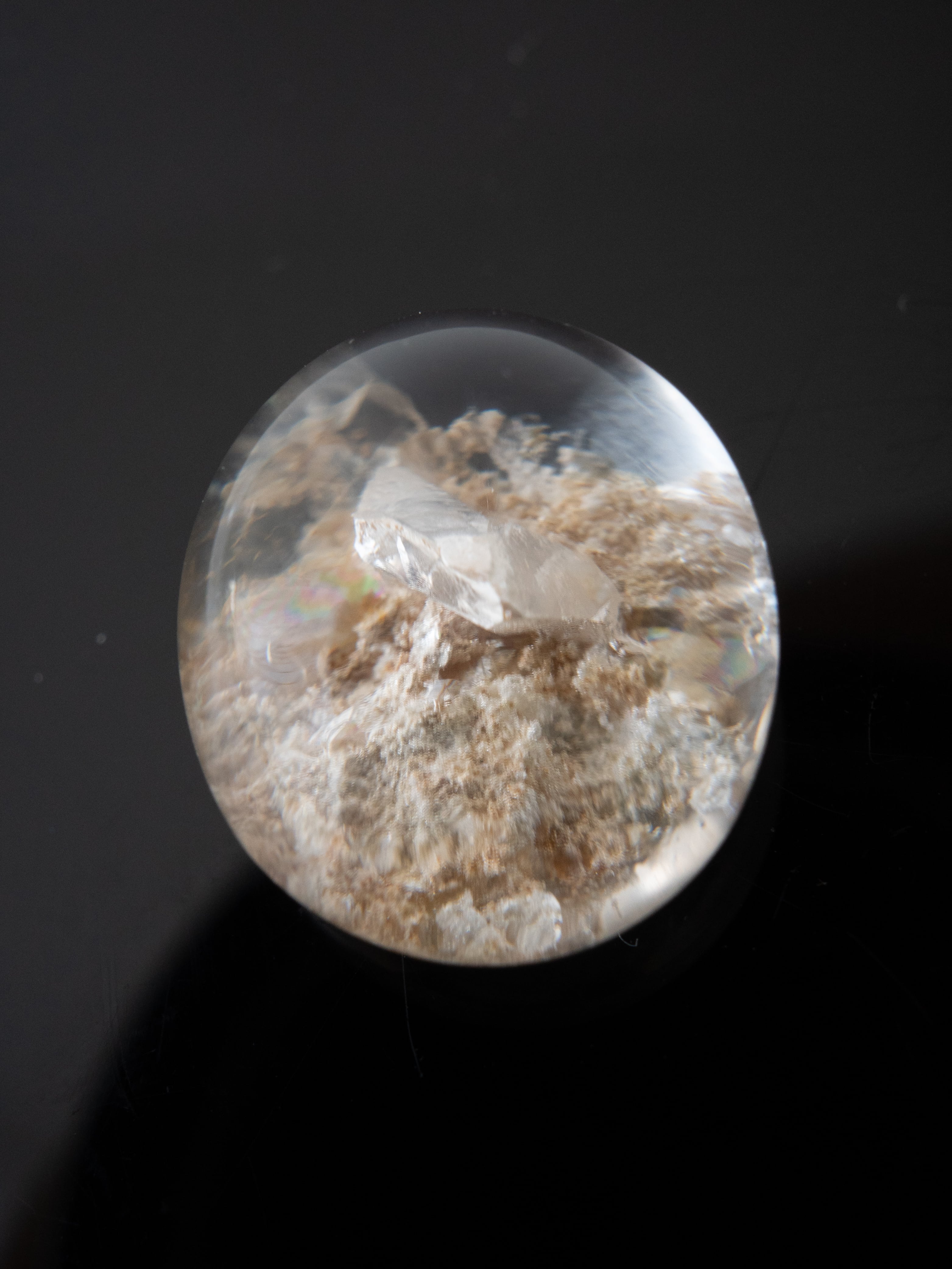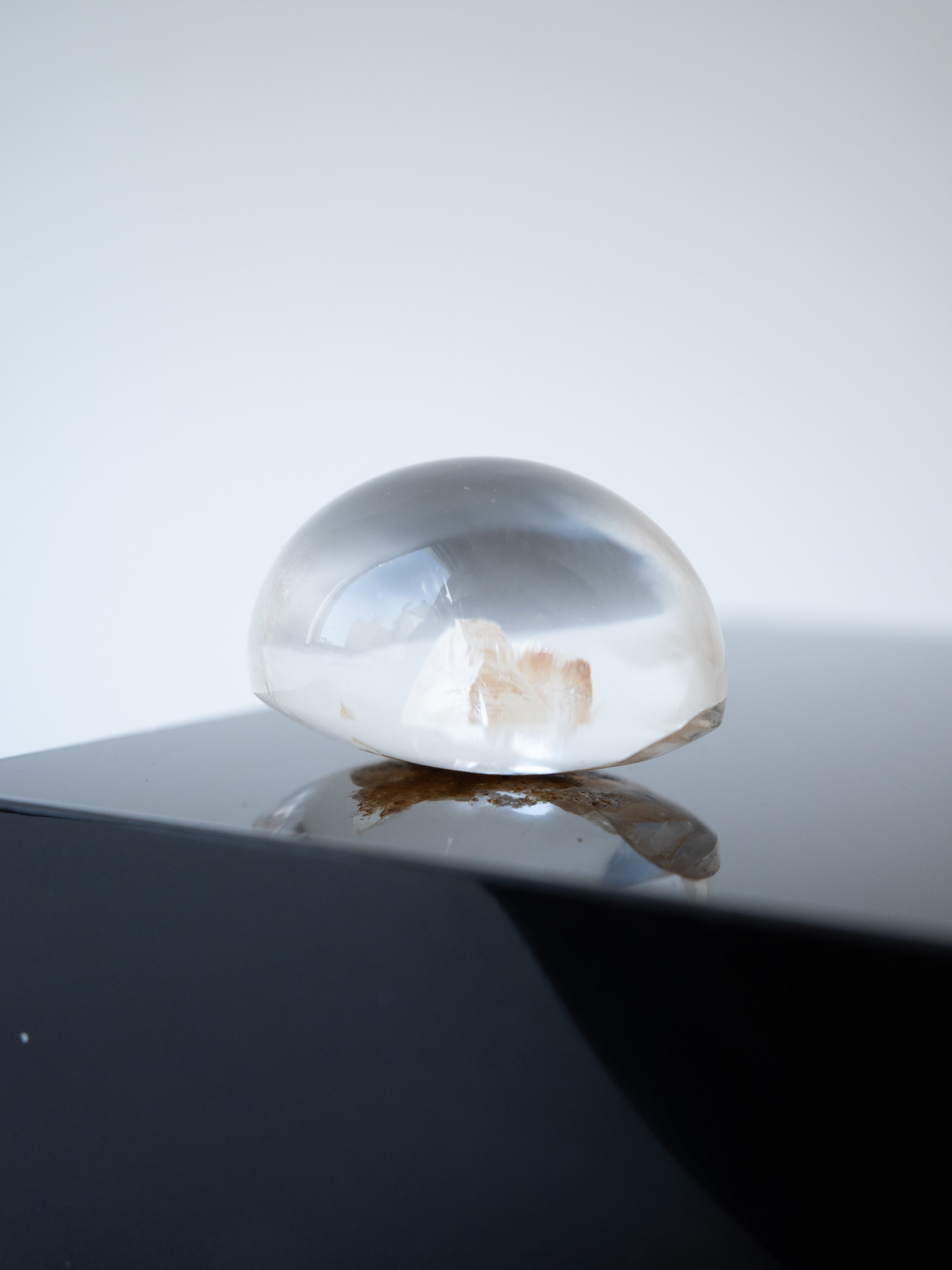 This particular piece is a penetration-type specimen that contains a crystal within the quartz. The internal crystal creates depth and structure, forming a quiet landscape that seems to have captured a moment in time.
