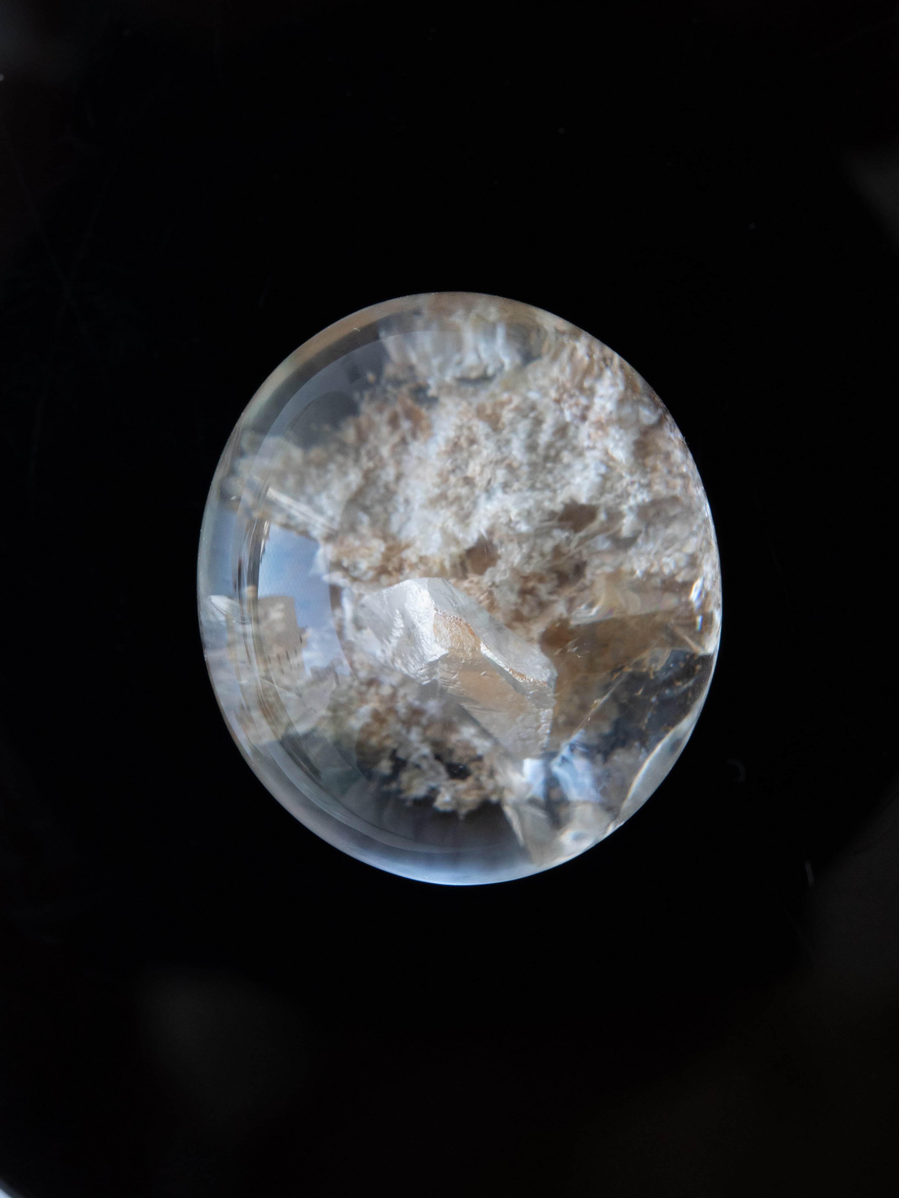 Many of these stones are cut into cabochons, positioning the inclusions near the base to maximize the magnifying effect of the quartz. Some pieces may have rough natural surfaces on the back or have undergone filling treatments. Please check the final back-side photo before purchasing.