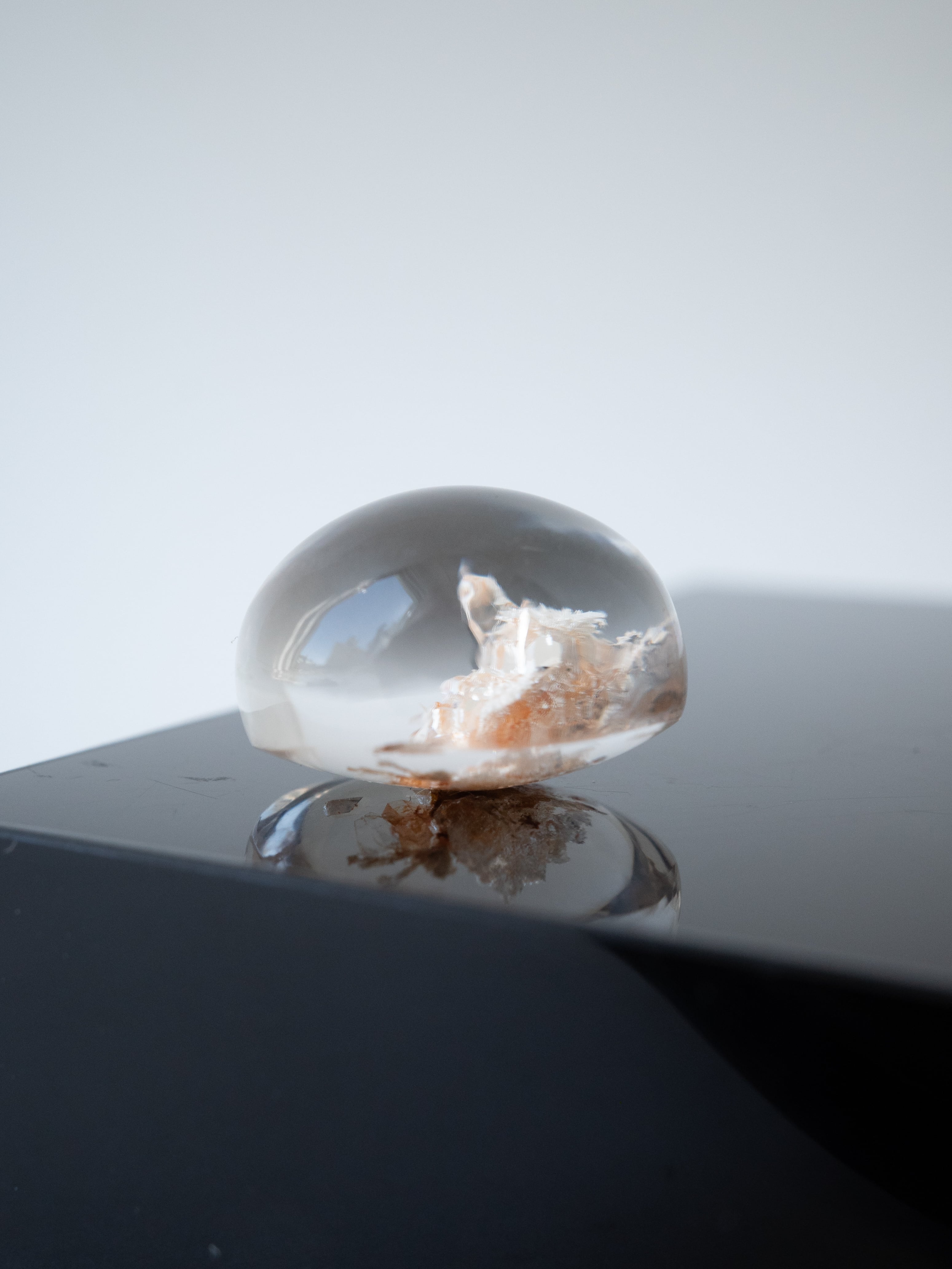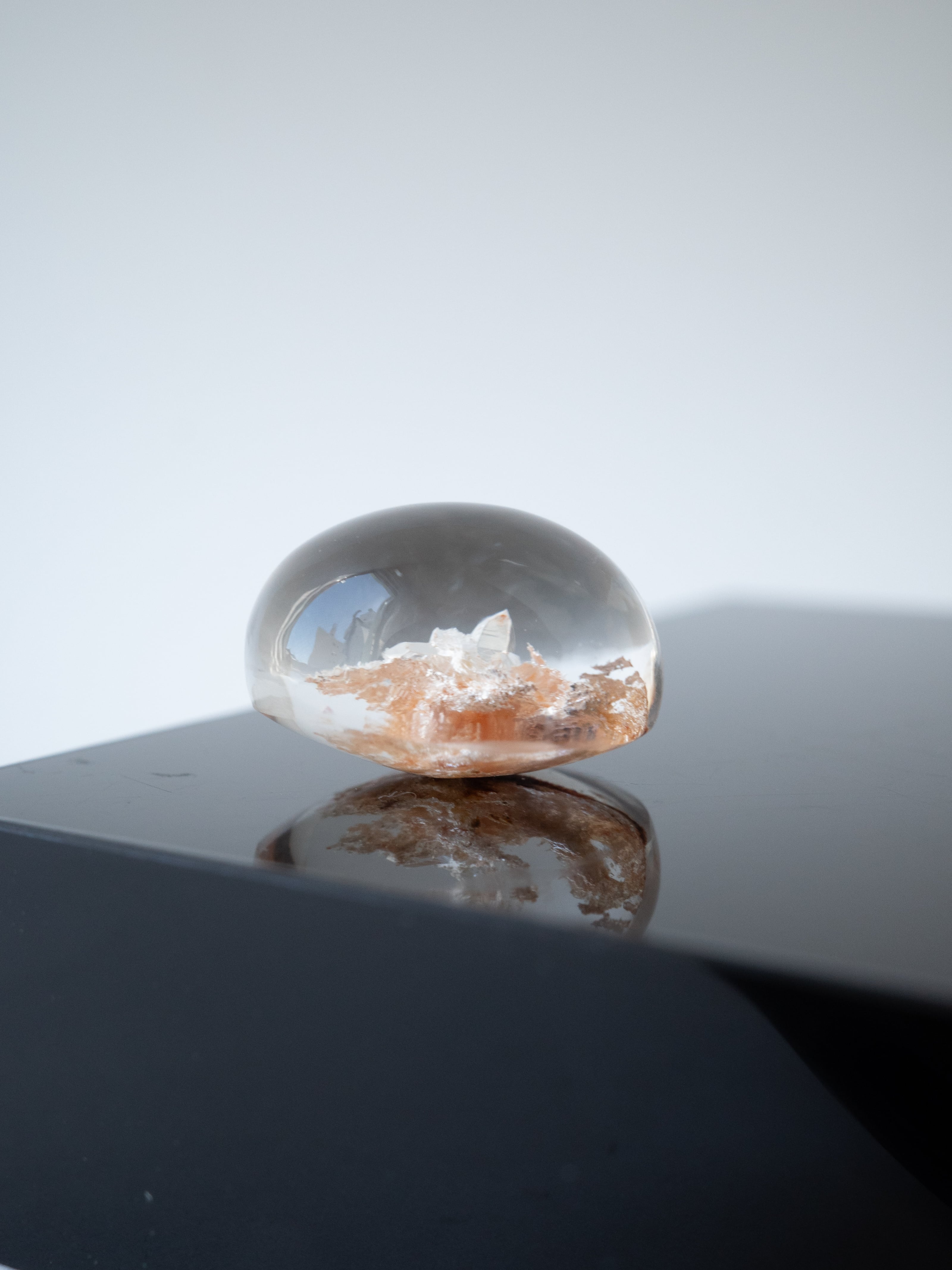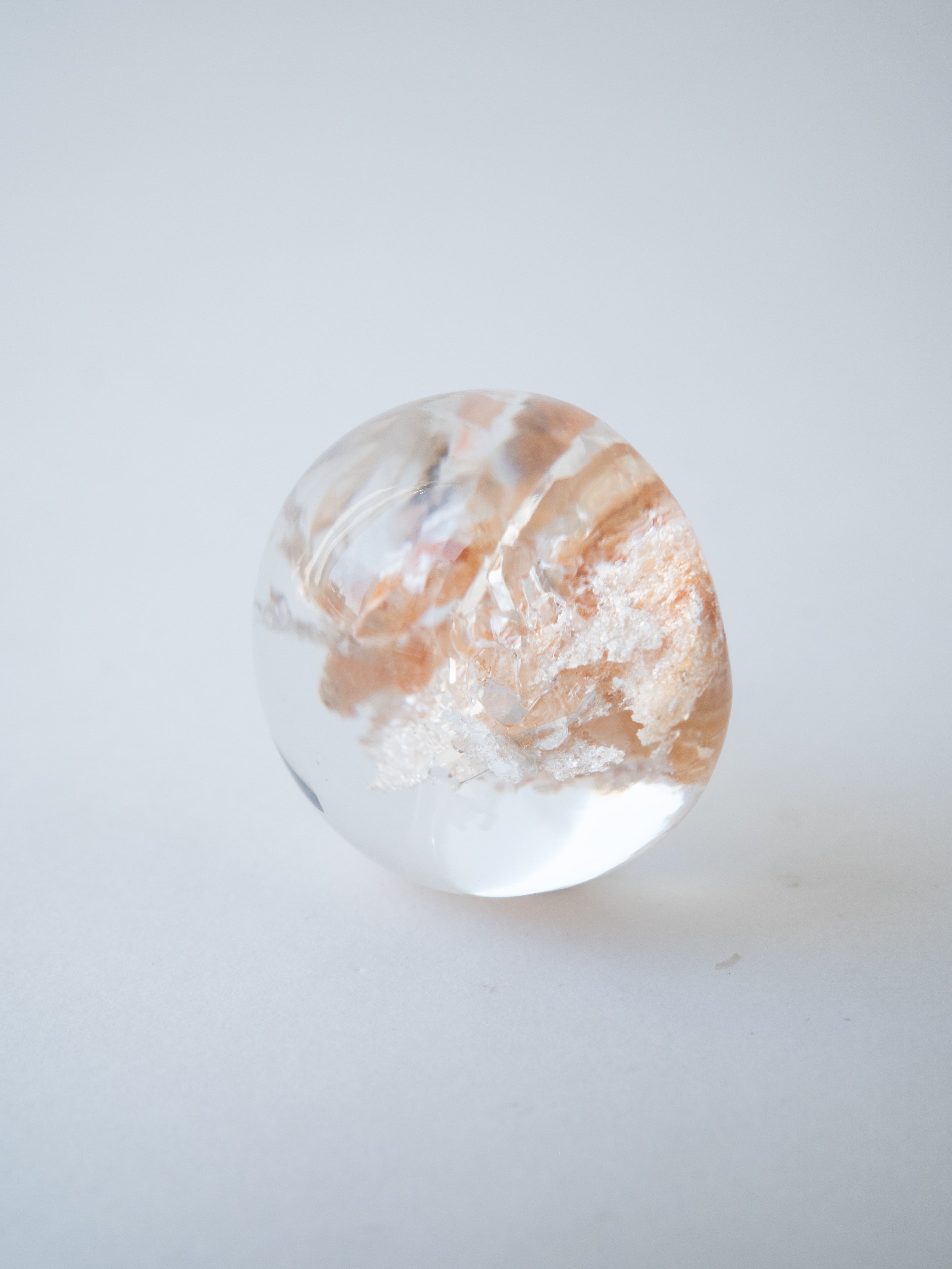 This particular piece is a penetration-type specimen that contains a crystal within the quartz. The internal crystal creates depth and structure, forming a quiet landscape that seems to have captured a moment in time.