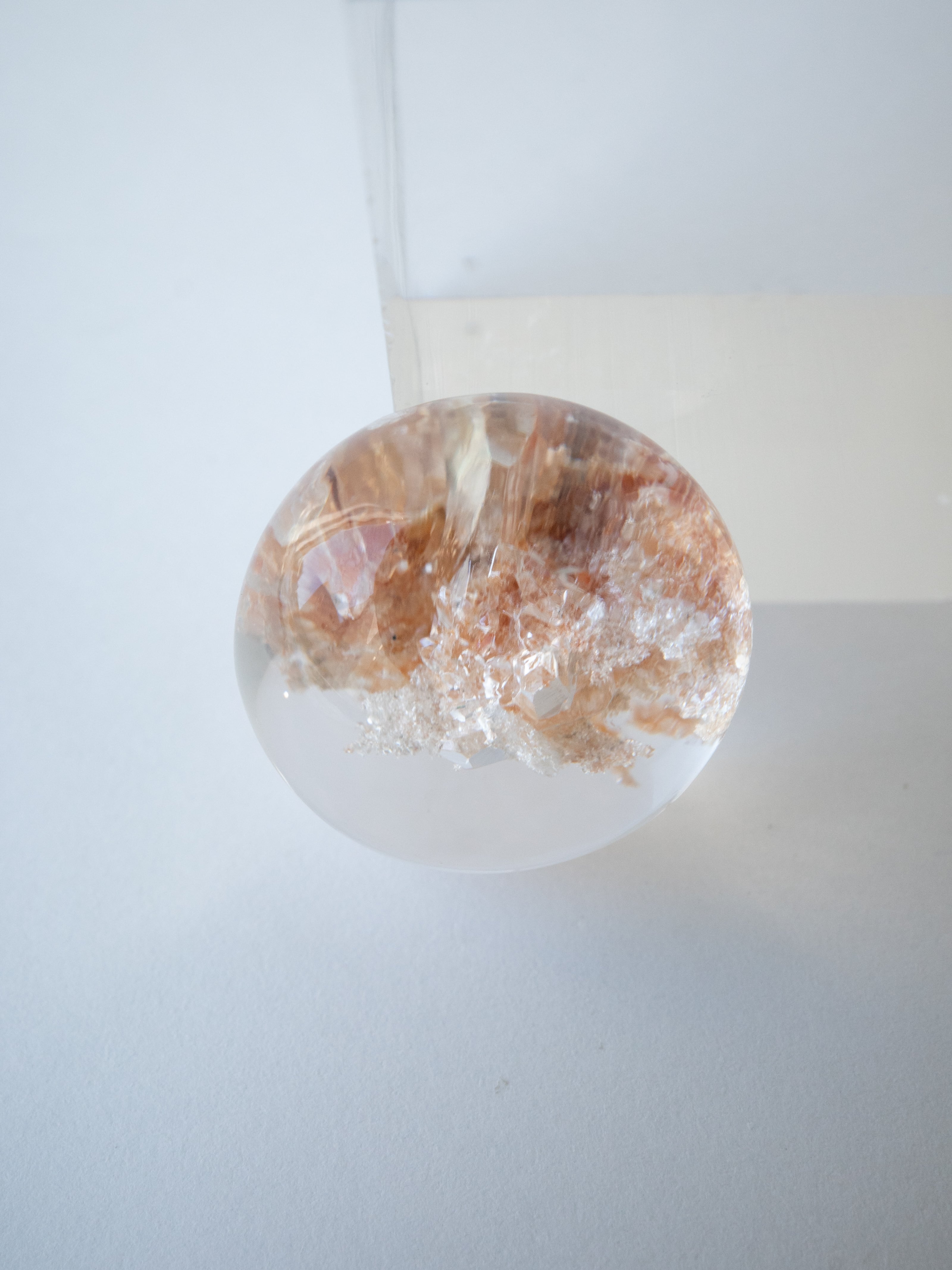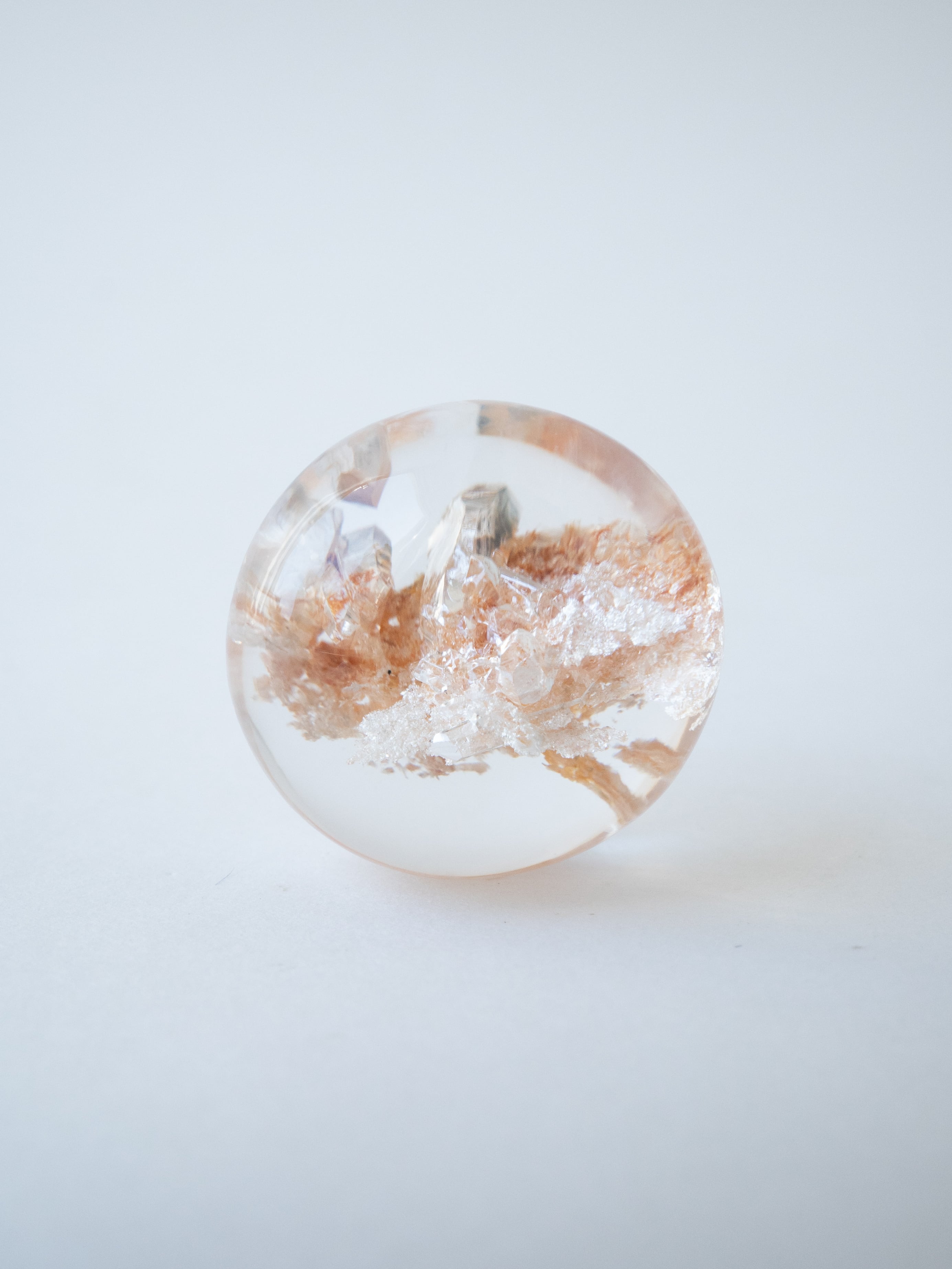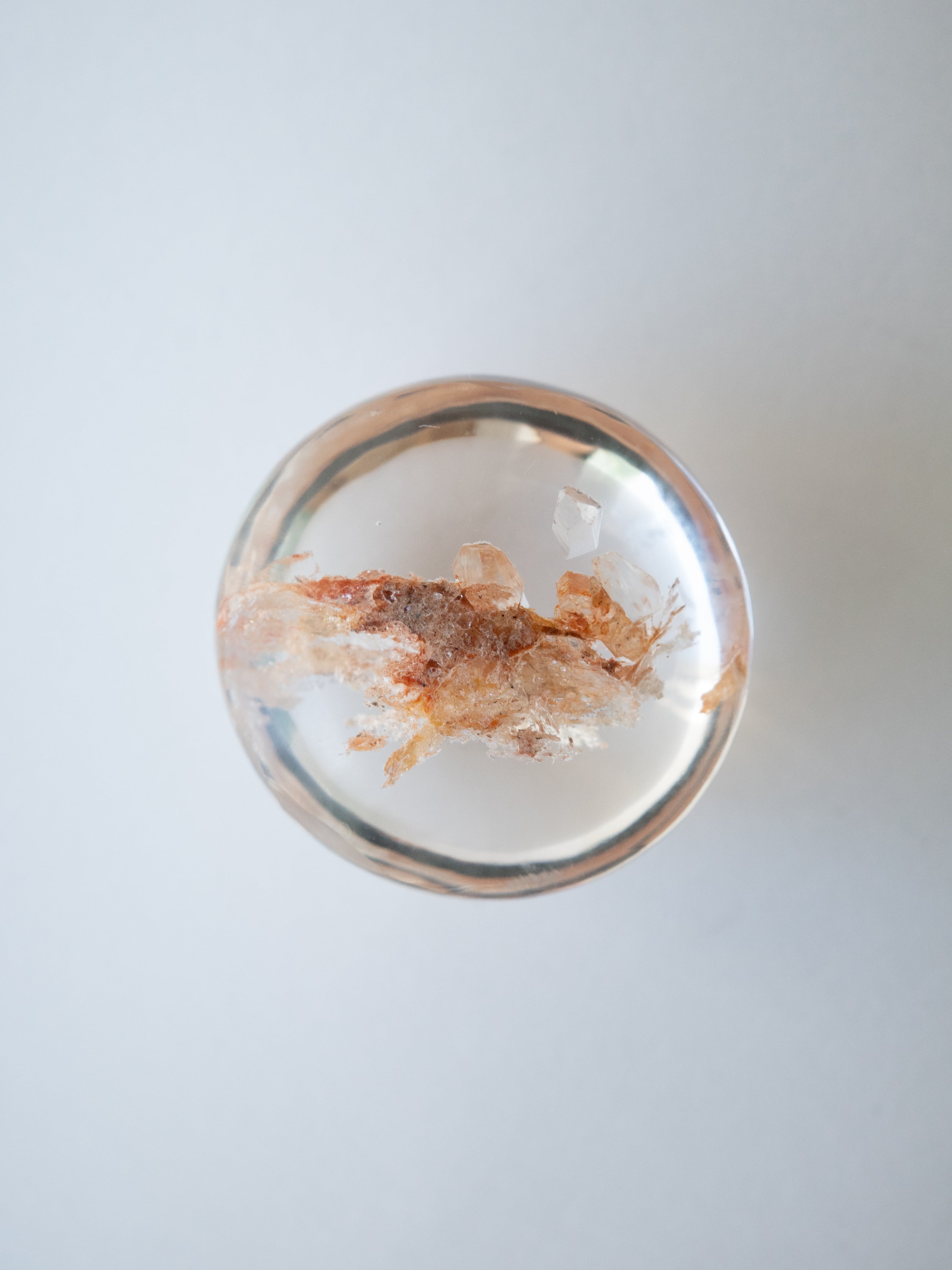This particular piece is a penetration-type specimen that contains a crystal within the quartz. The internal crystal creates depth and structure, forming a quiet landscape that seems to have captured a moment in time.