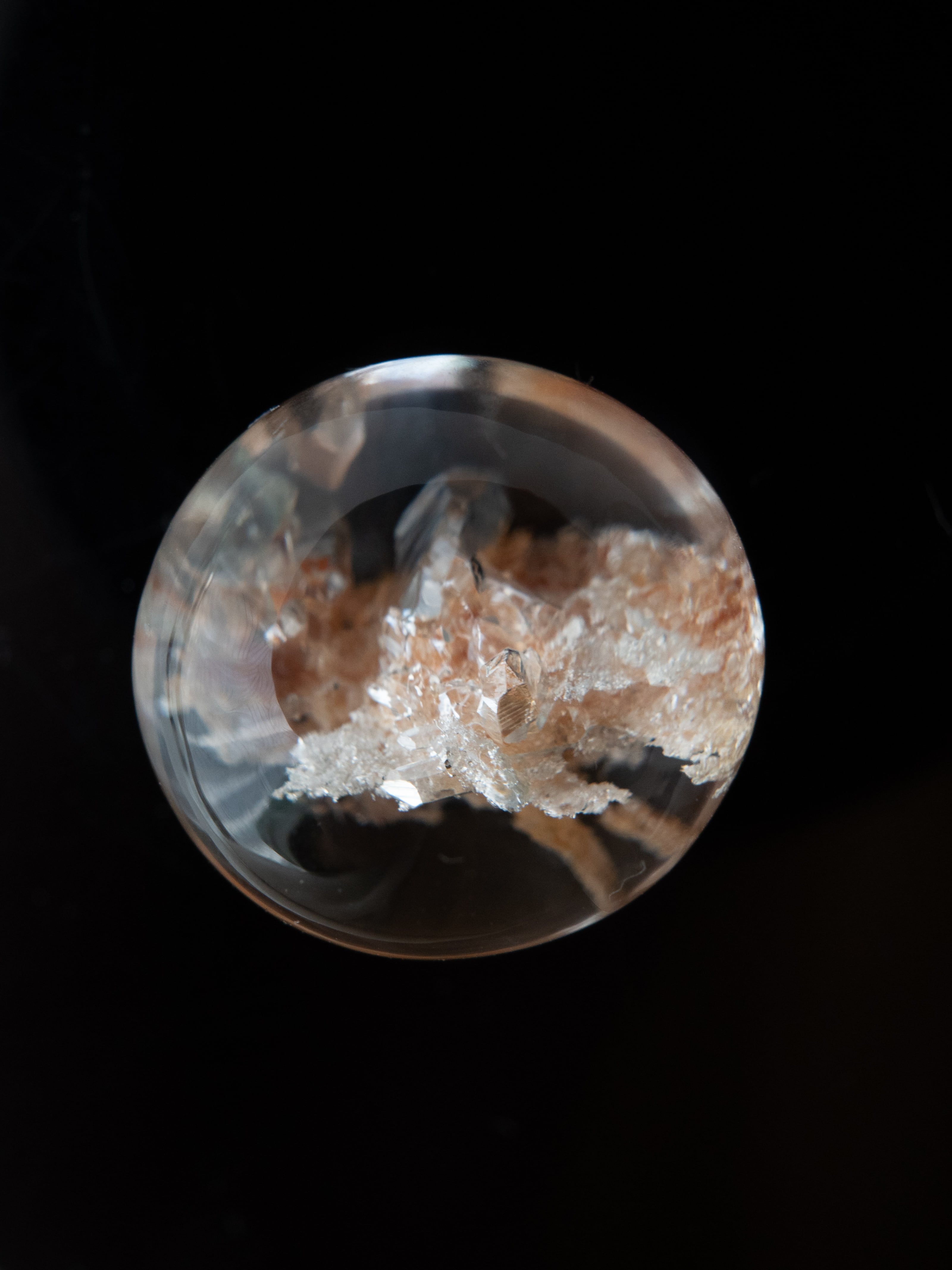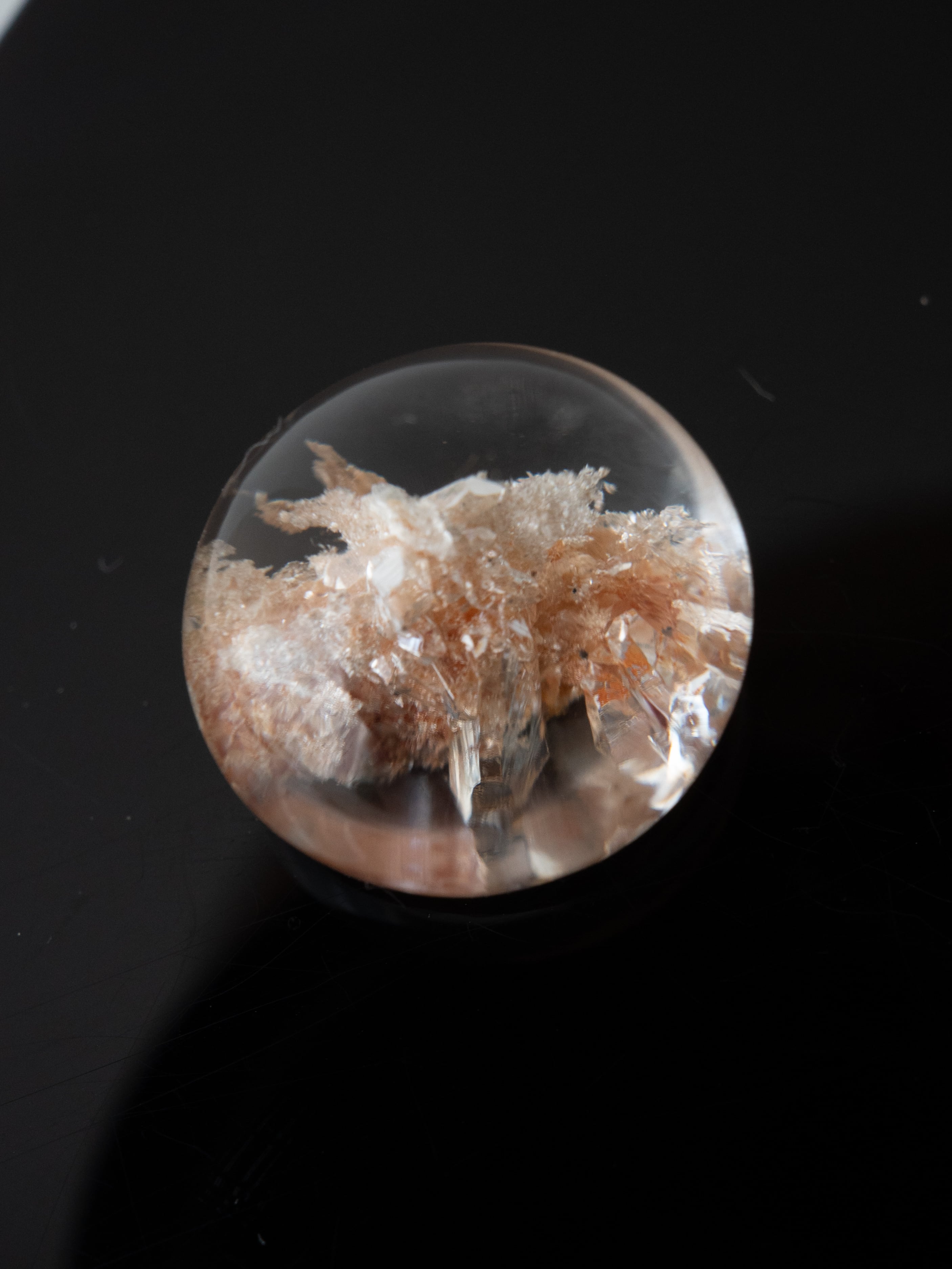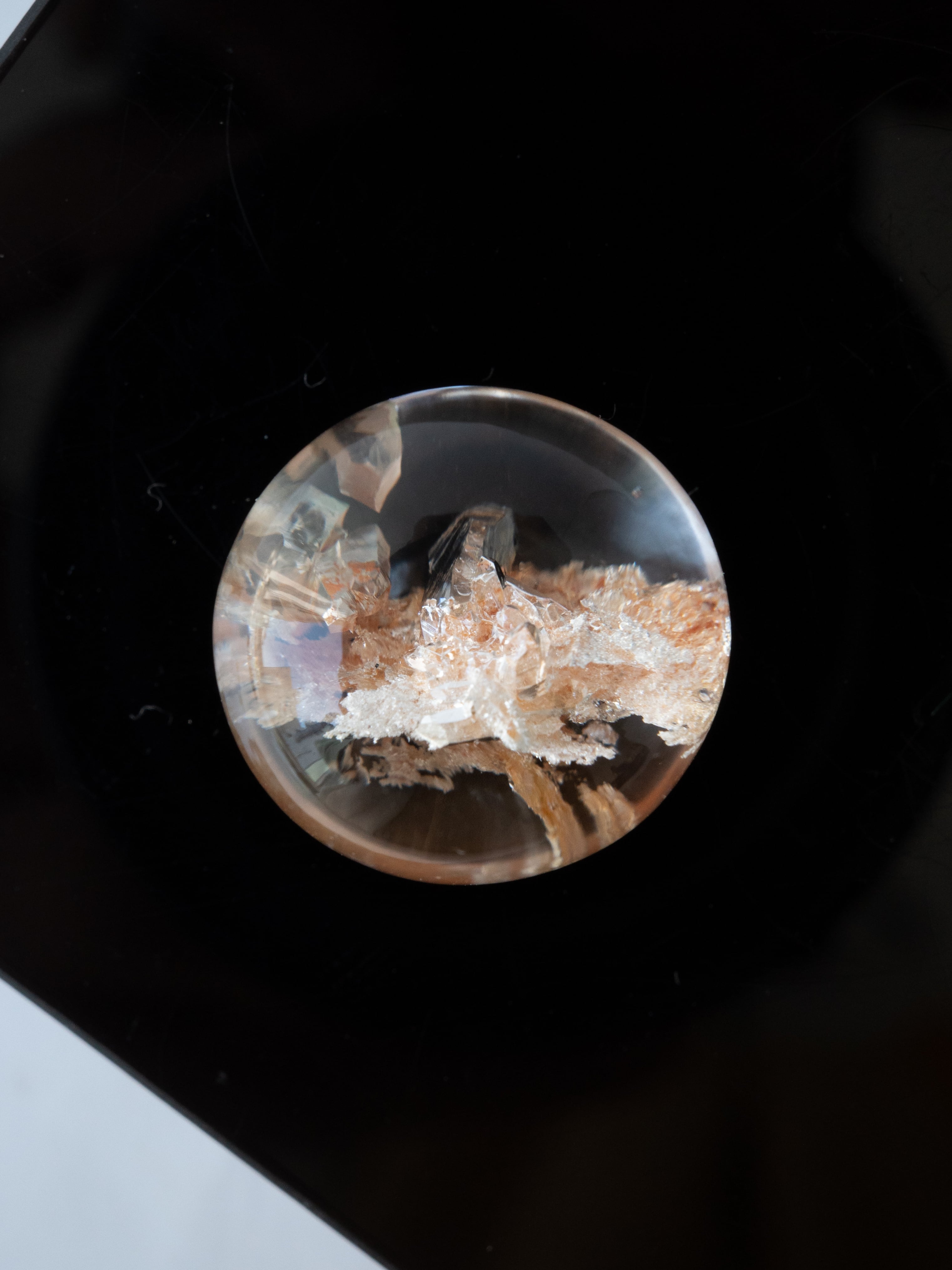 Many of these stones are cut into cabochons, positioning the inclusions near the base to maximize the magnifying effect of the quartz. Some pieces may have rough natural surfaces on the back or have undergone filling treatments. Please check the final back-side photo before purchasing.