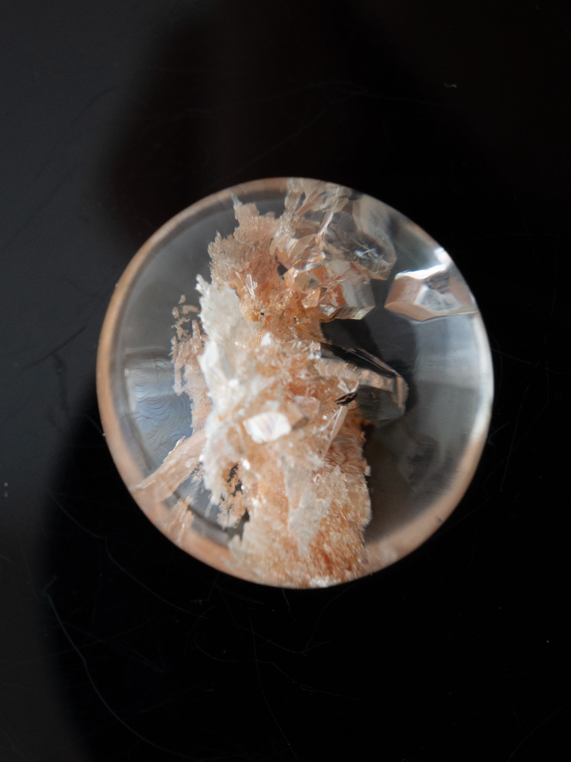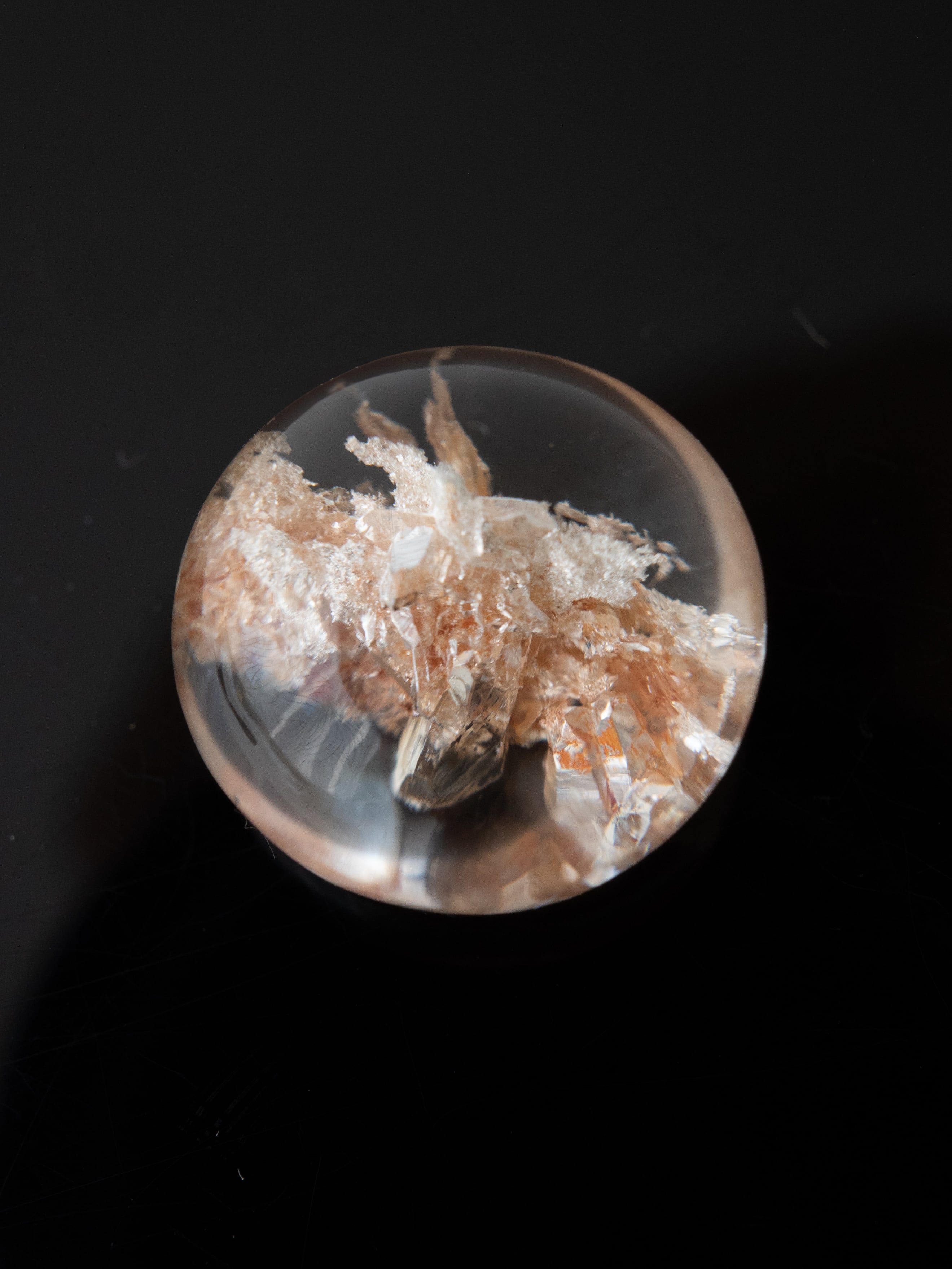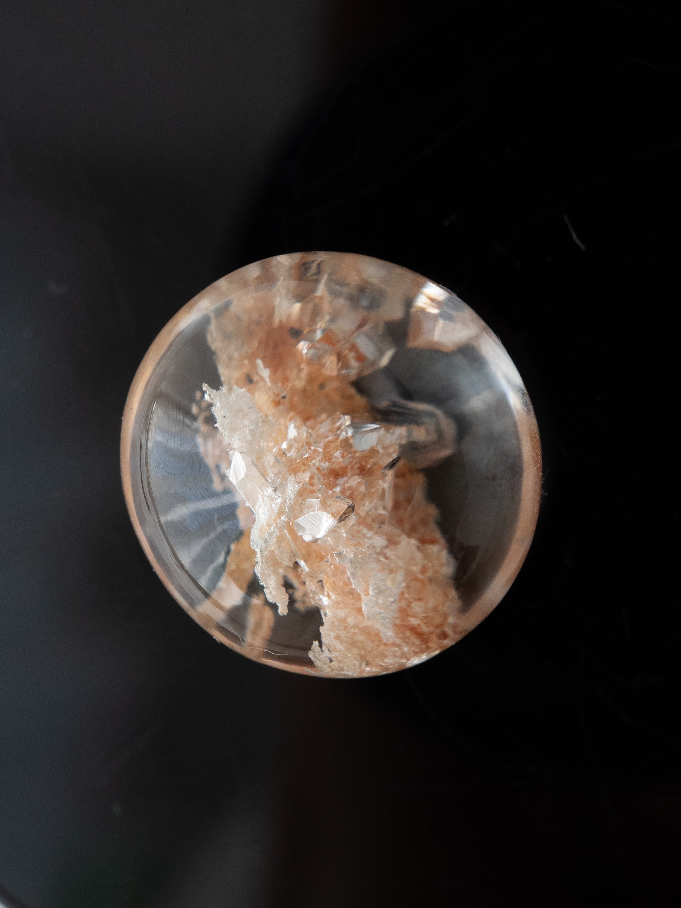 Many of these stones are cut into cabochons, positioning the inclusions near the base to maximize the magnifying effect of the quartz. Some pieces may have rough natural surfaces on the back or have undergone filling treatments. Please check the final back-side photo before purchasing.