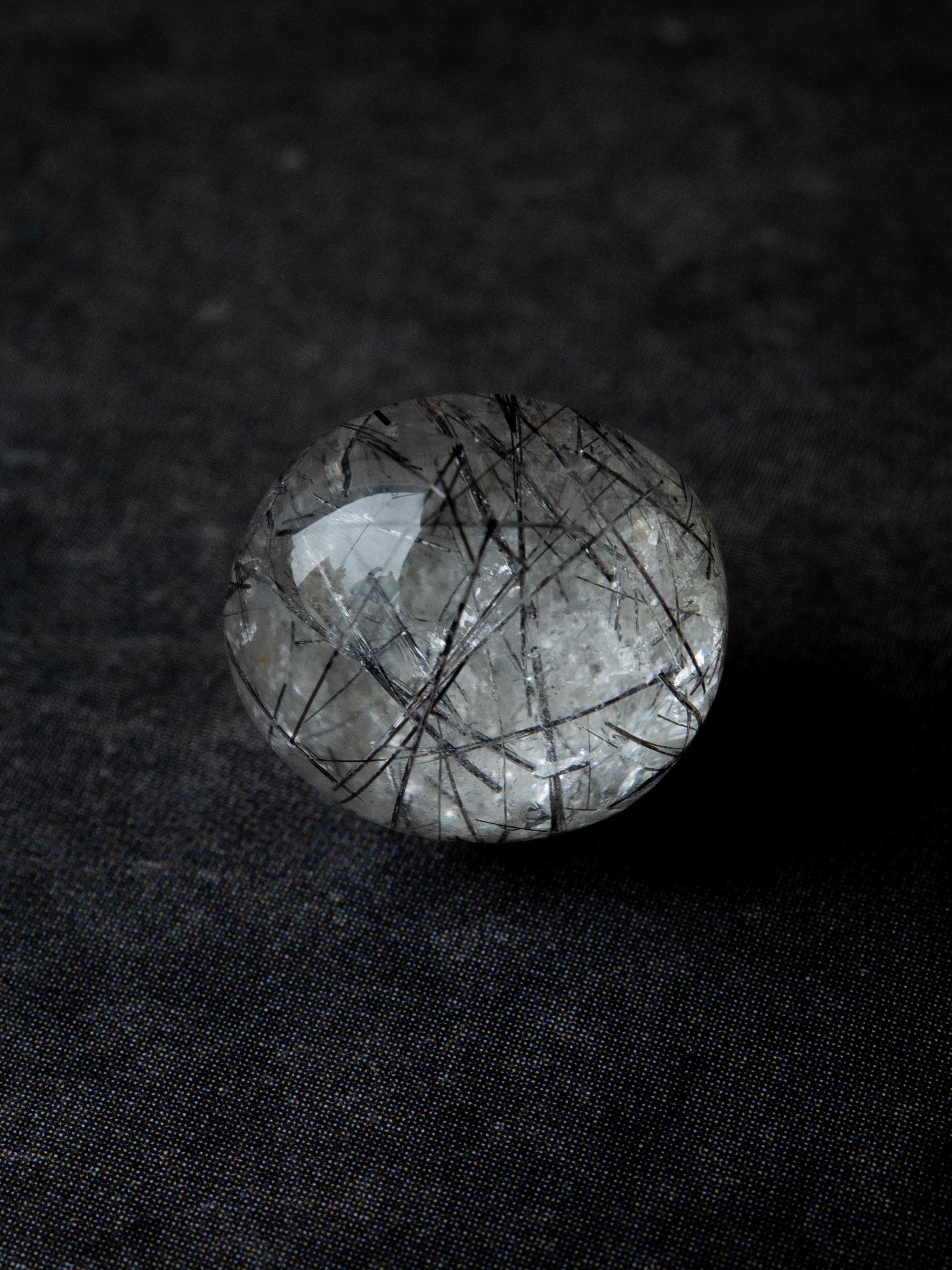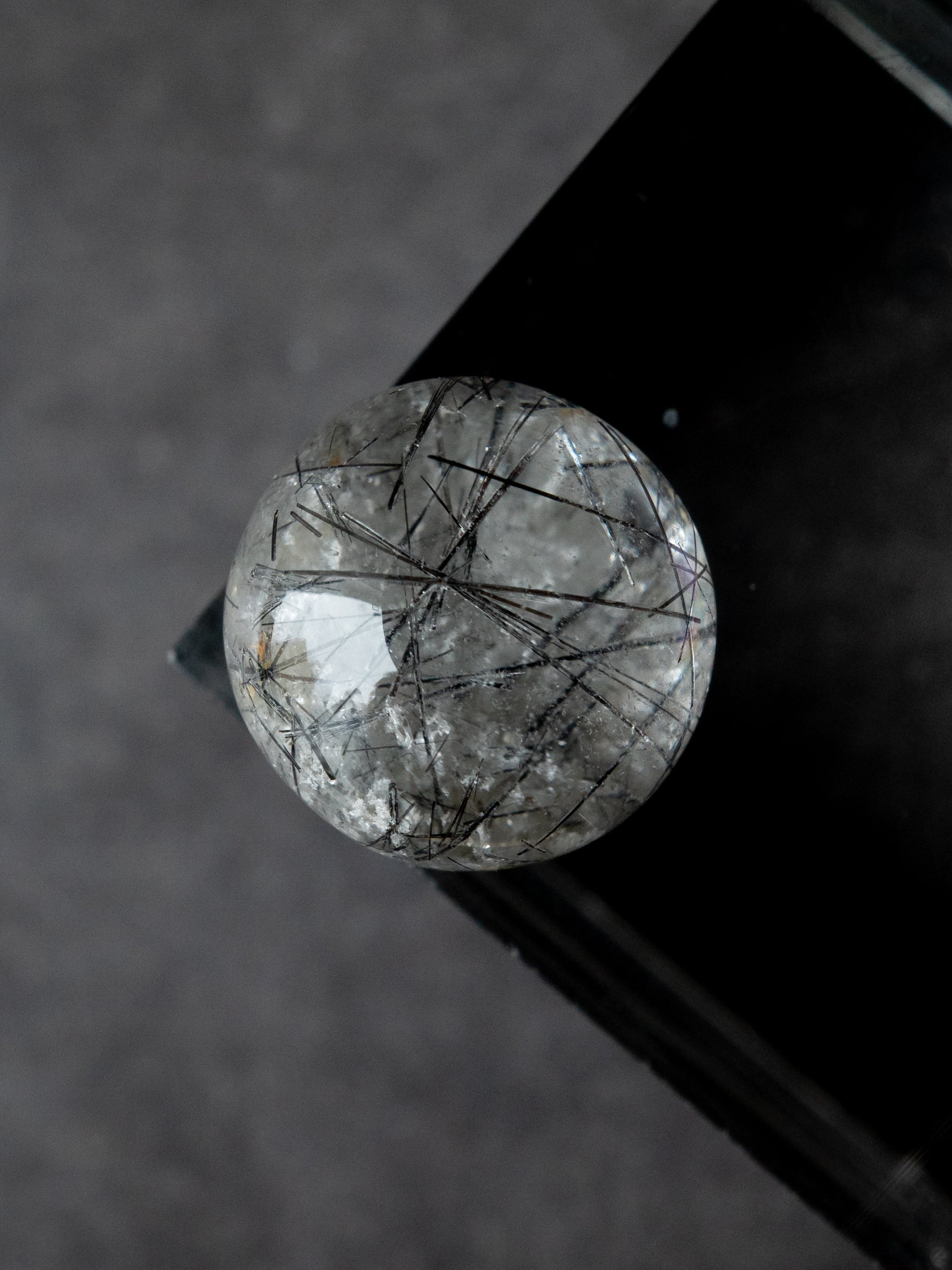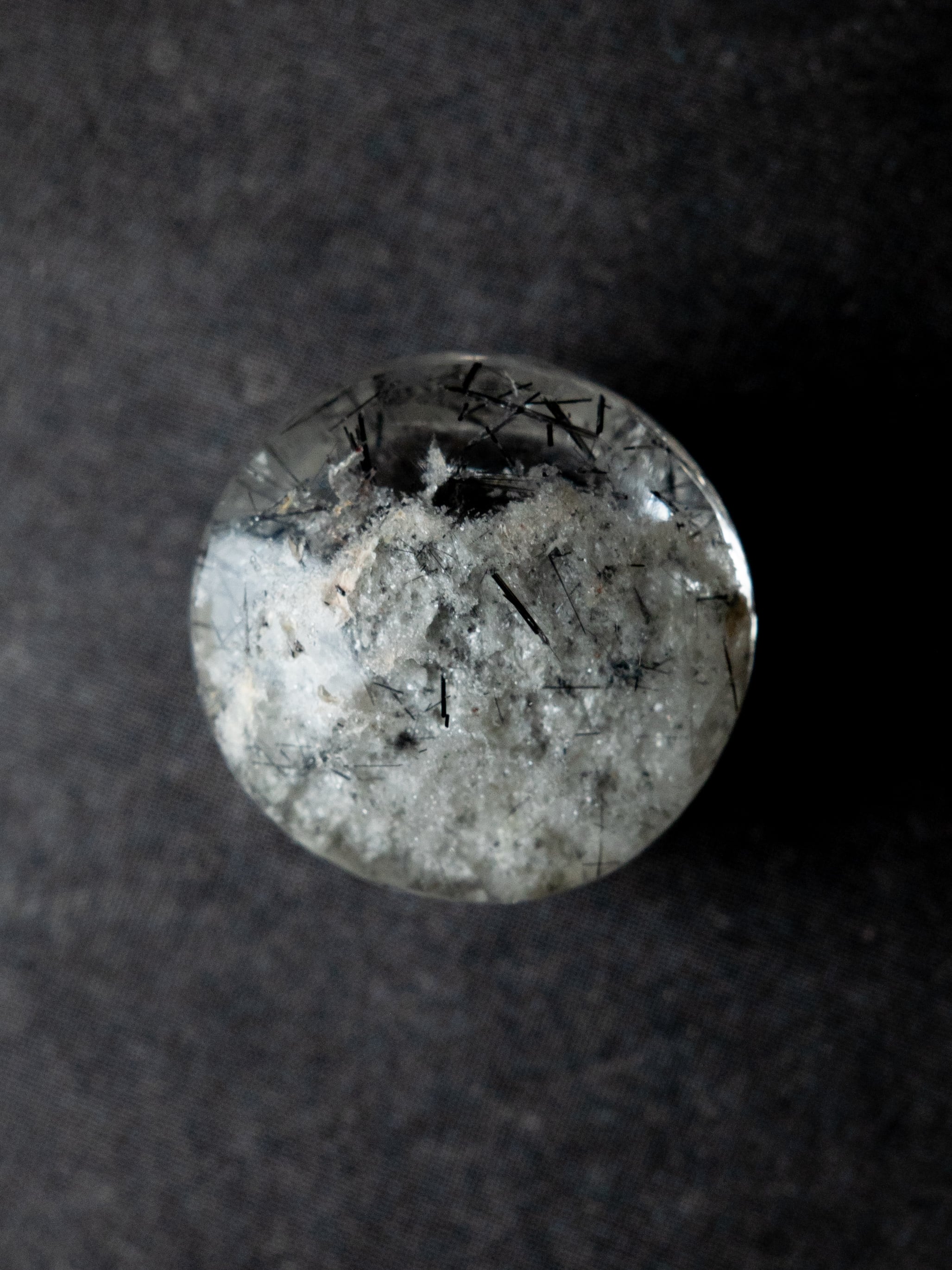 こちらはトルマリンを内包したタイプ。ブラックアンドホワイトのコンタラストがクールな印象のルースです。