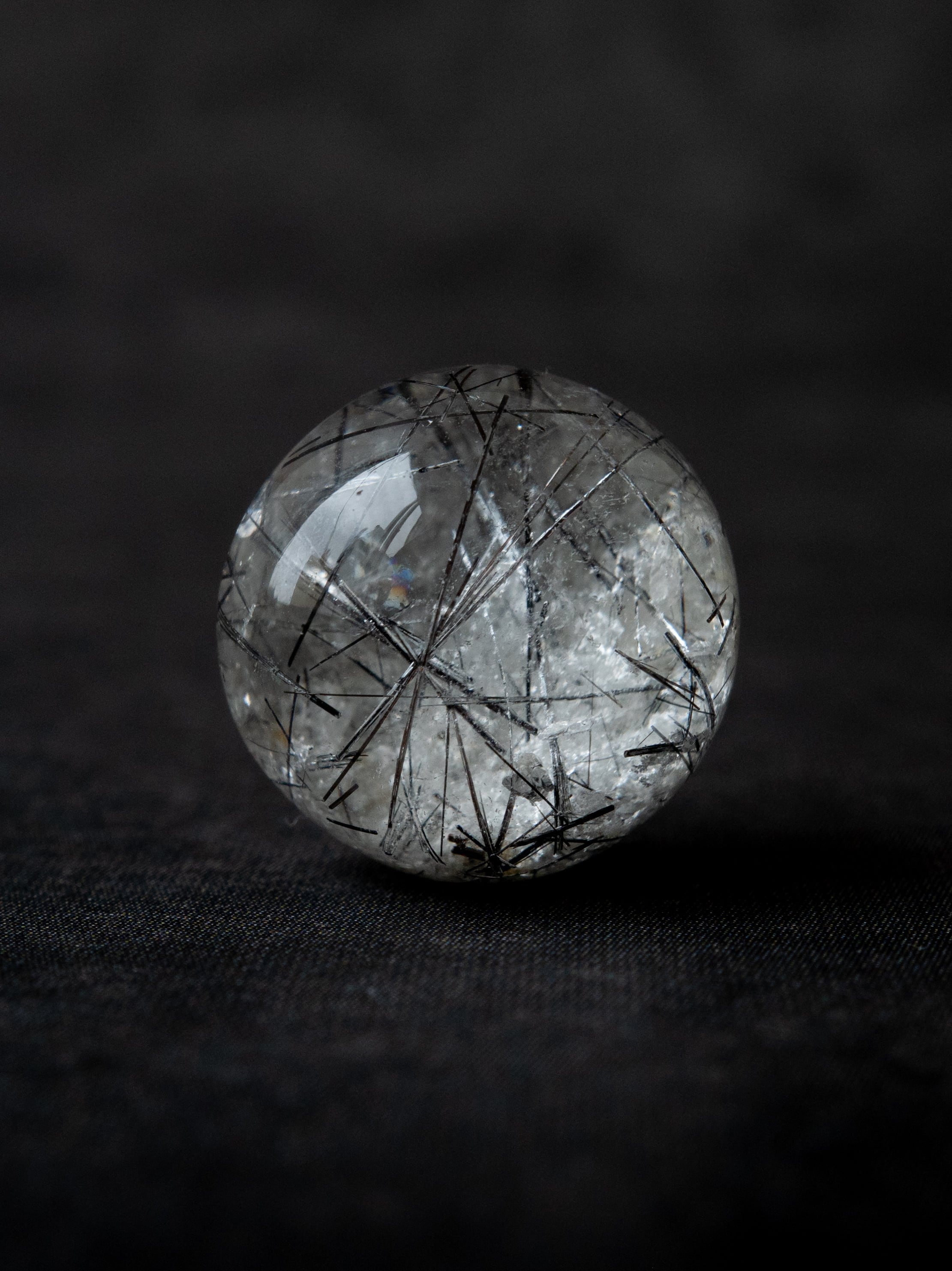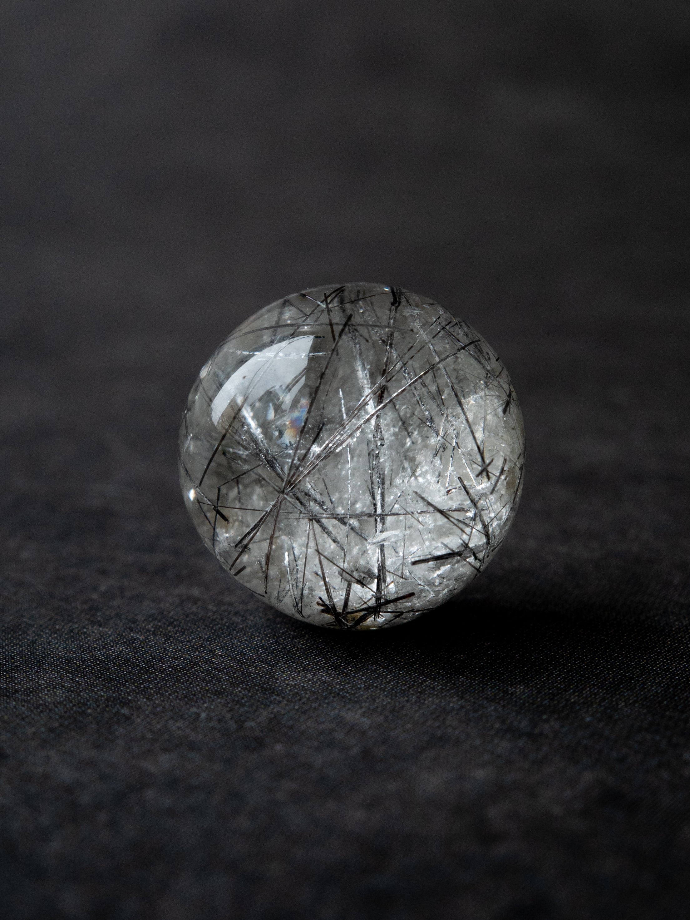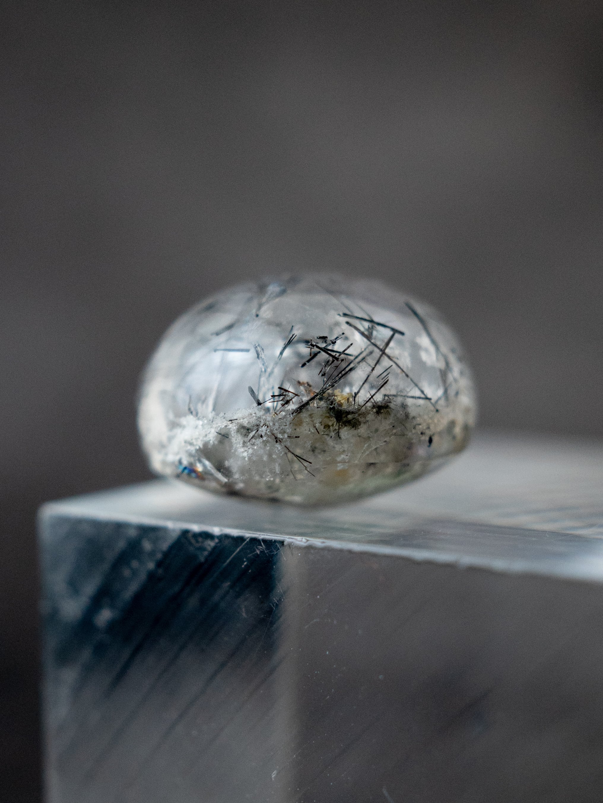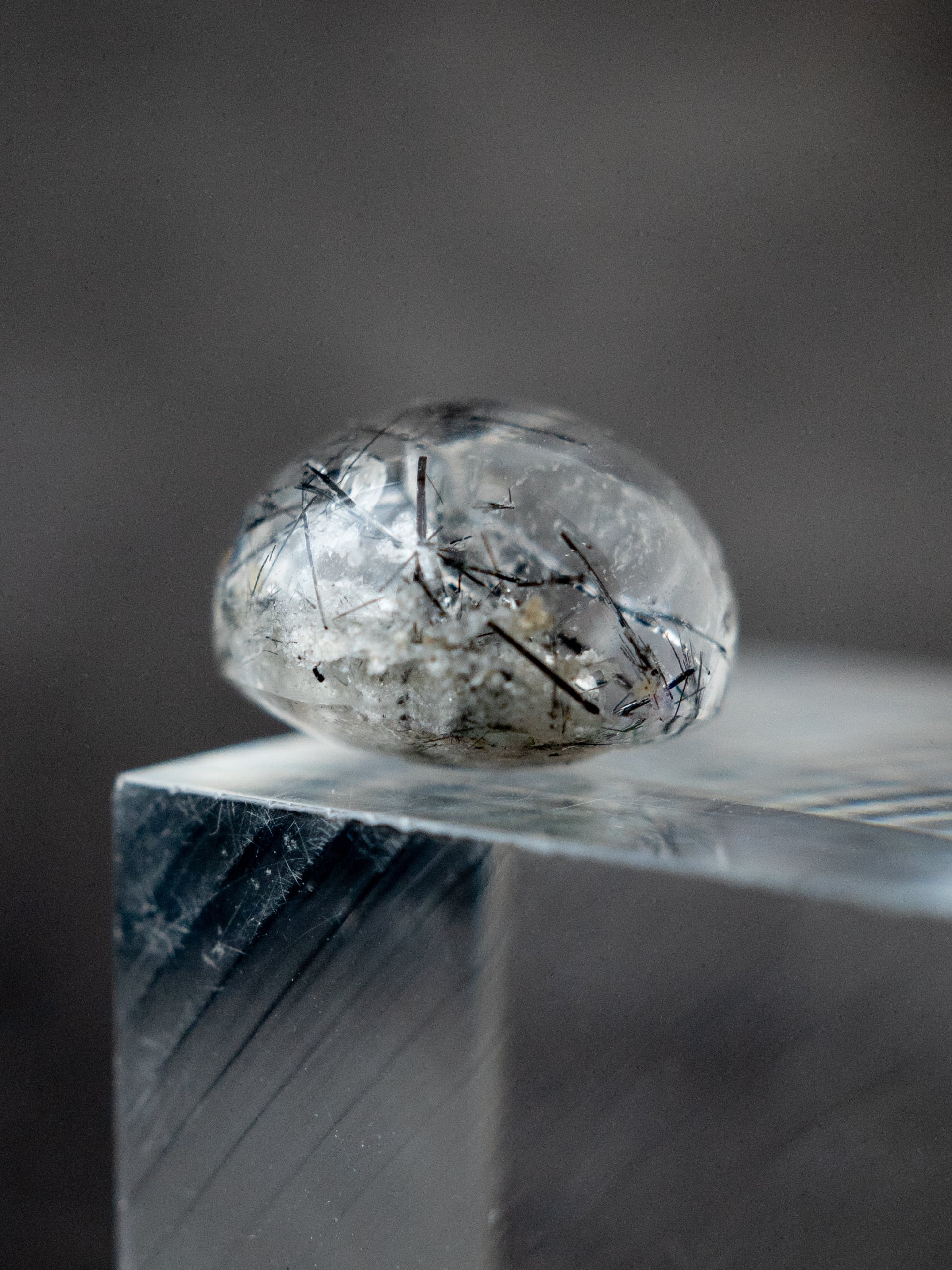 こちらはトルマリンを内包したタイプ。ブラックアンドホワイトのコンタラストがクールな印象のルースです。