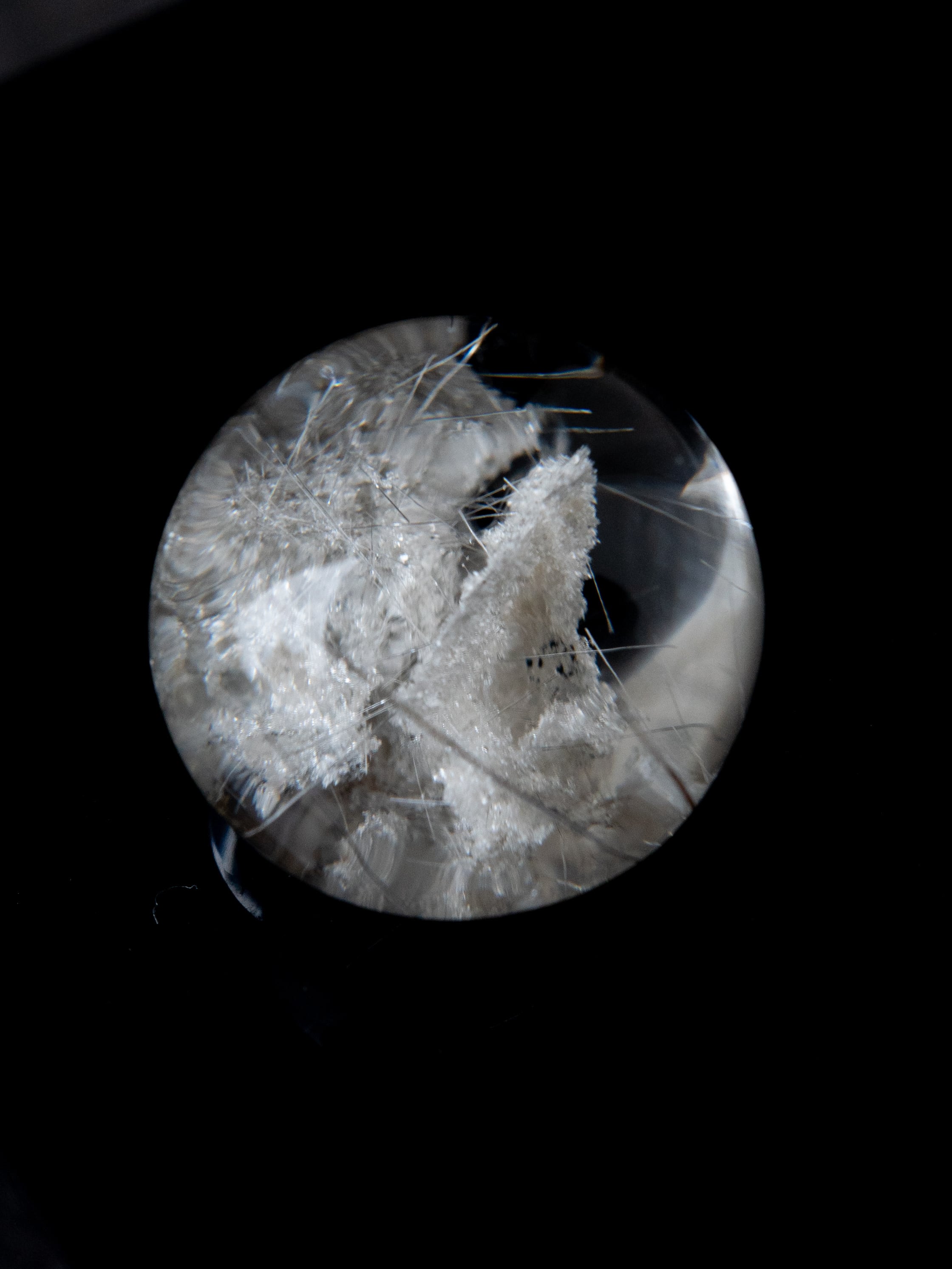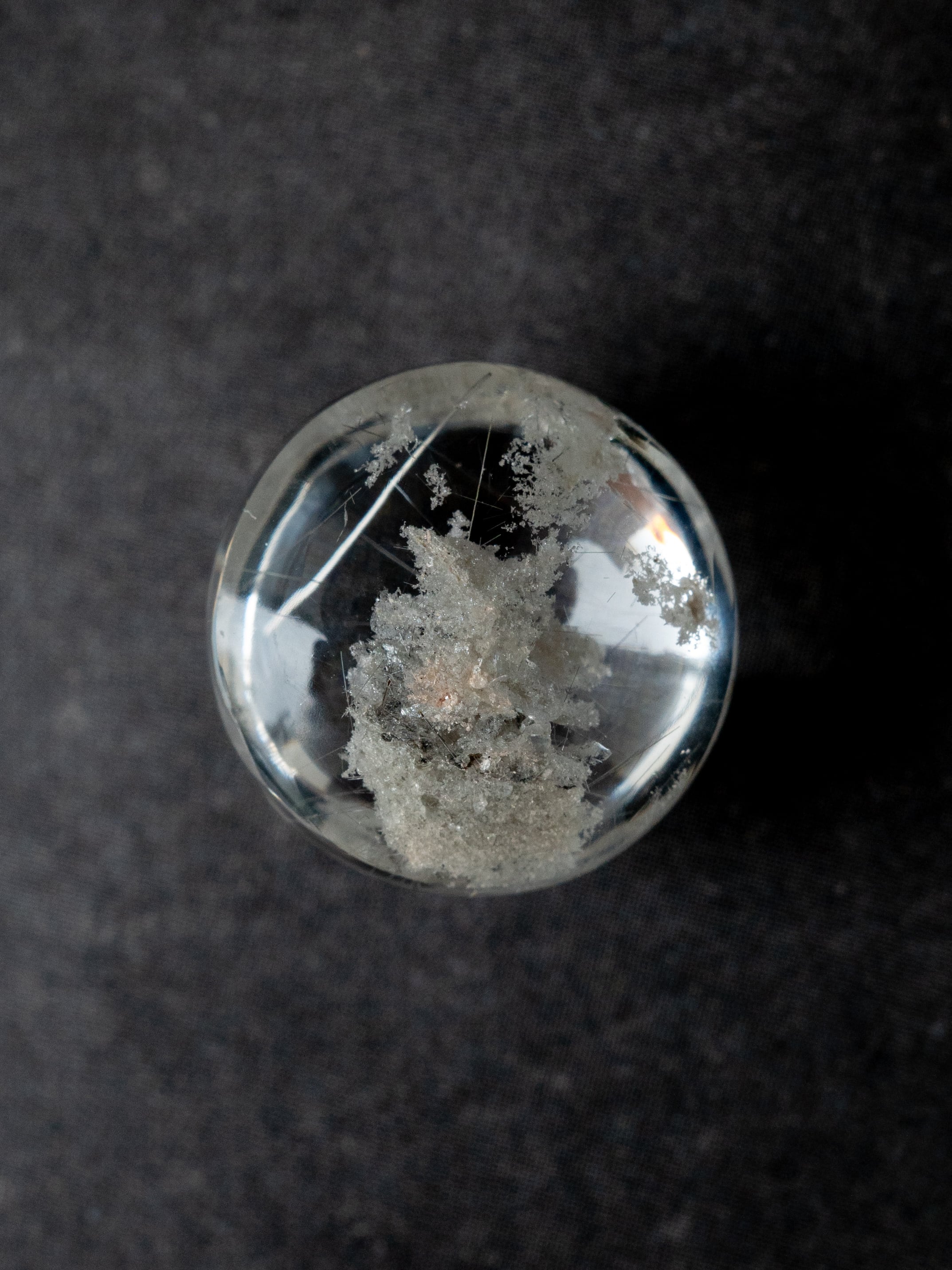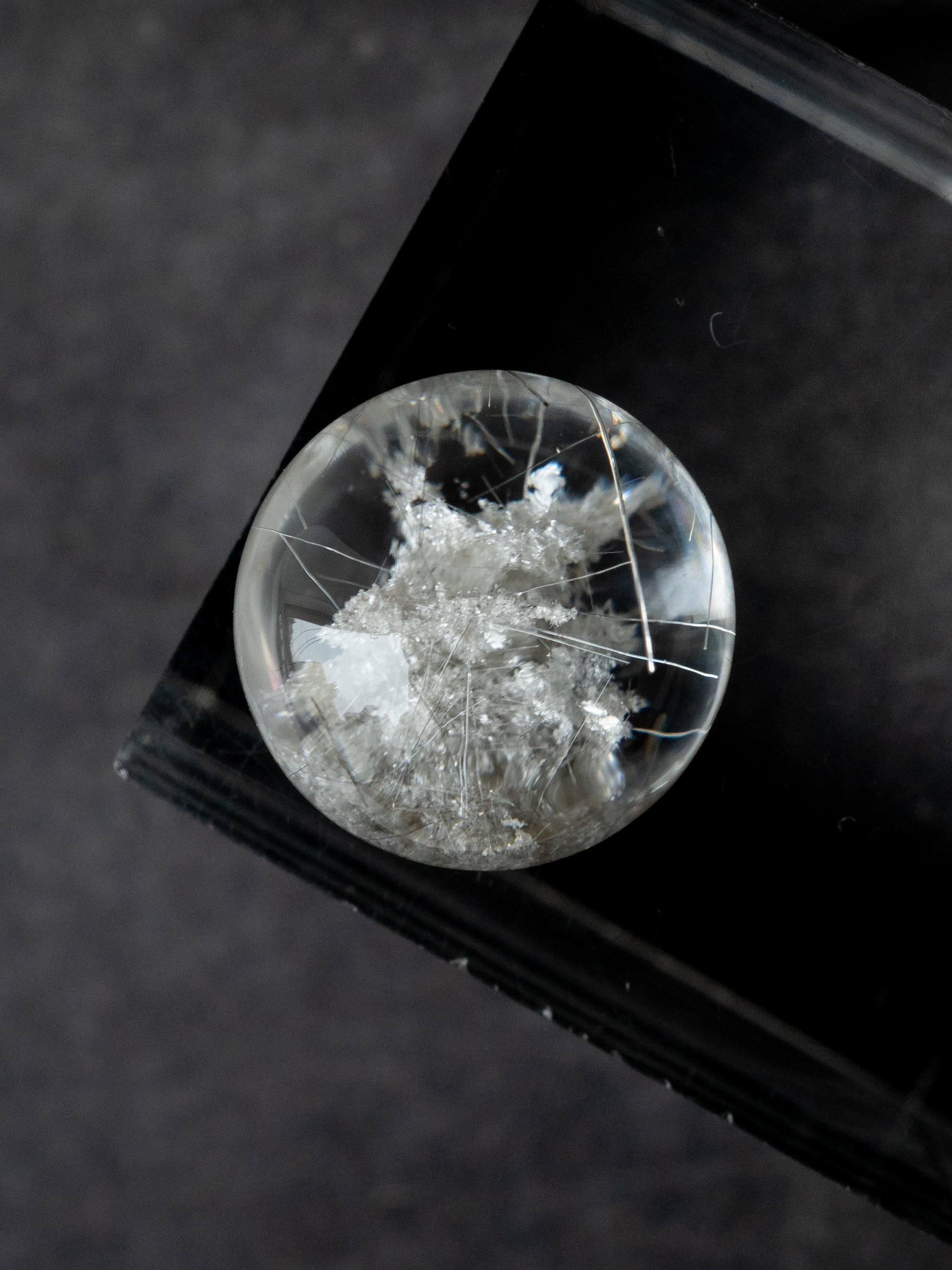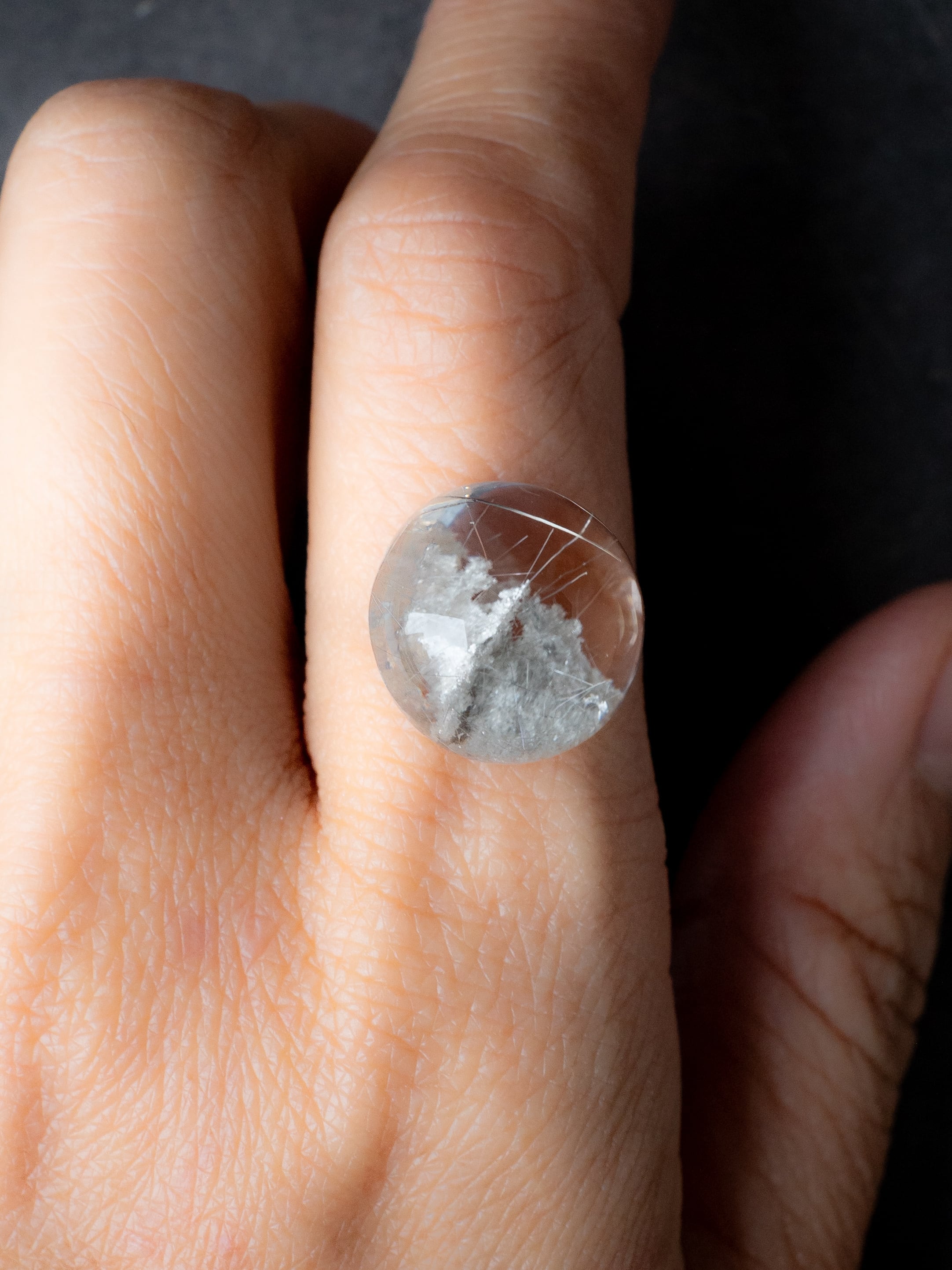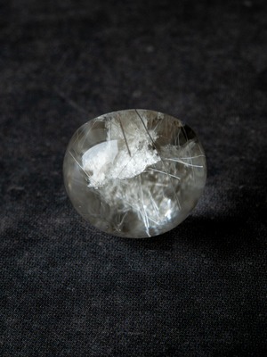 こちらはトルマリンを内包したタイプ。ブラックアンドホワイトのコンタラストがクールな印象のルースです。