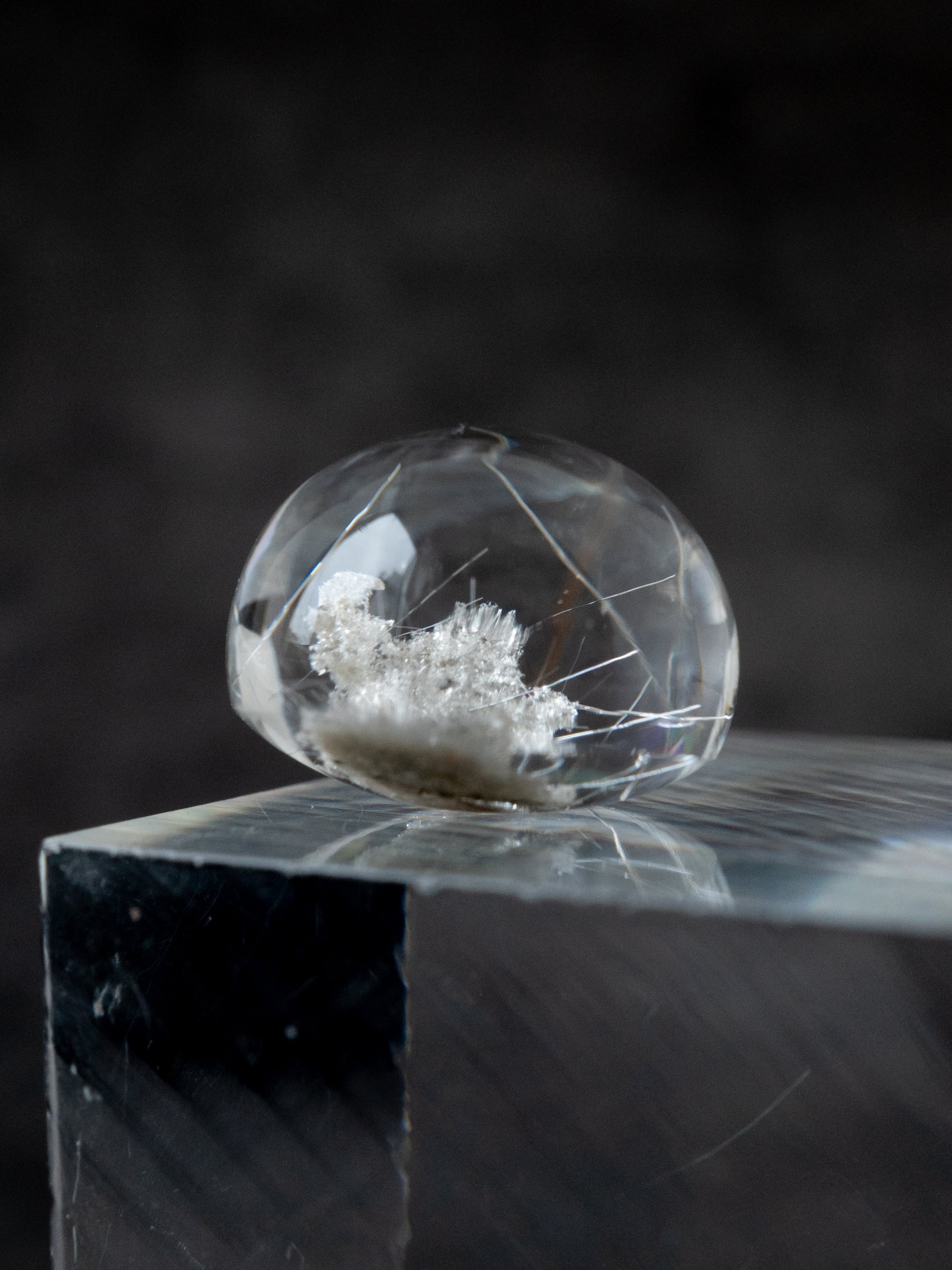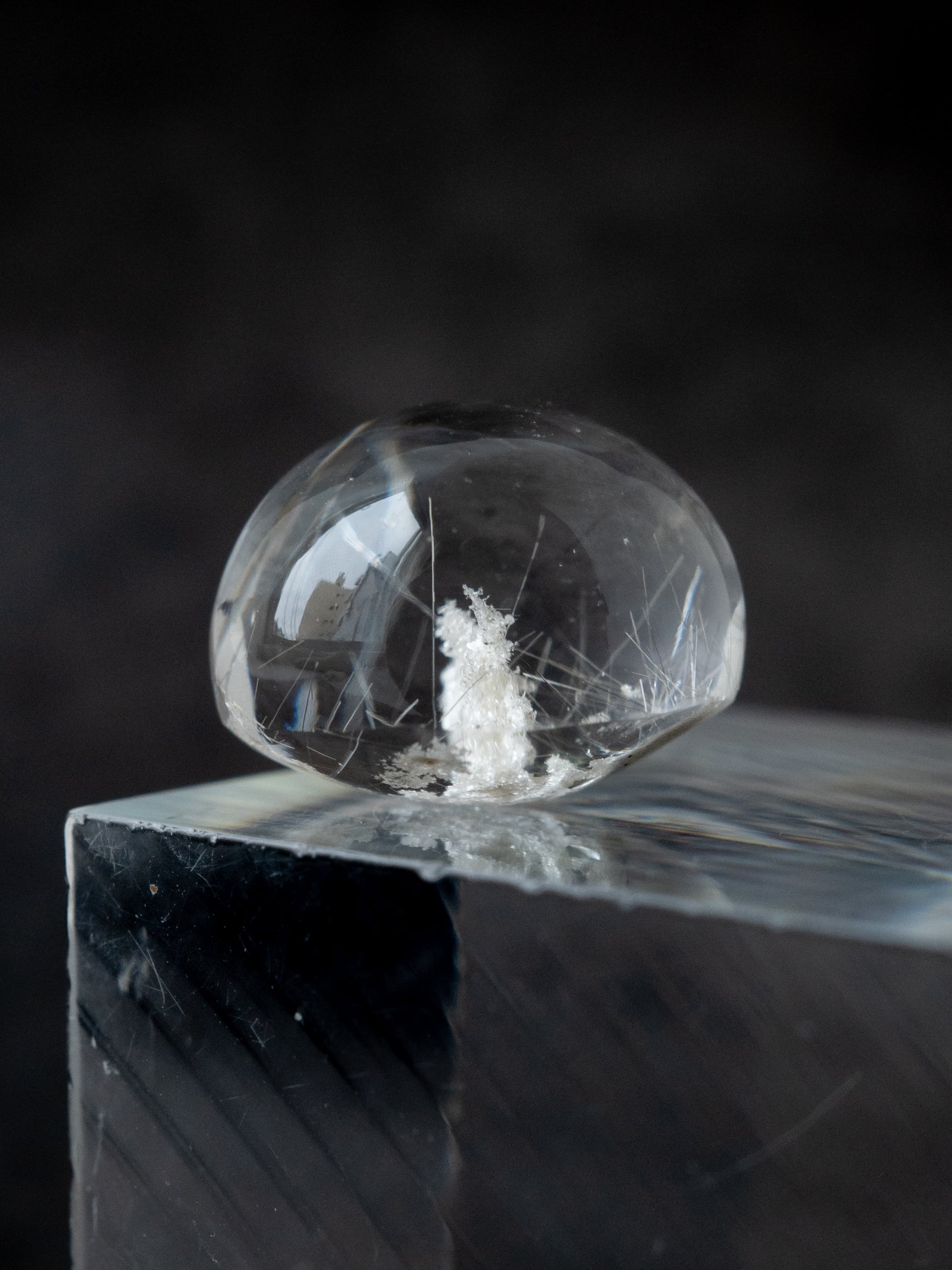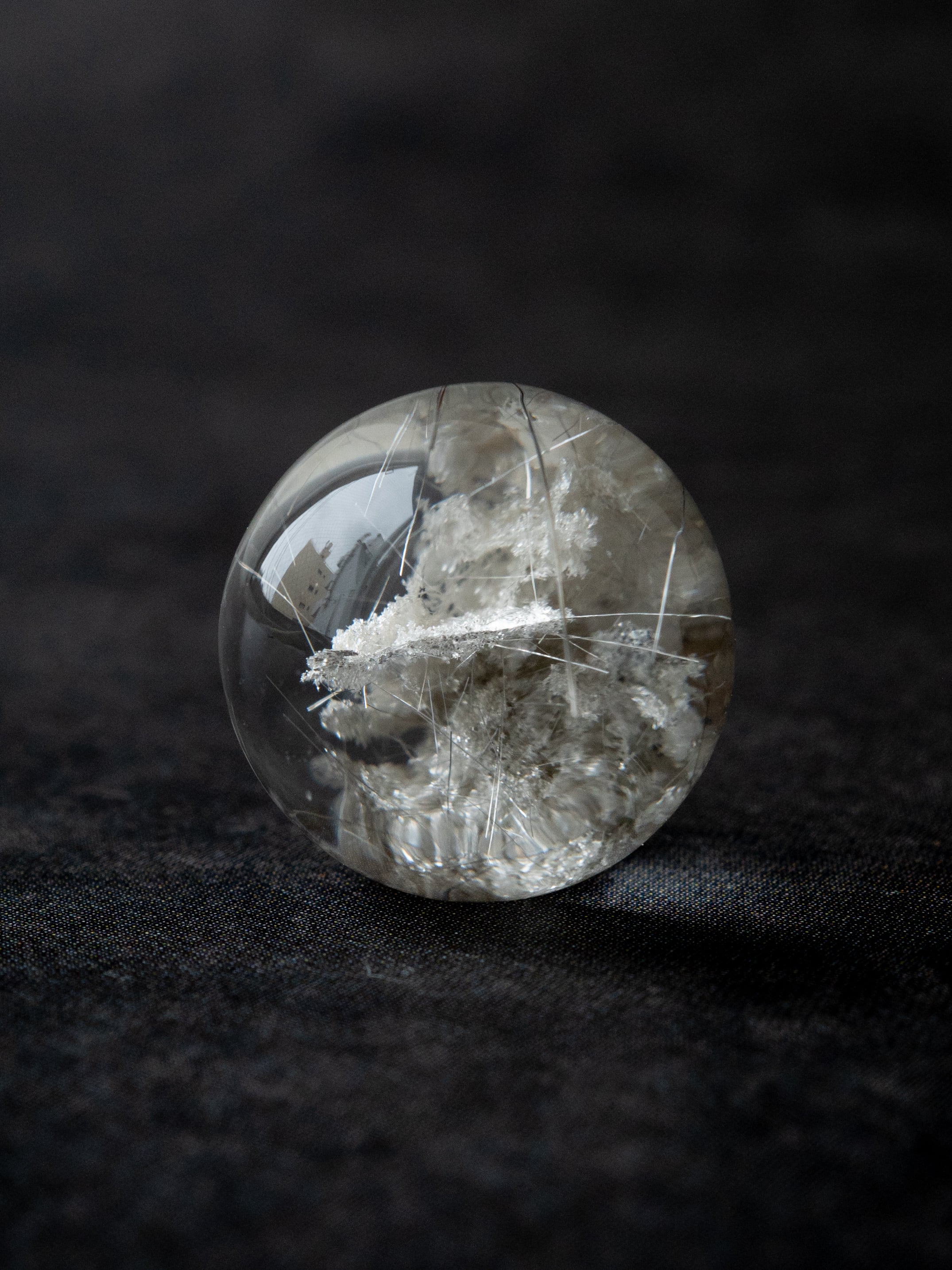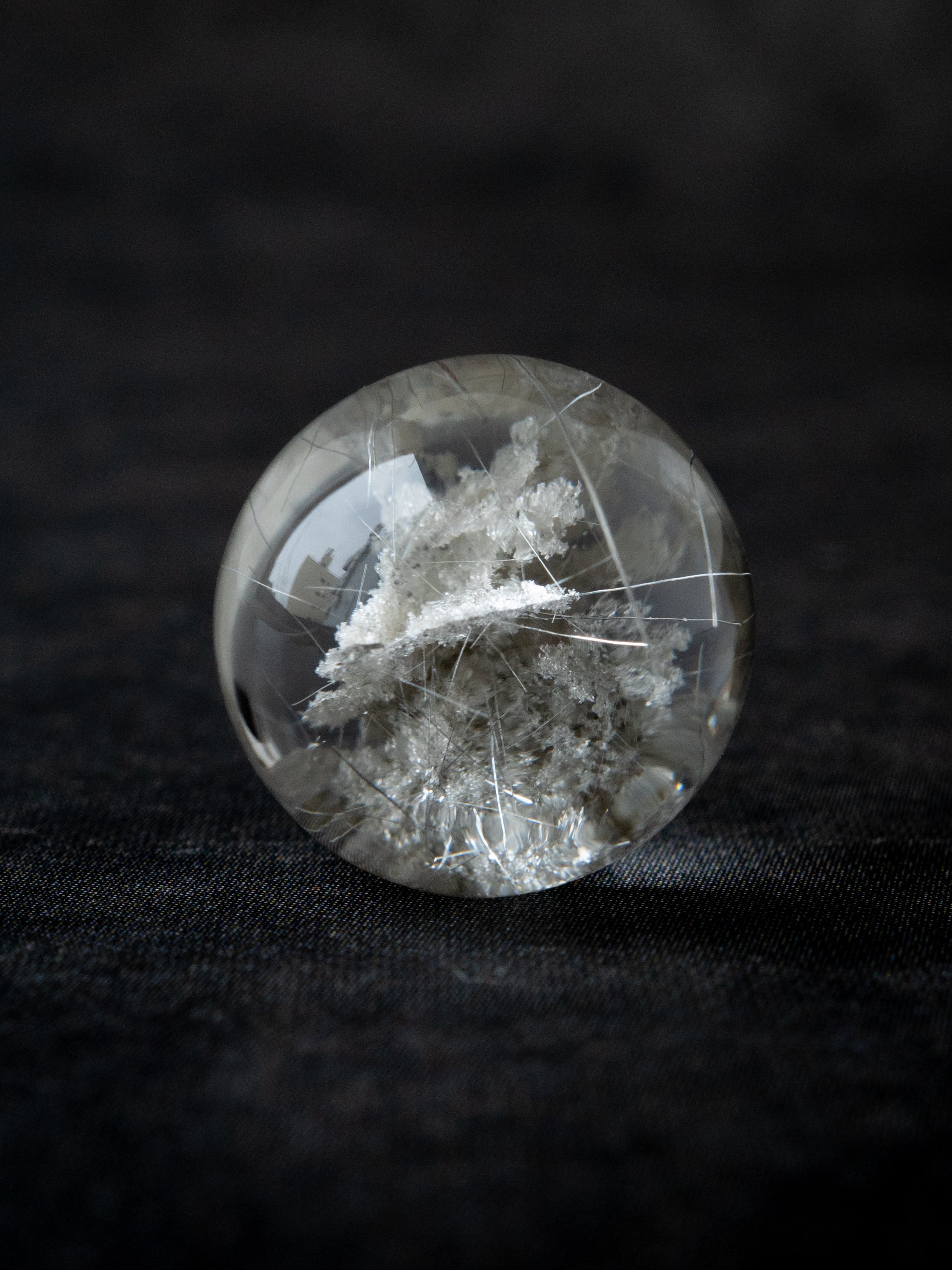 こちらはトルマリンを内包したタイプ。ブラックアンドホワイトのコンタラストがクールな印象のルースです。