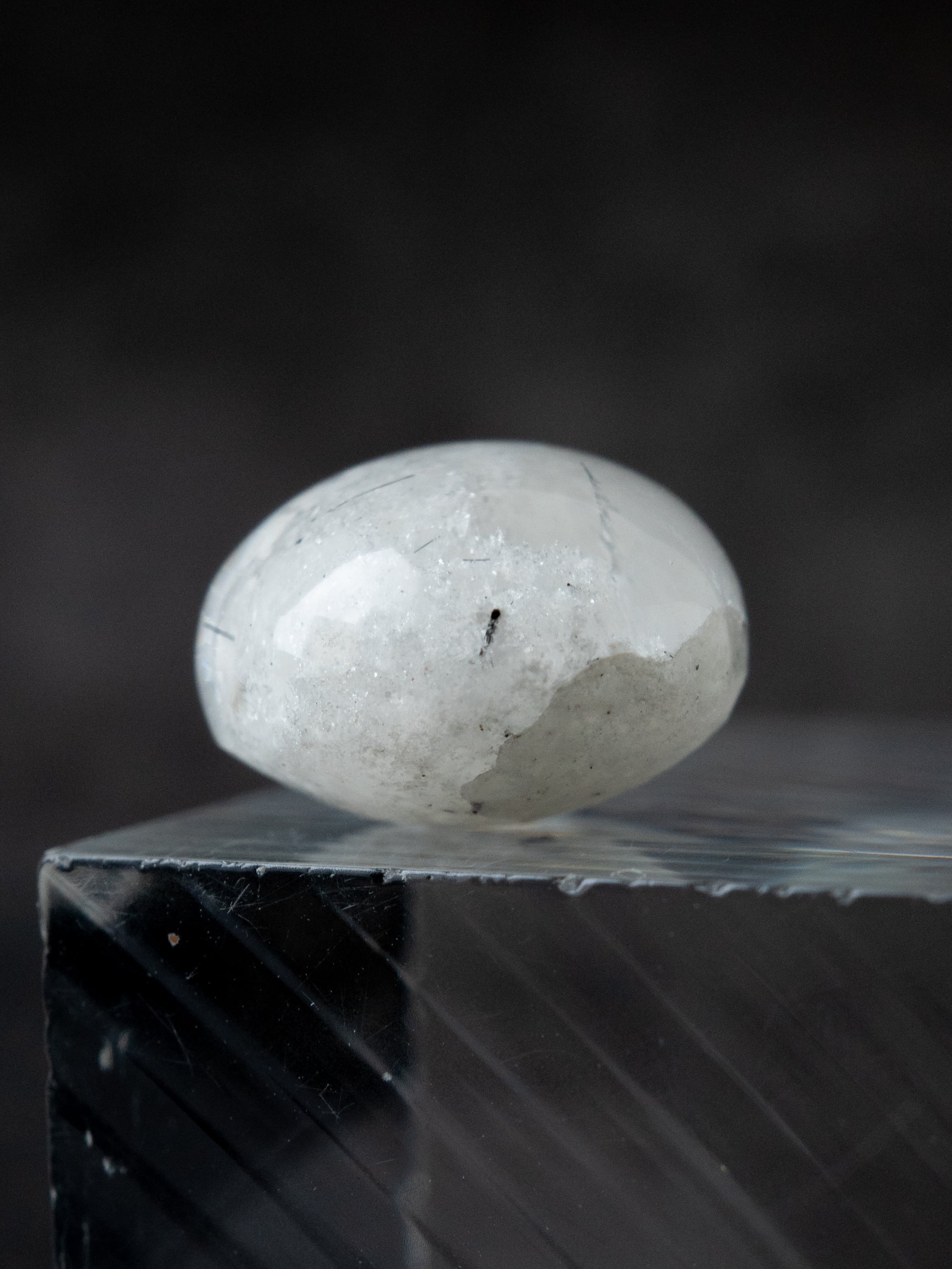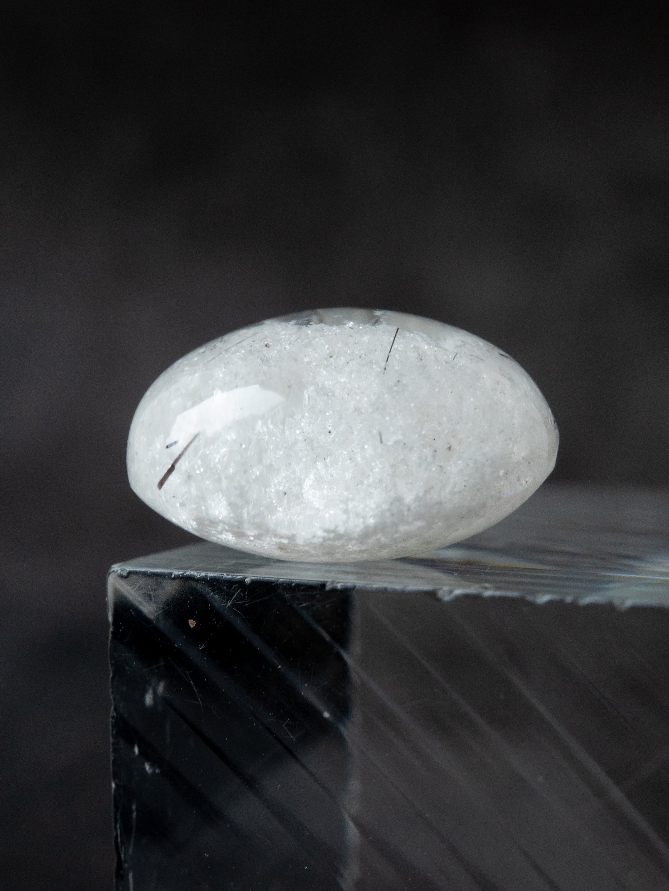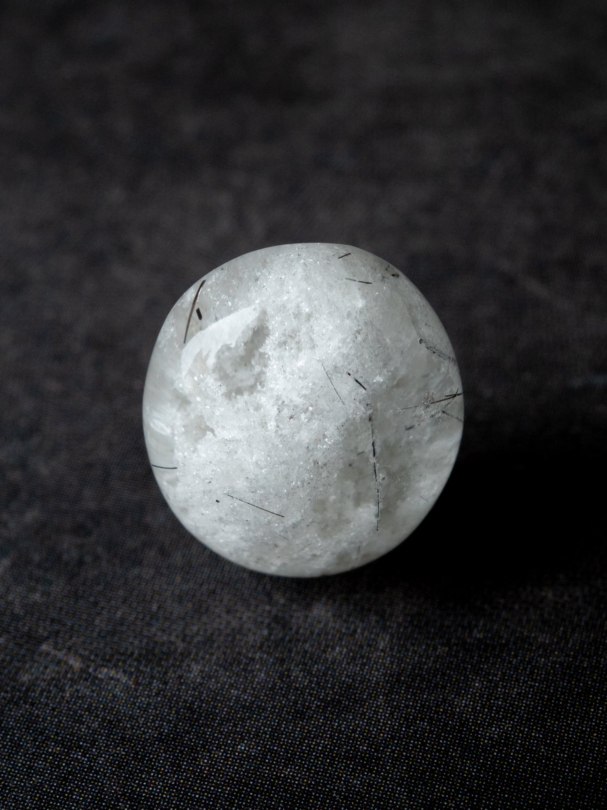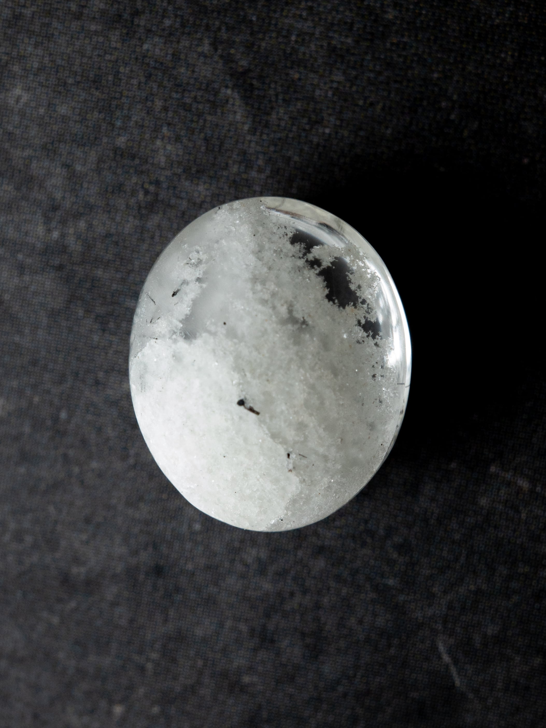 こちらはトルマリンを内包したタイプ。ブラックアンドホワイトのコンタラストがクールな印象のルースです。