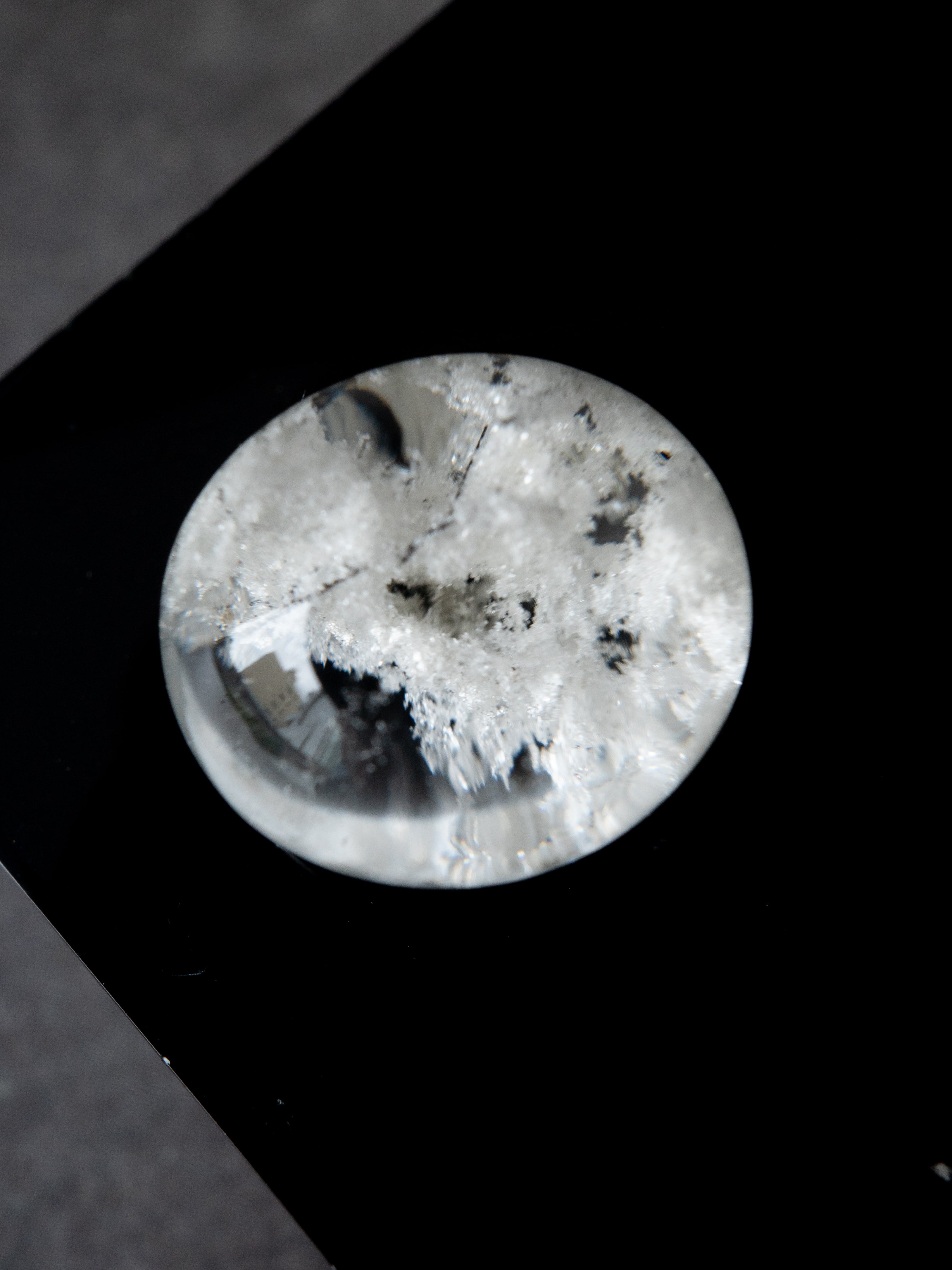 “White Garden Quartz” is a natural gemstone admired for its soft, dreamlike scenery—resembling snow or clouds floating in the sky. Its pure white inclusions are formed by minerals such as muscovite and kaolinite within the quartz, creating these beautiful internal landscapes.