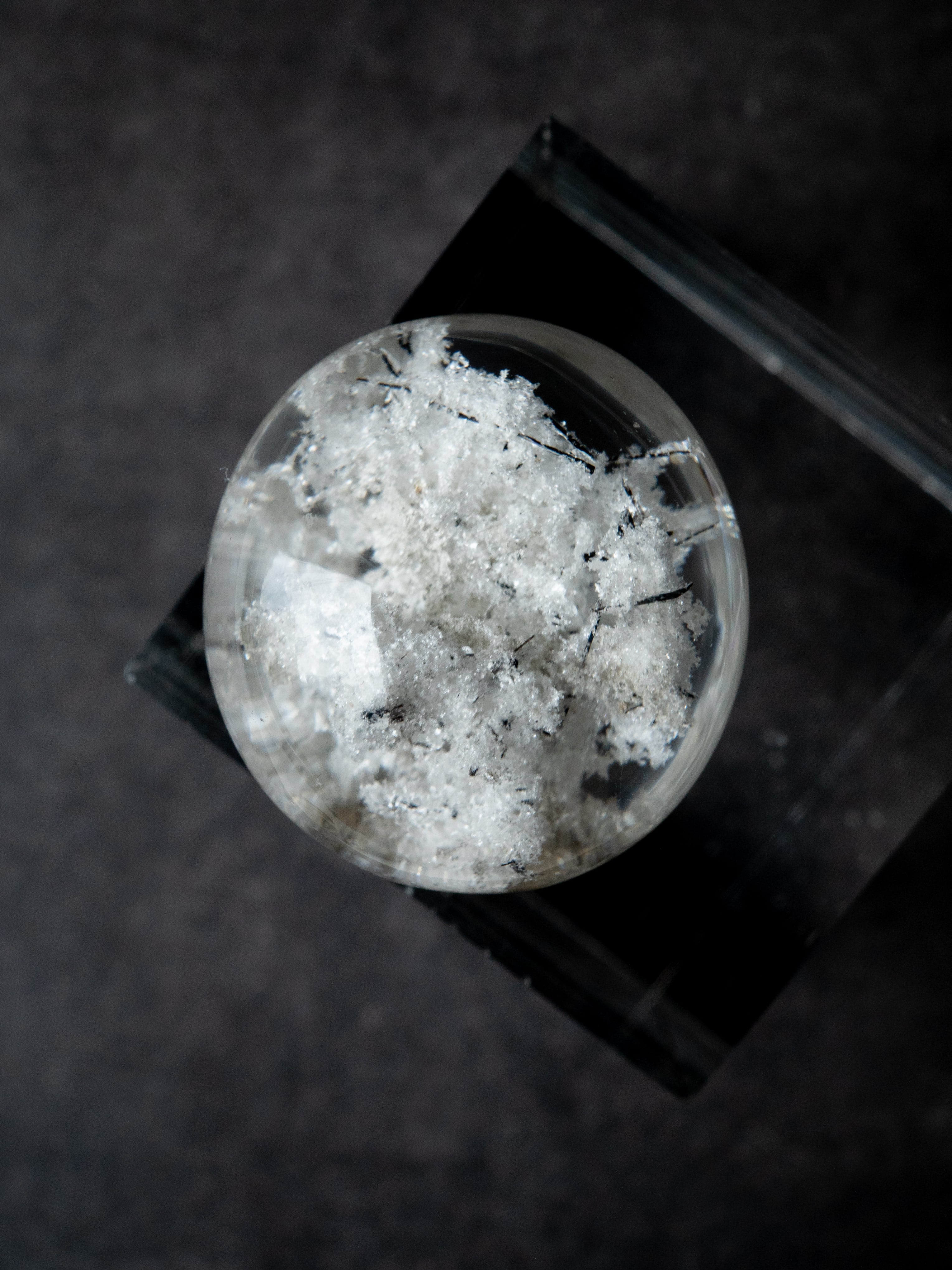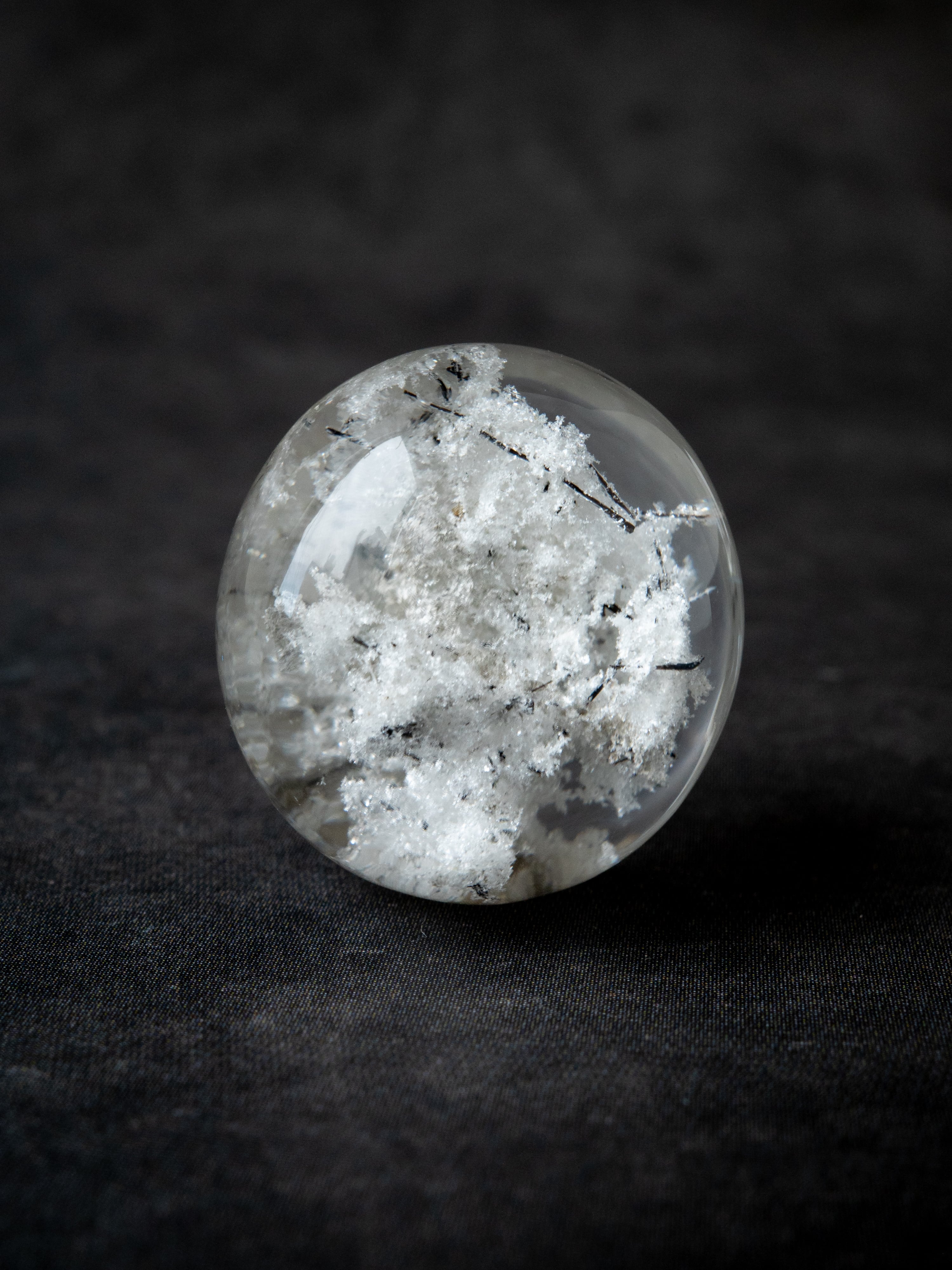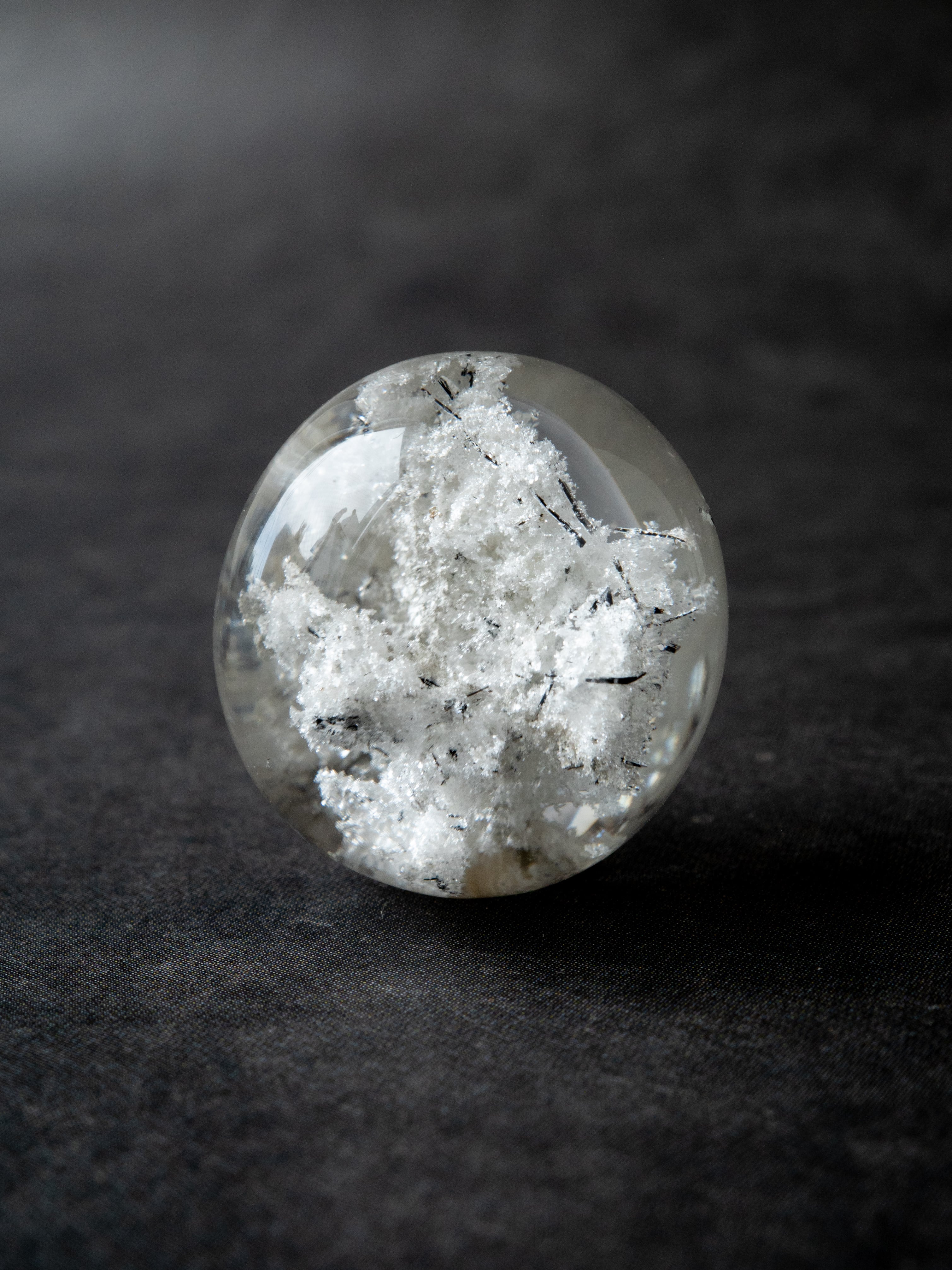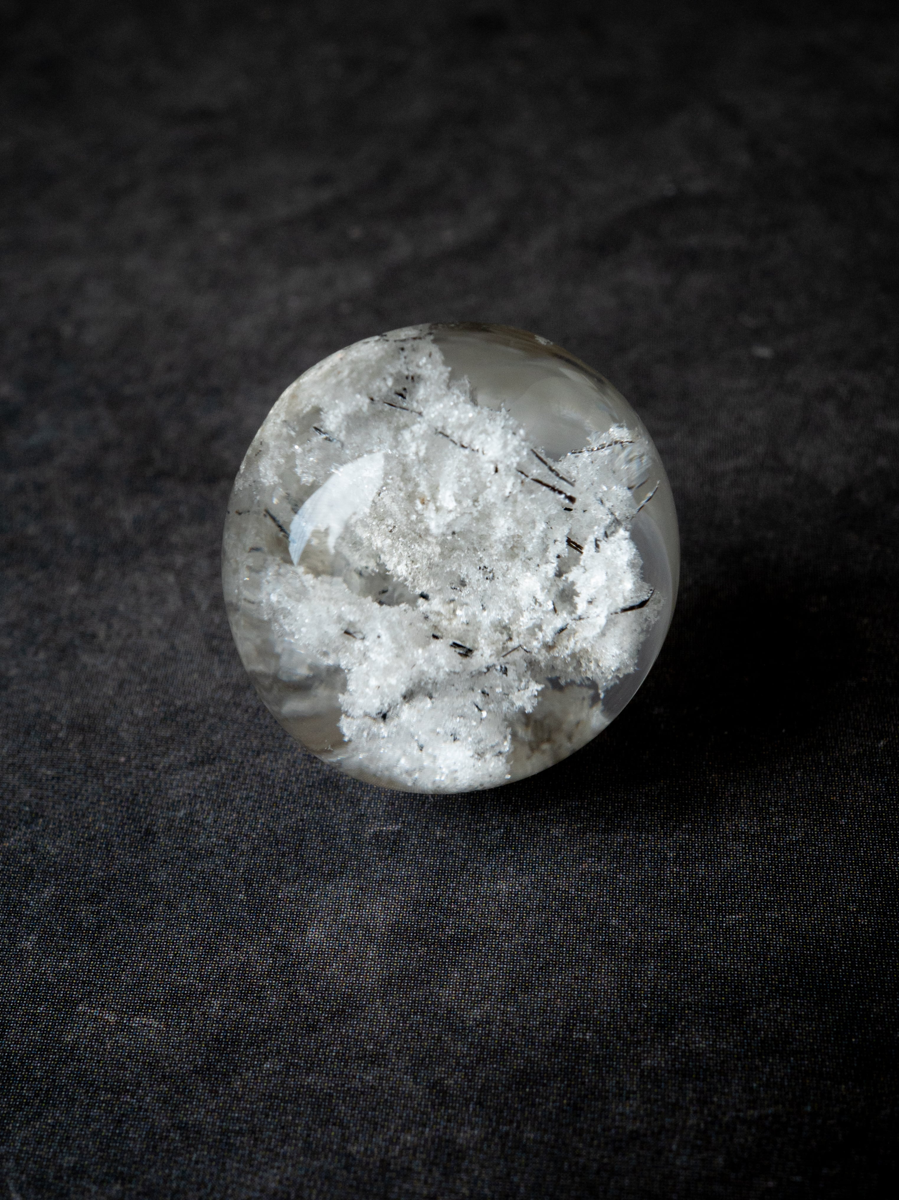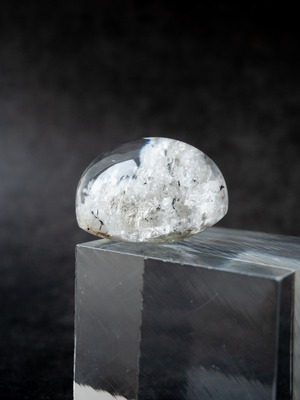こちらはトルマリンを内包したタイプ。ブラックアンドホワイトのコンタラストがクールな印象のルースです。